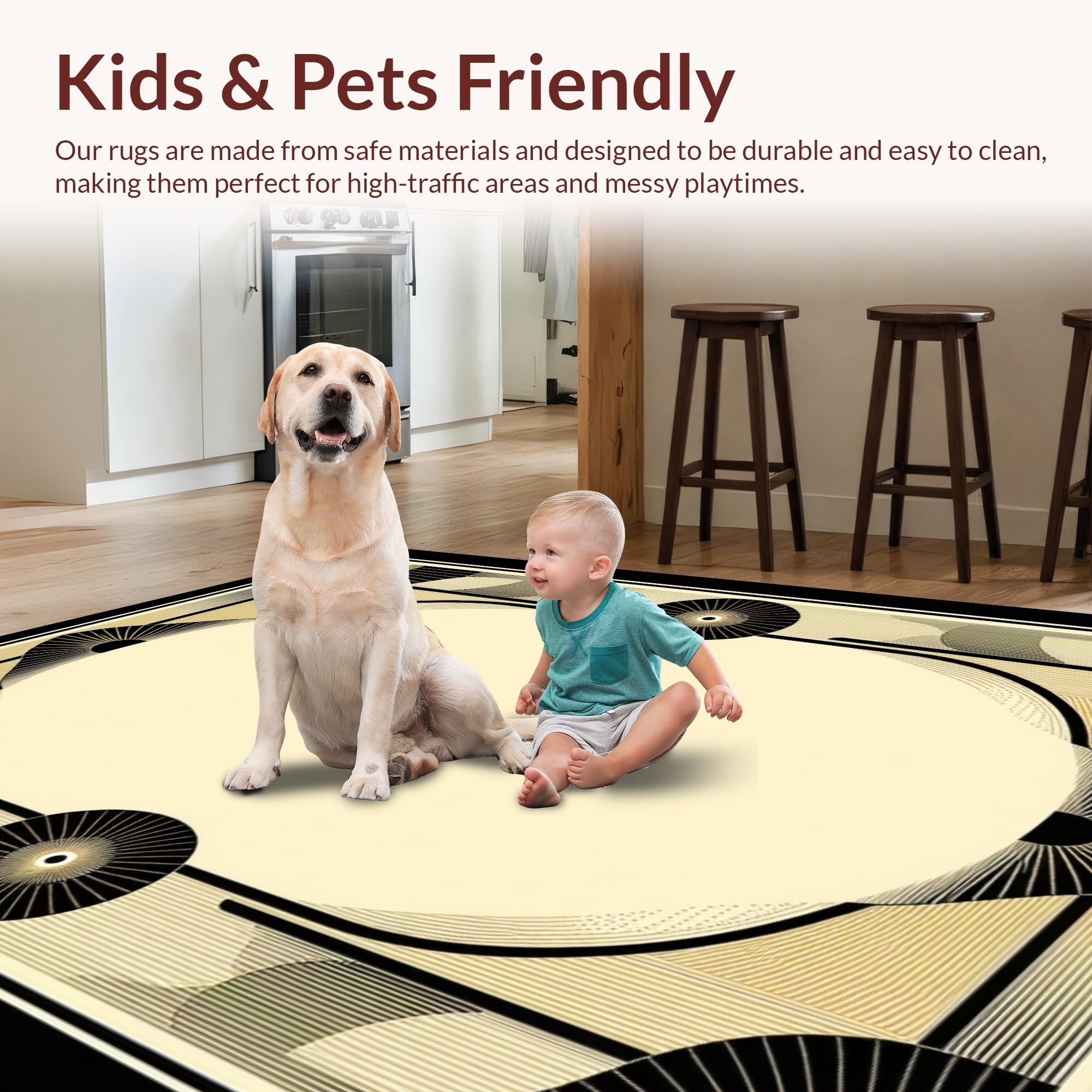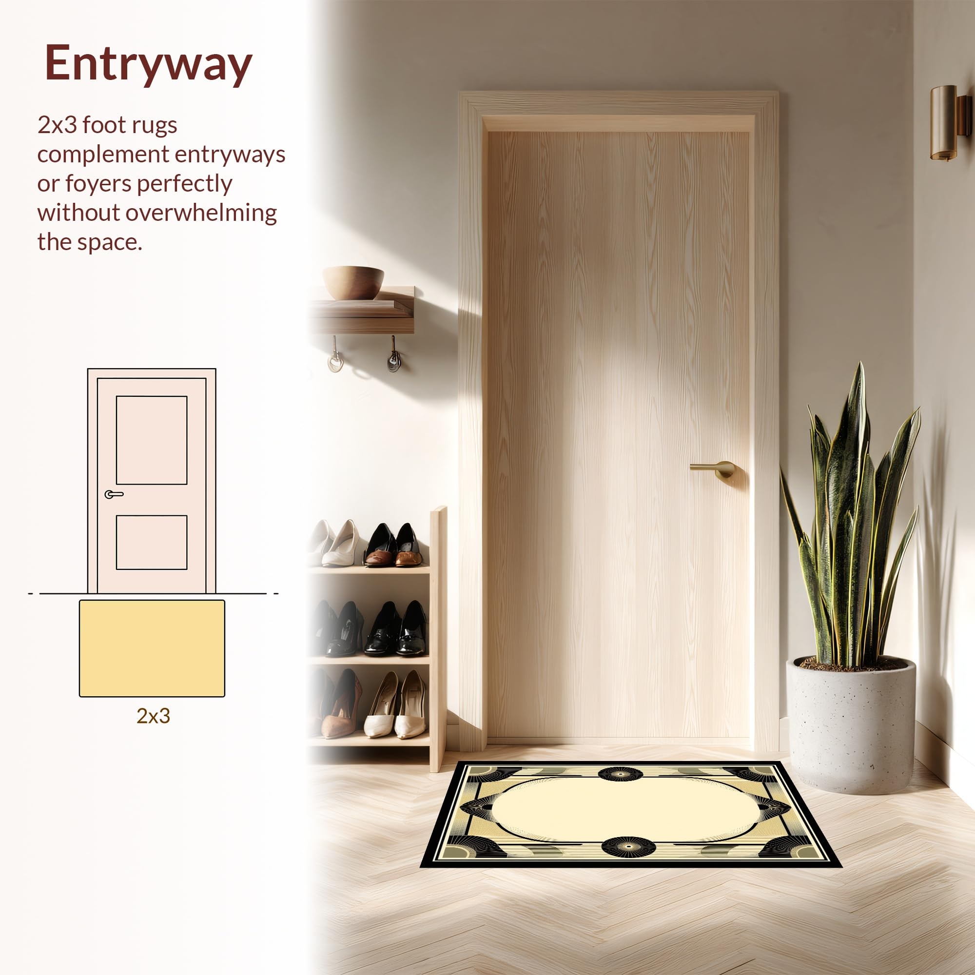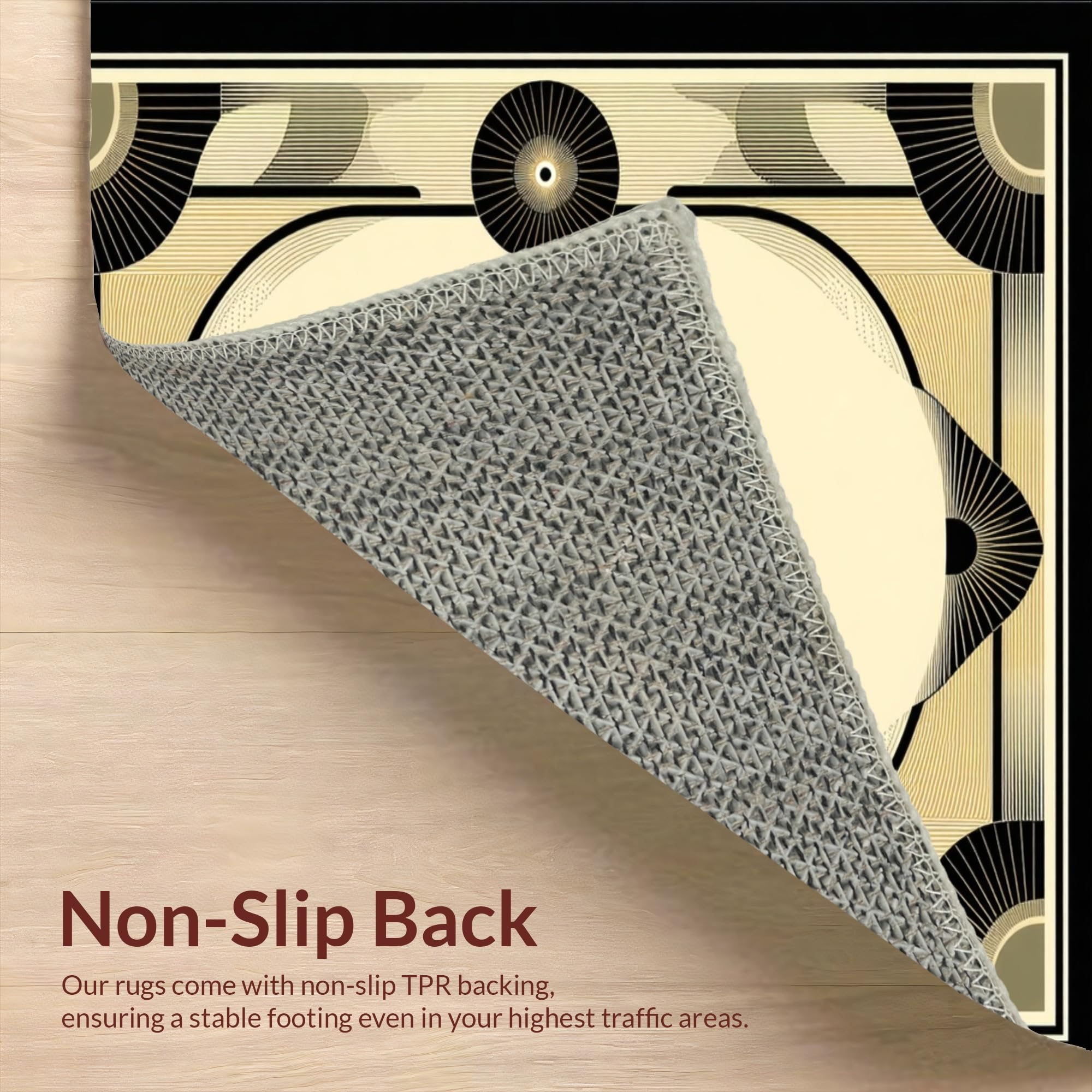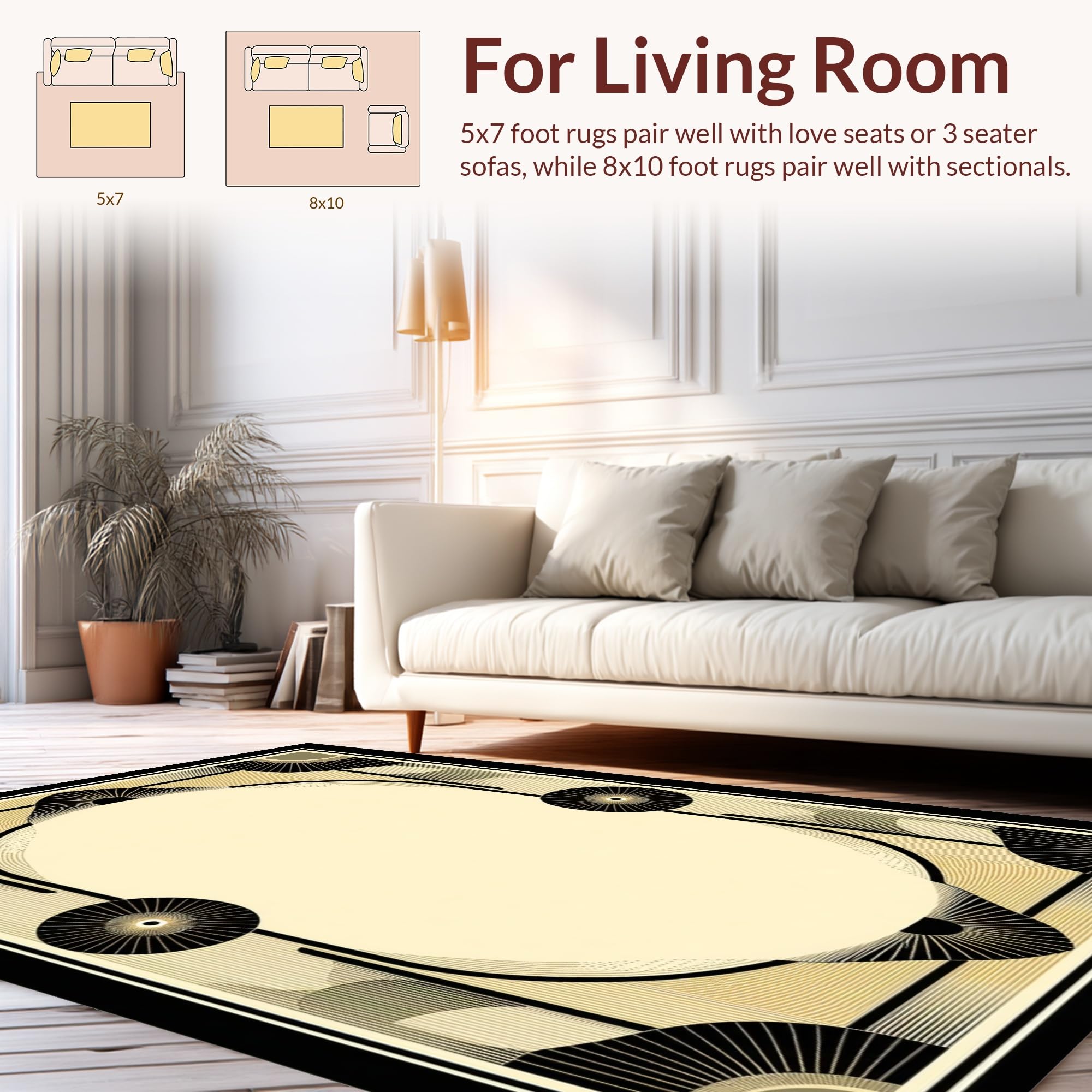 Ultra Soft Area Rug, Non Slip, Stain Resistant, Washable Area Rugs for Living Room, Bedroom, Athens Art Deco Area Geometric Border Black And Beige Tone(Beige) Overview: