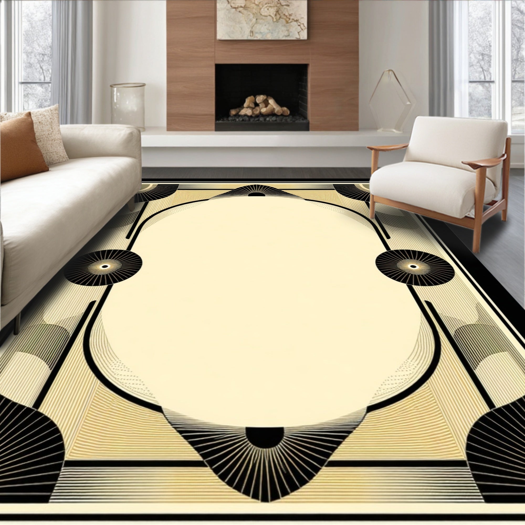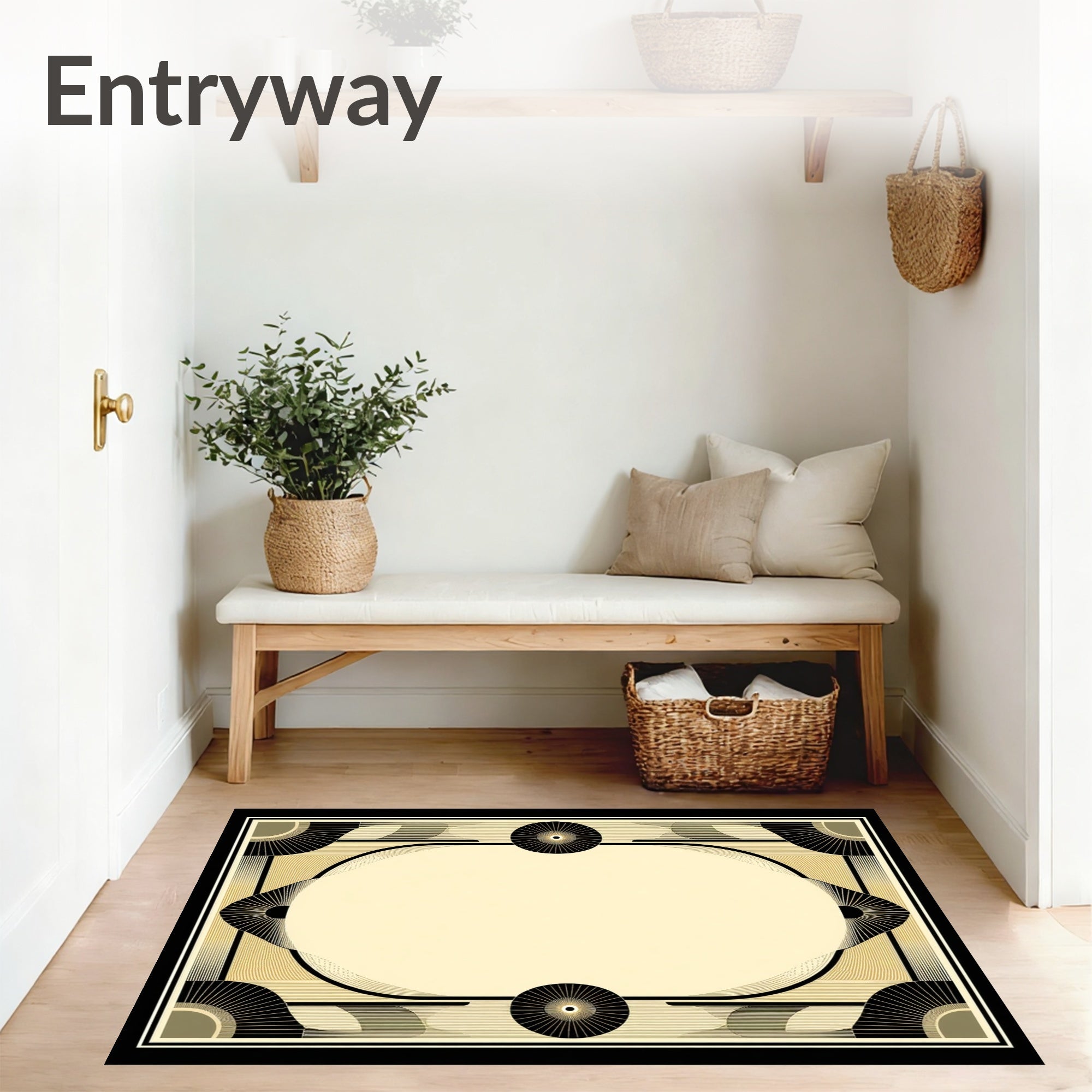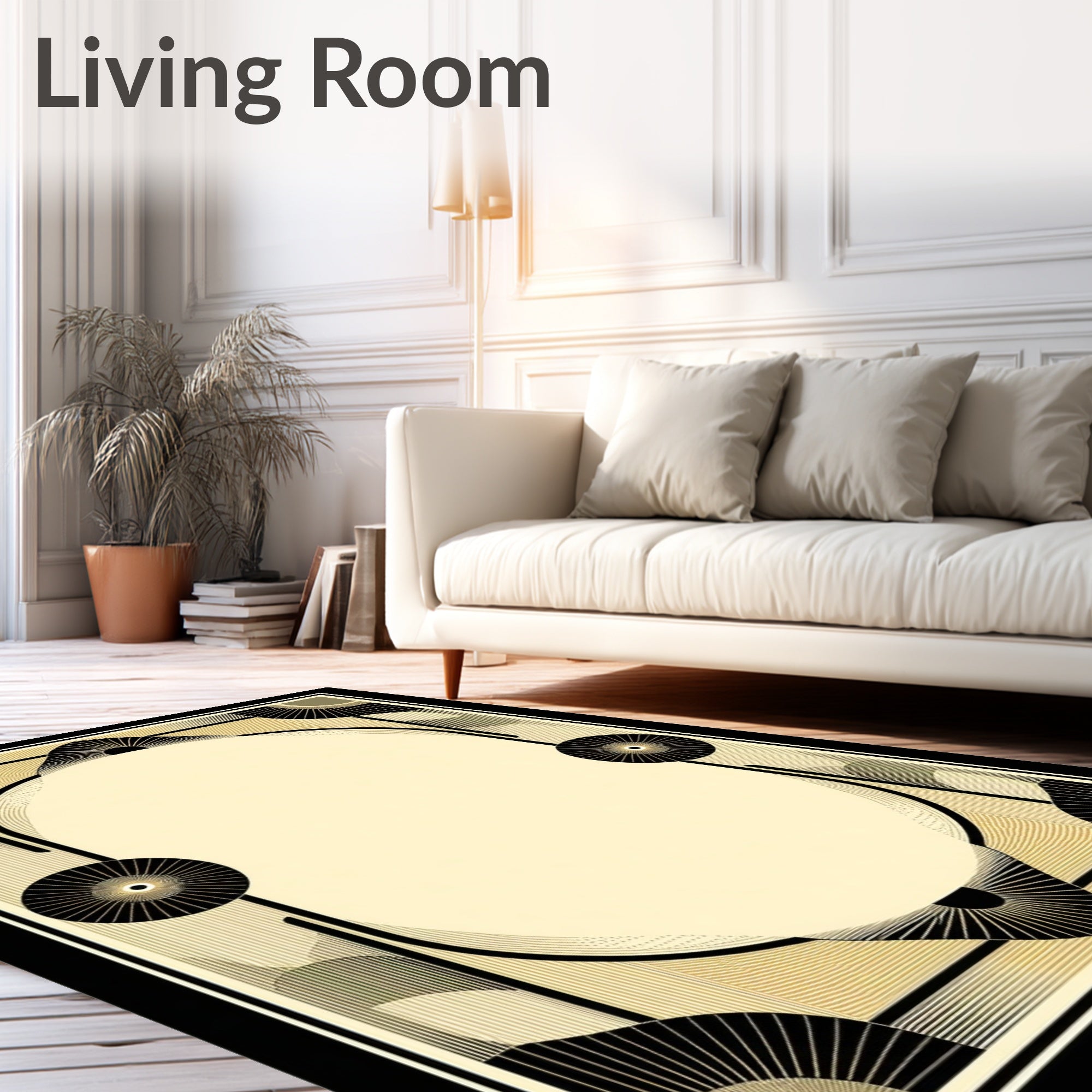 Athens Art Geometric Border Black And Beige Tone(Beige)