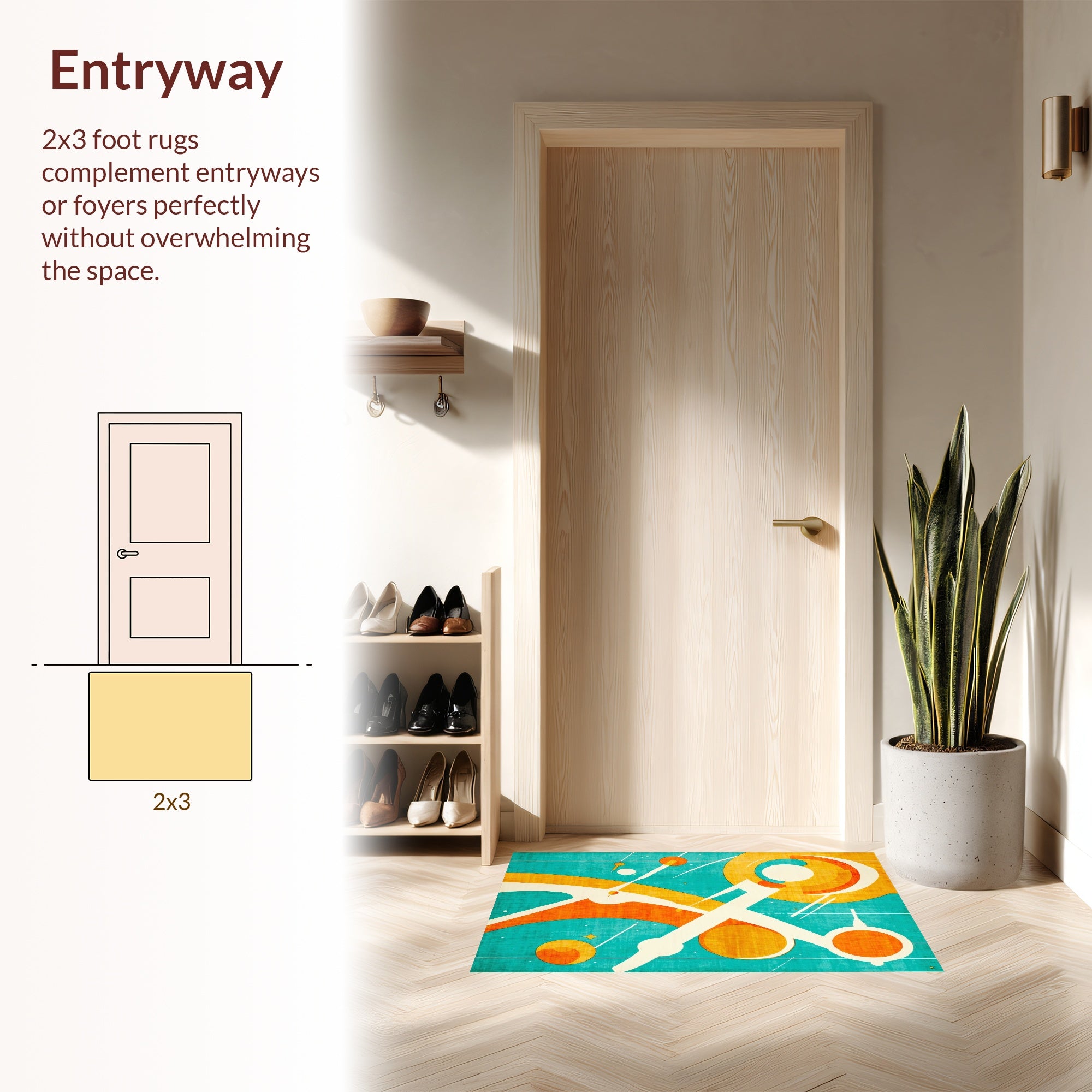 Ultra Soft Area Rug, Non Slip, Stain Resistant, Washable Area Rugs for Living Room, Bedroom, Atomic Starburst Midcentury Space Age Geometric(Turquoise) Overview: