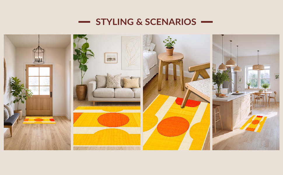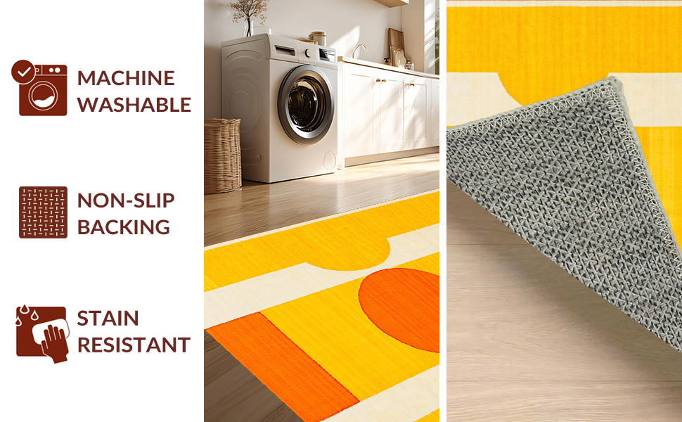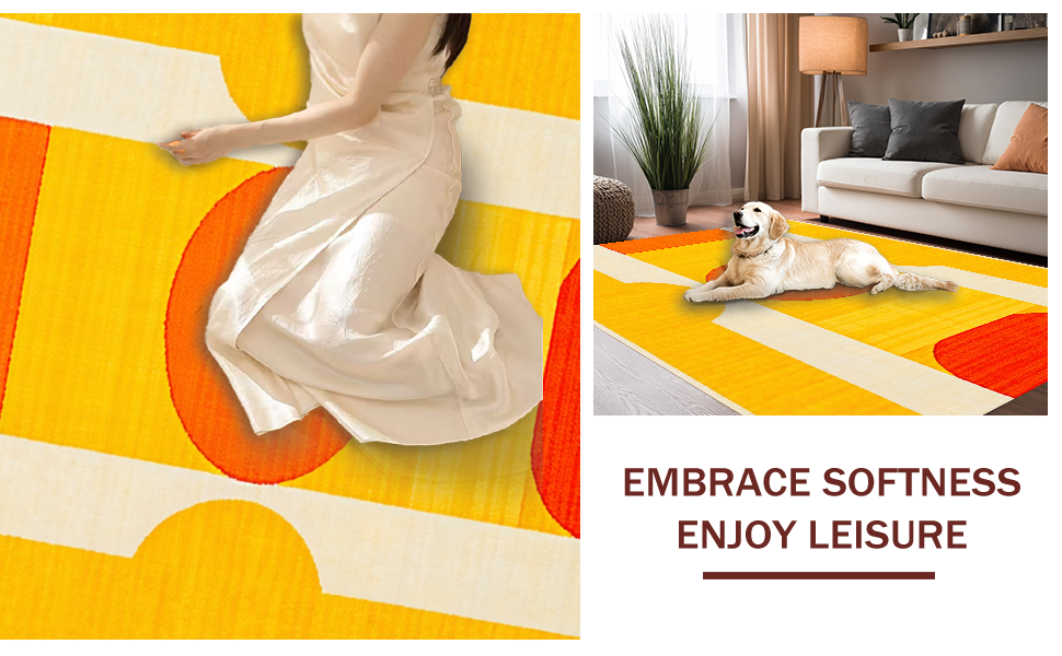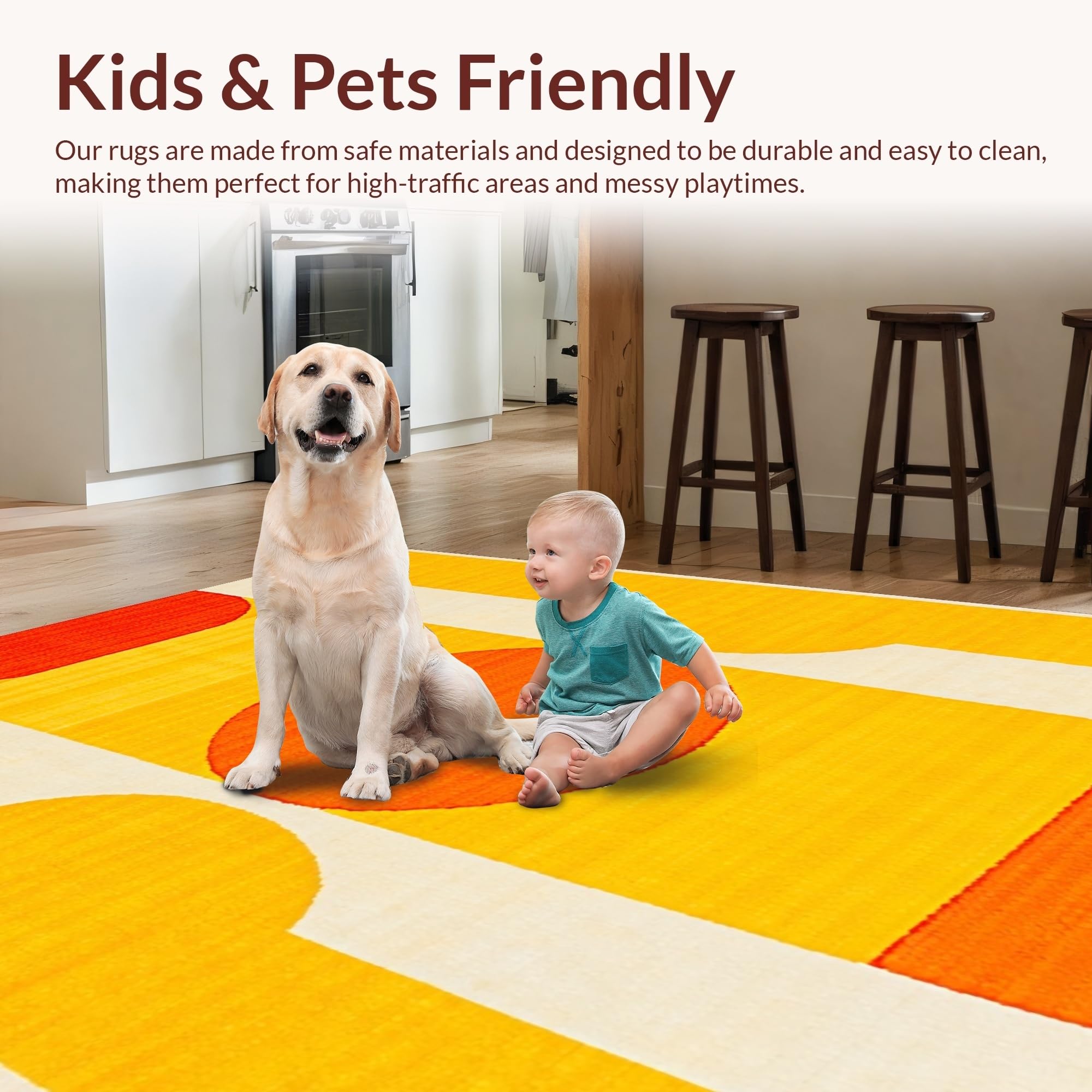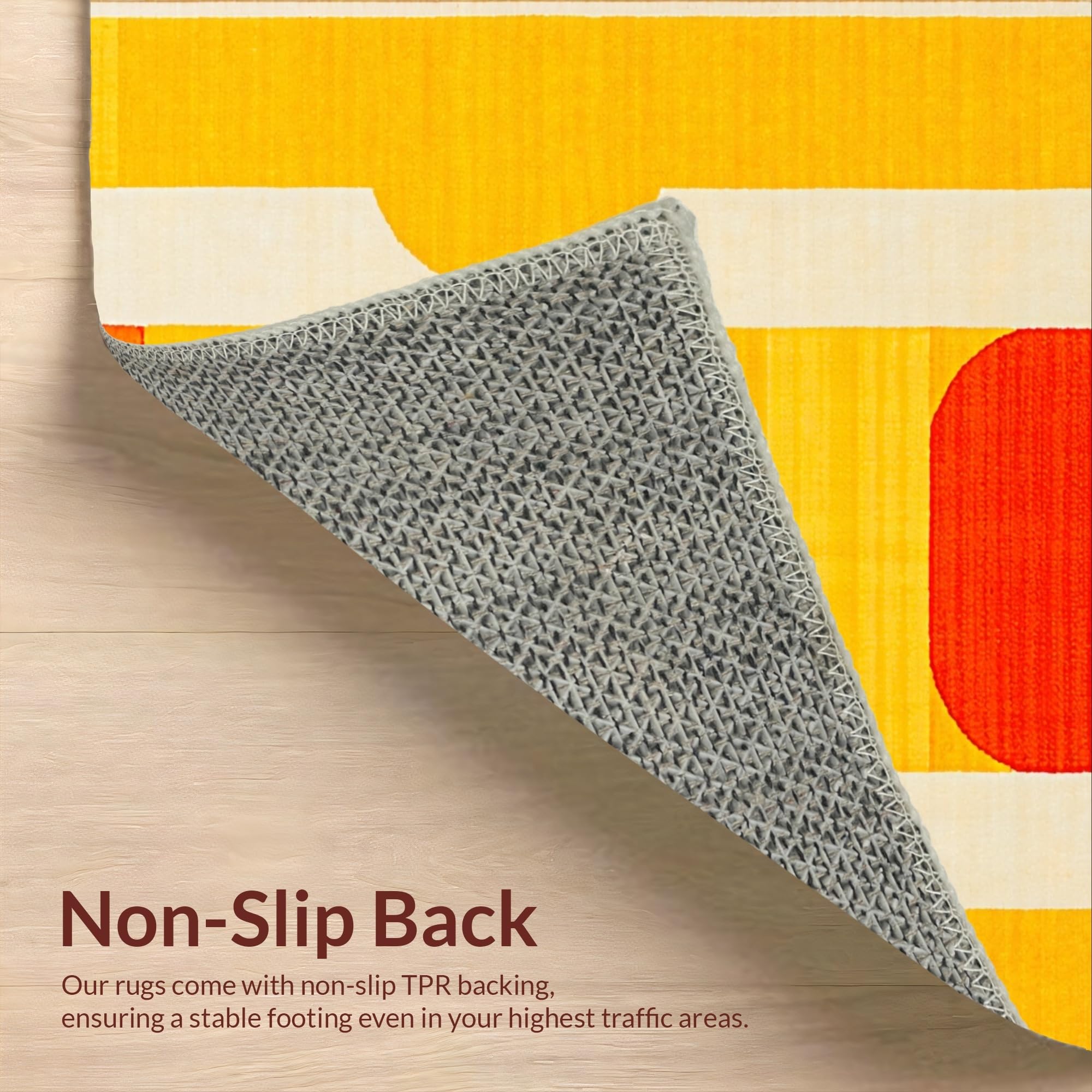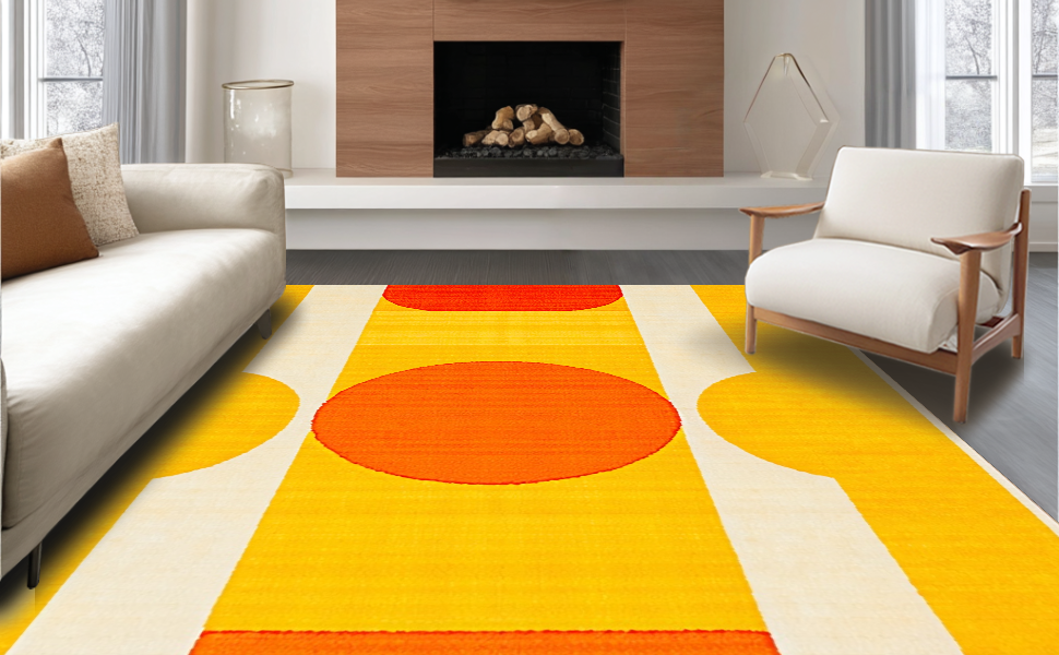 Ultra Soft Area Rug, Non Slip, Stain Resistant, Washable Area Rugs for Living Room, Bedroom, Atomic Yellow Starburst Pattern(Orange) Overview:
