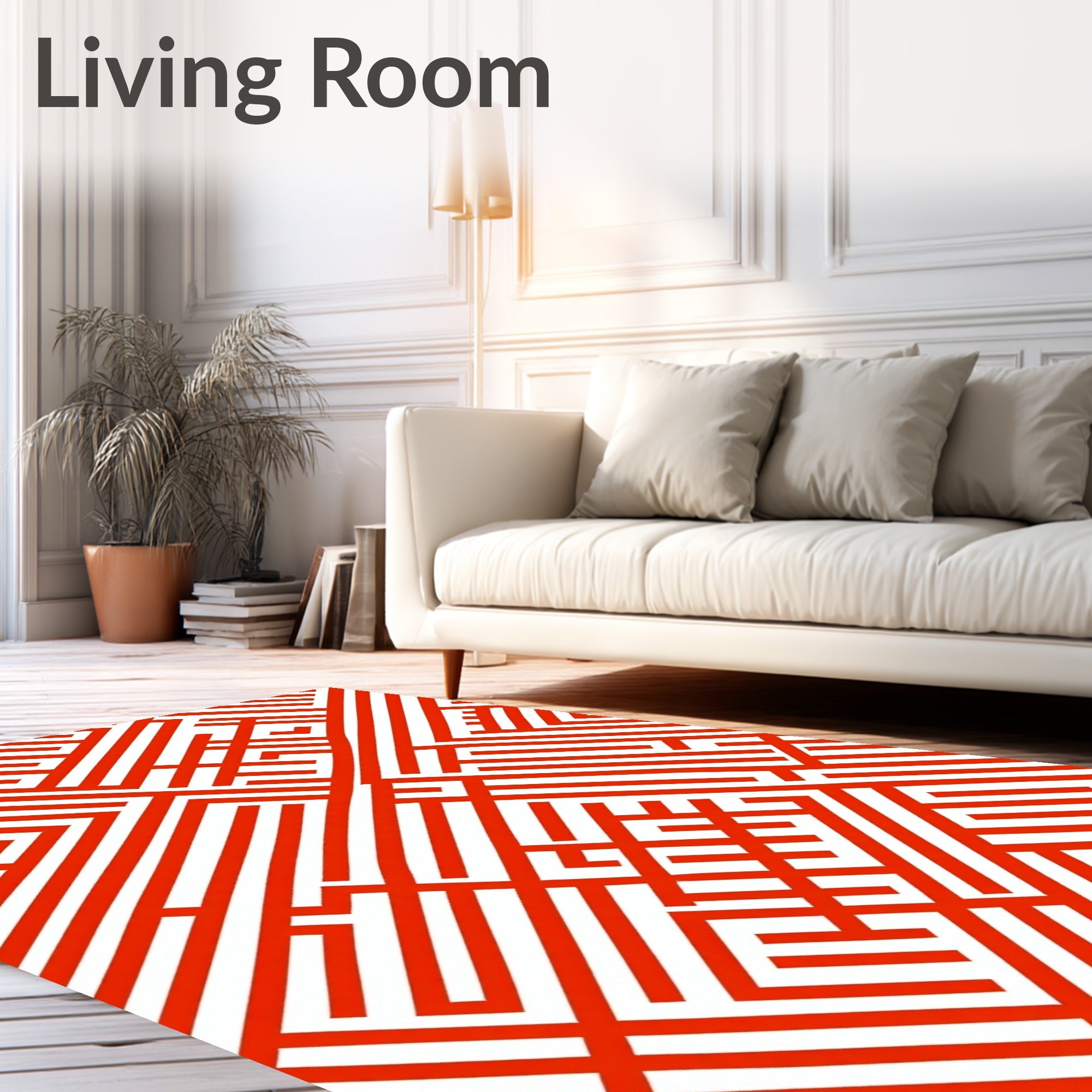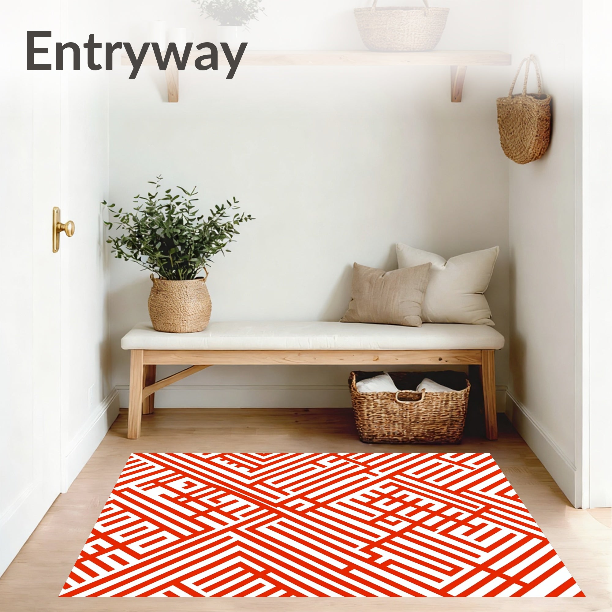Ultra Soft Area Rug, Non Slip, Stain Resistant, Washable Area Rugs for Living Room, Bedroom, Autumn Checkered Patchwork Interlocking Plaid Art(Red) Overview: