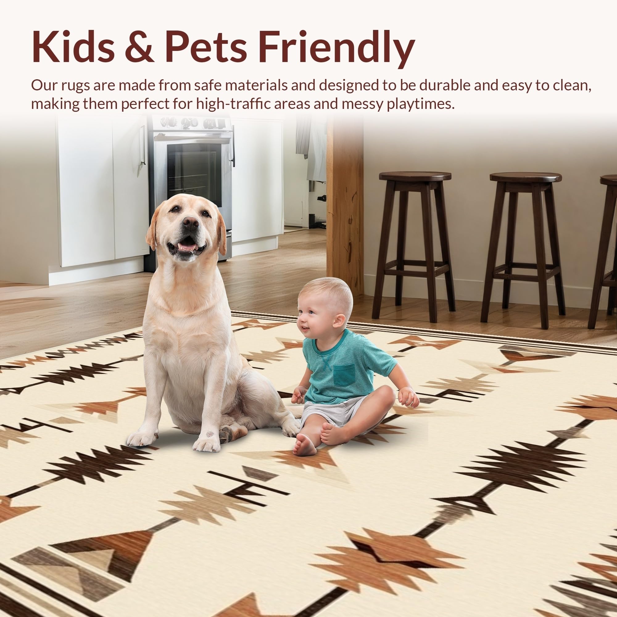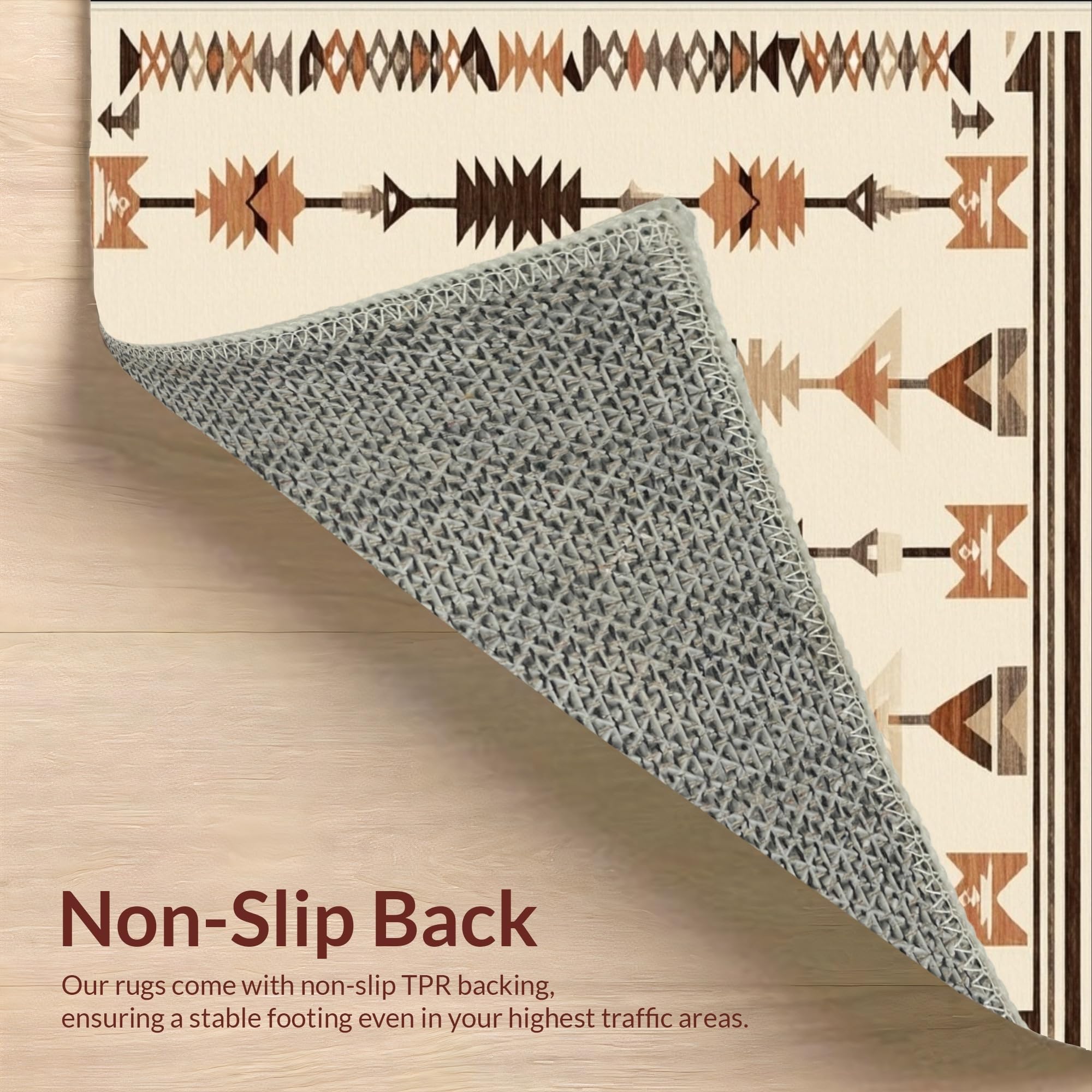 Ultra Soft Area Rug, Non Slip, Stain Resistant, Washable Area Rugs for Living Room, Bedroom, Autumn Collection with Beige and Brown Southwestern Arrow Design(Beige) Overview: