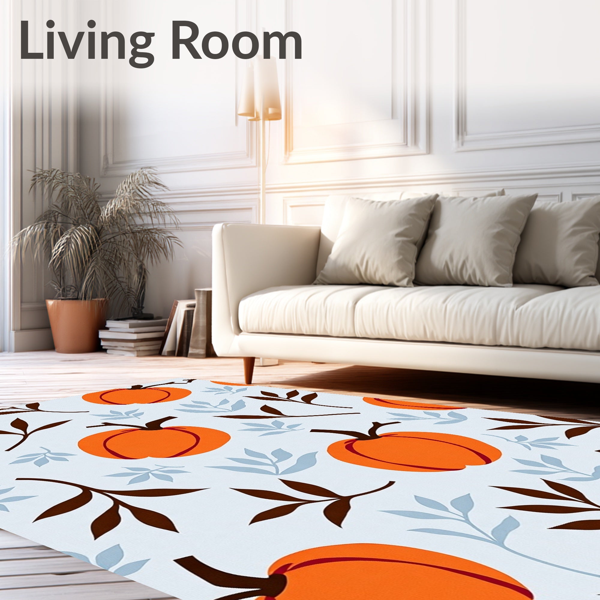 Ultra Soft Area Rug, Non Slip, Stain Resistant, Washable Area Rugs for Living Room, Bedroom, Autumn Elegance Eucalyptus Botanical Seasonal Decorative Accent(Orange) Overview: