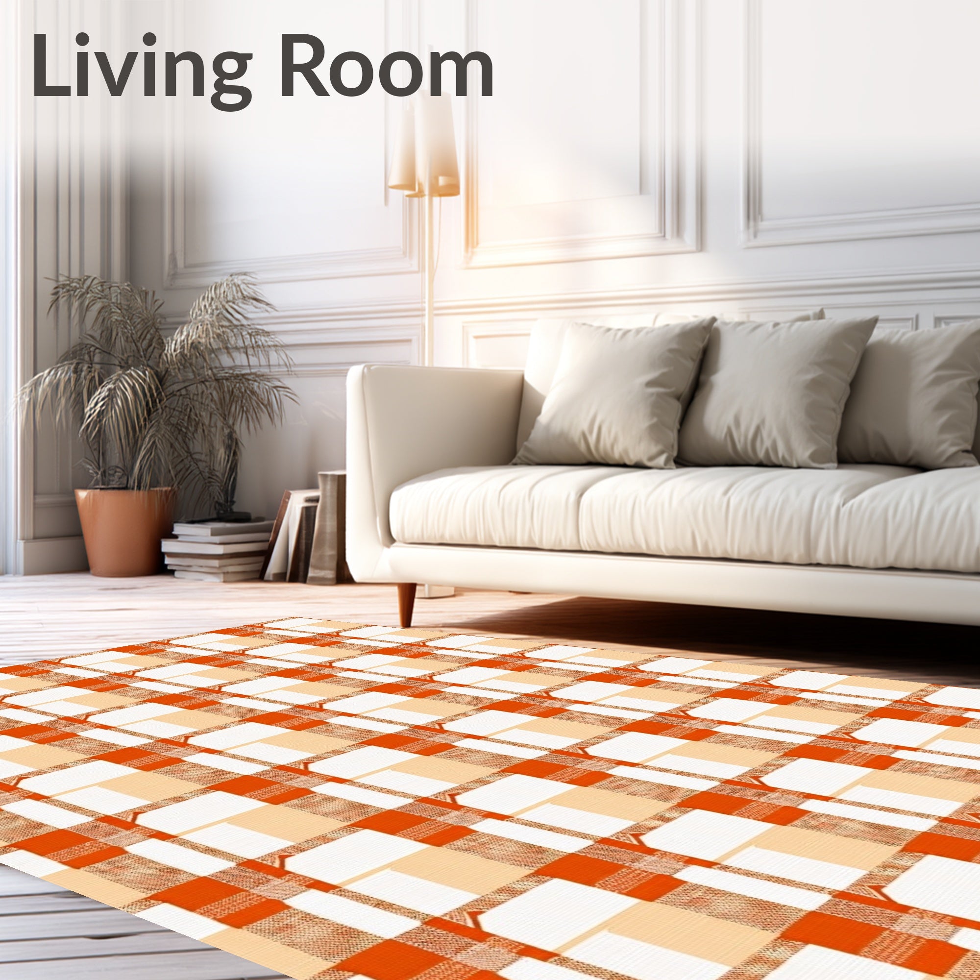 Ultra Soft Area Rug, Non Slip, Stain Resistant, Washable Area Rugs for Living Room, Bedroom, Autumn Gingham Mosaic with Interlocking Harvest Plaid Lines(Orange) Overview: