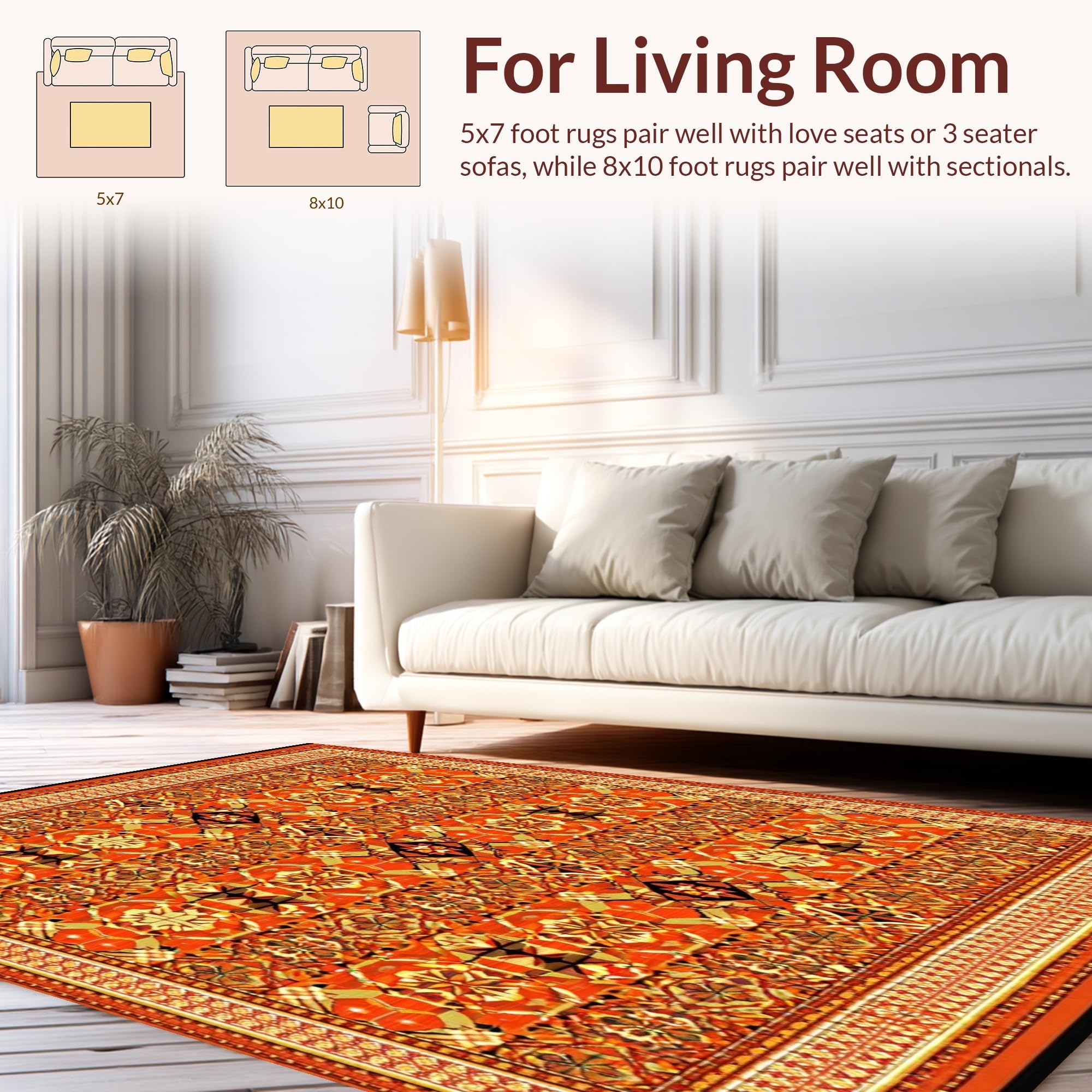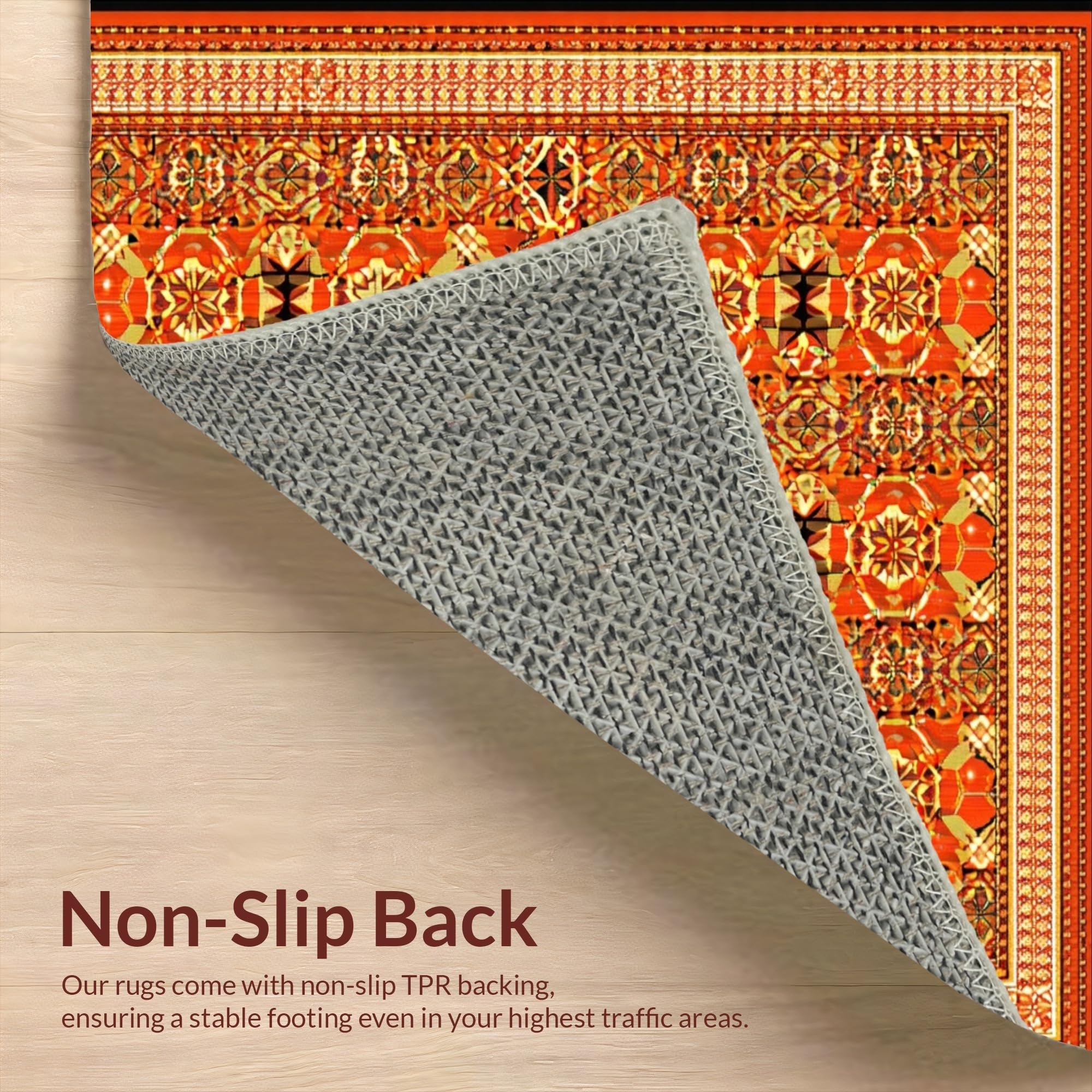 Ultra Soft Area Rug, Non Slip, Stain Resistant, Washable Area Rugs for Living Room, Bedroom, Autumn Harvest Geometric Area with Warm Orange and Earthy Tones(Red) Overview: