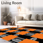 Ultra Soft Area Rug, Non Slip, Stain Resistant, Washable Area Rugs for Living Room, Bedroom, Autumn Harvest Gingham Decorative with Seasonal Motifs(Orange) Overview:
