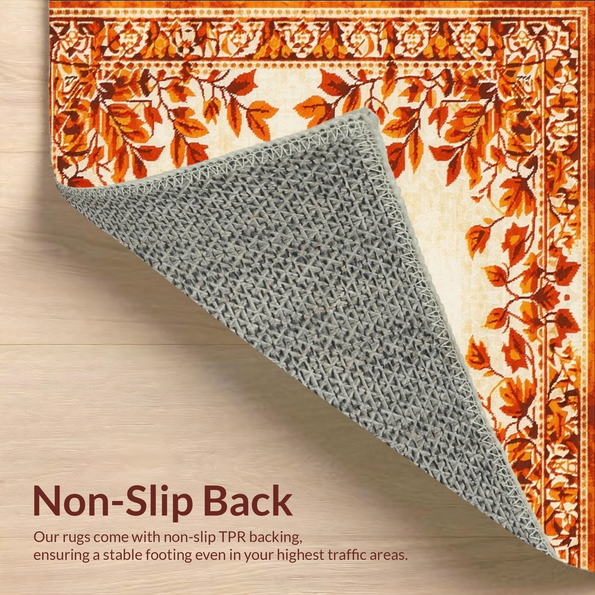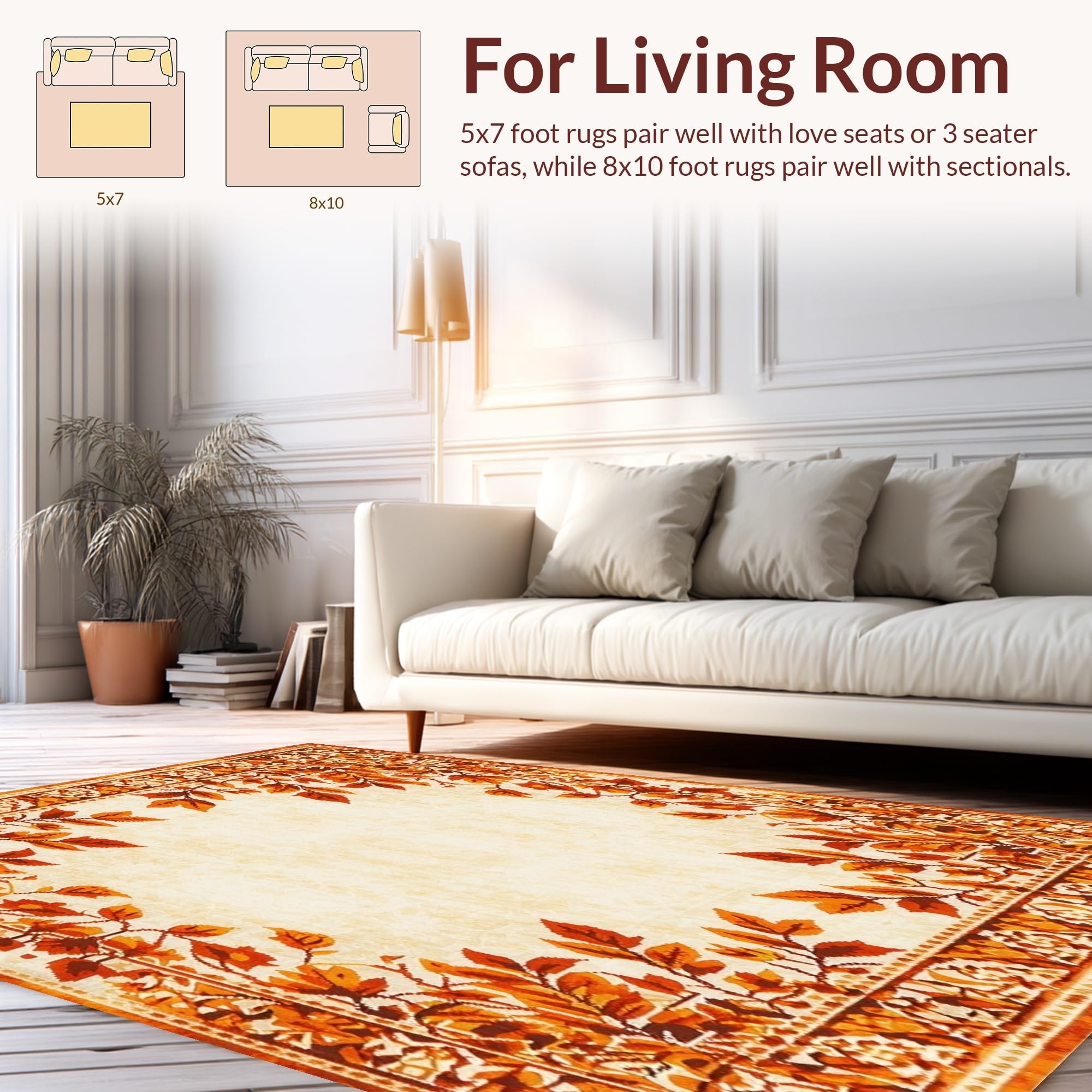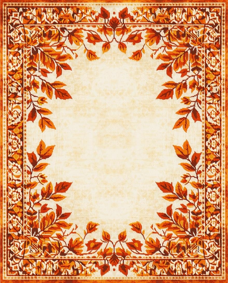 Ultra Soft Area Rug, Non Slip, Stain Resistant, Washable Area Rugs for Living Room, Bedroom, Autumn Harvest Medallion Area with Rustic Burnt Orange Leaf Design(Beige) Overview: