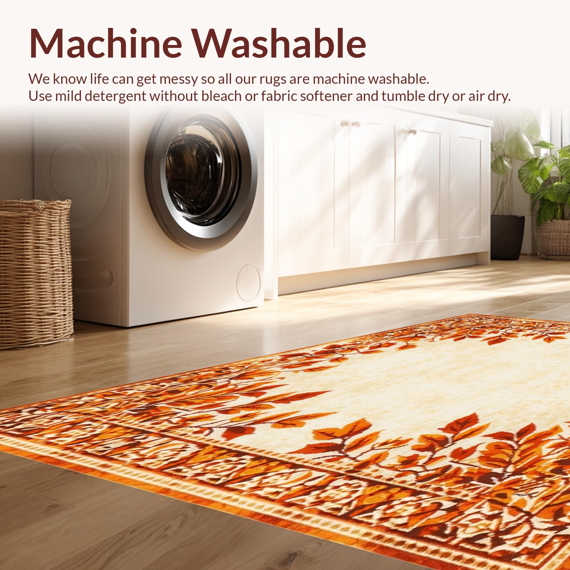 - Machine Washable: Our rugs can be easily thrown in the wash machine.