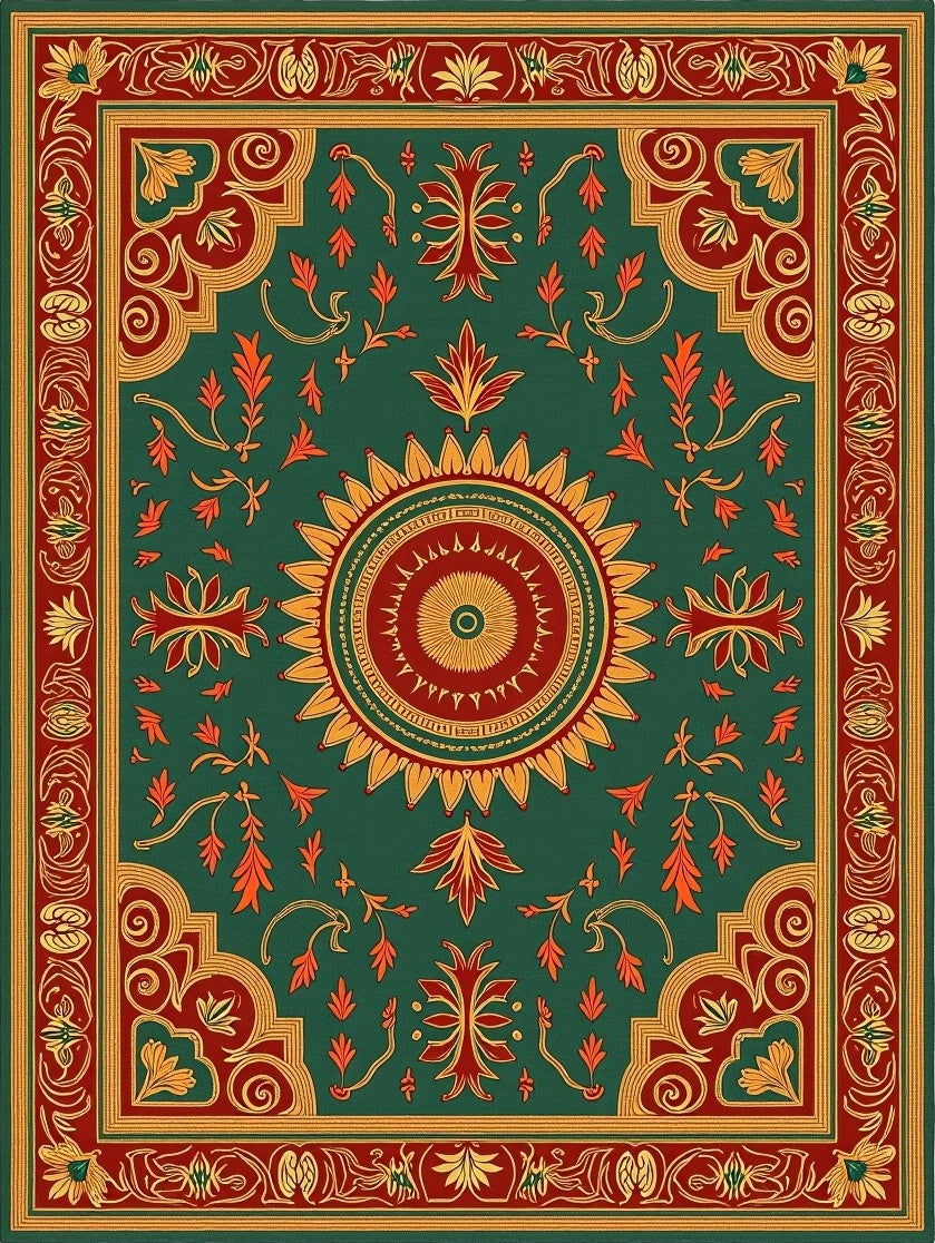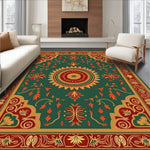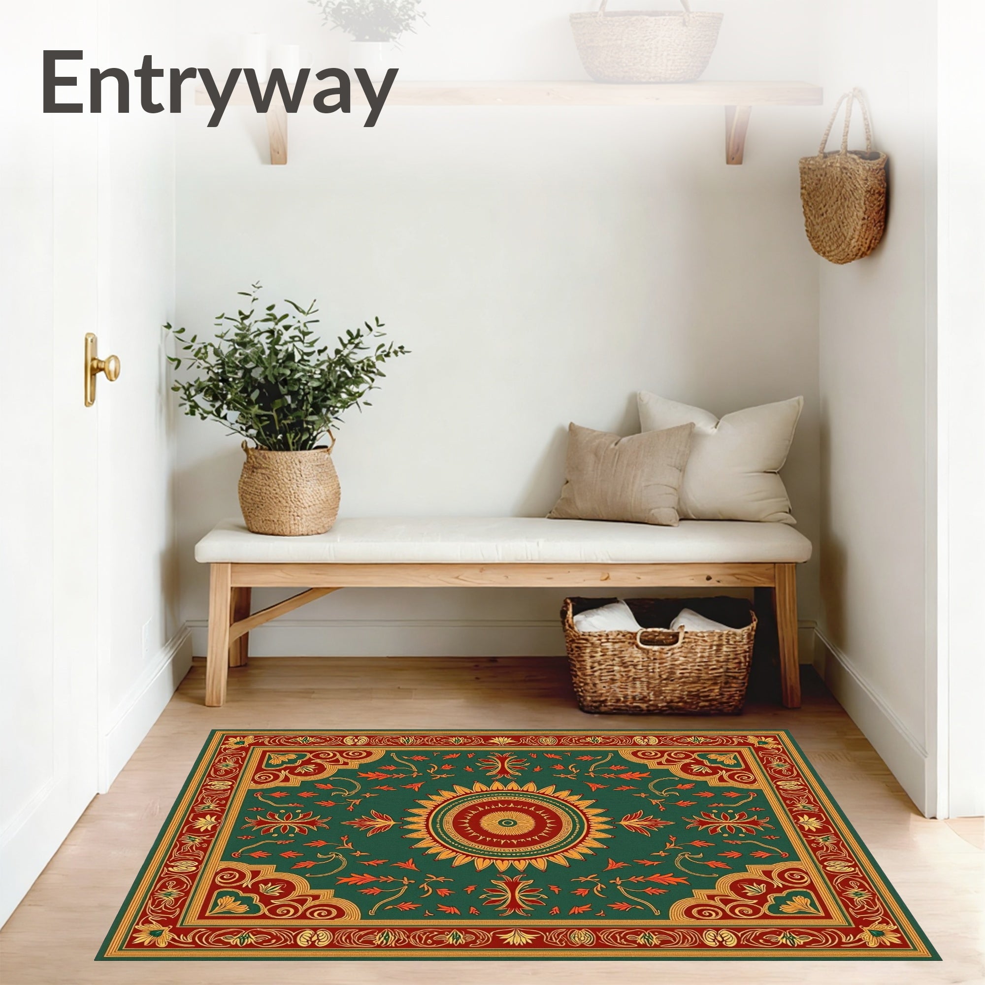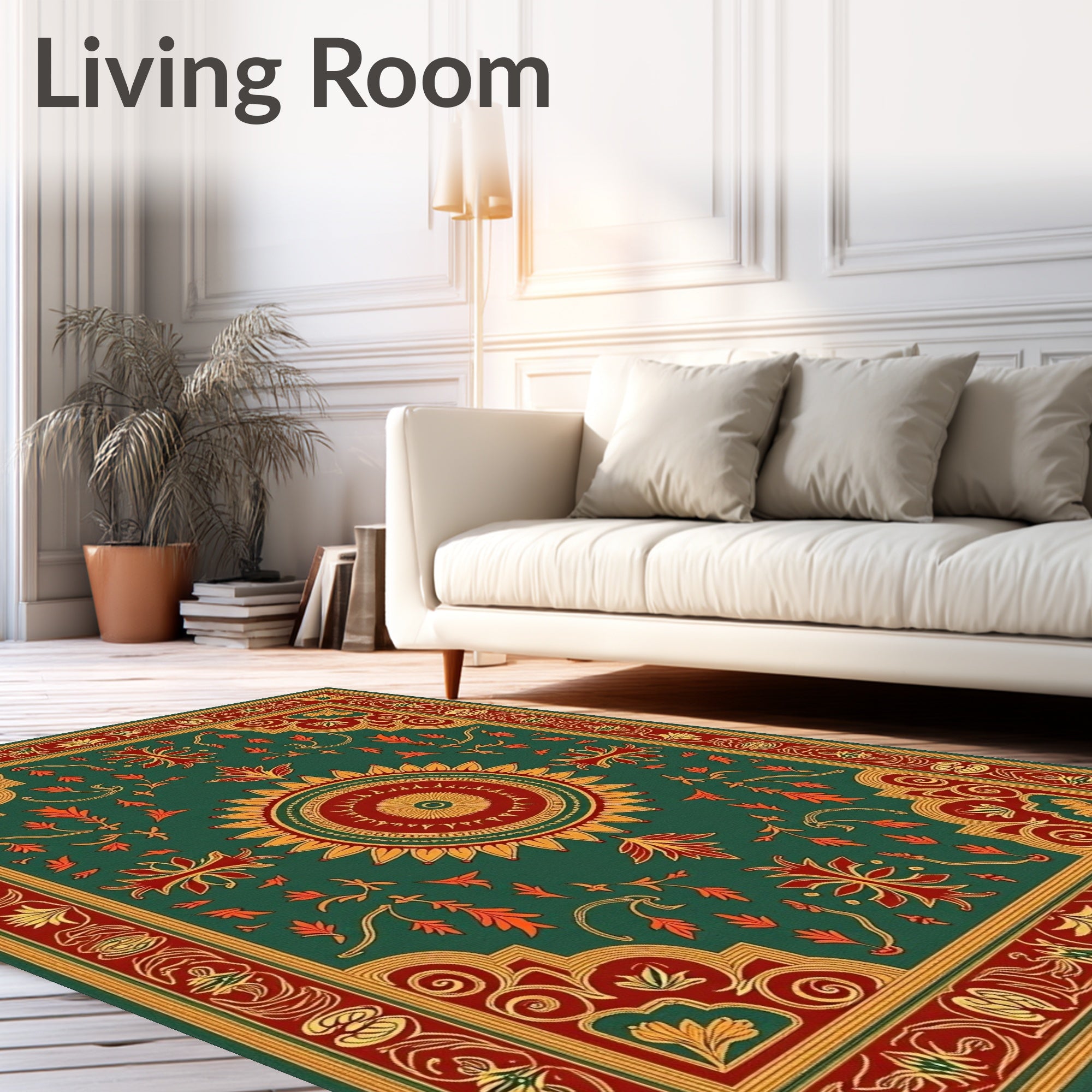 Ultra Soft Area Rug, Non Slip, Stain Resistant, Washable Area Rugs for Living Room, Bedroom, Autumn Harvest Medallion with Tasseled Edges(Green) Overview: