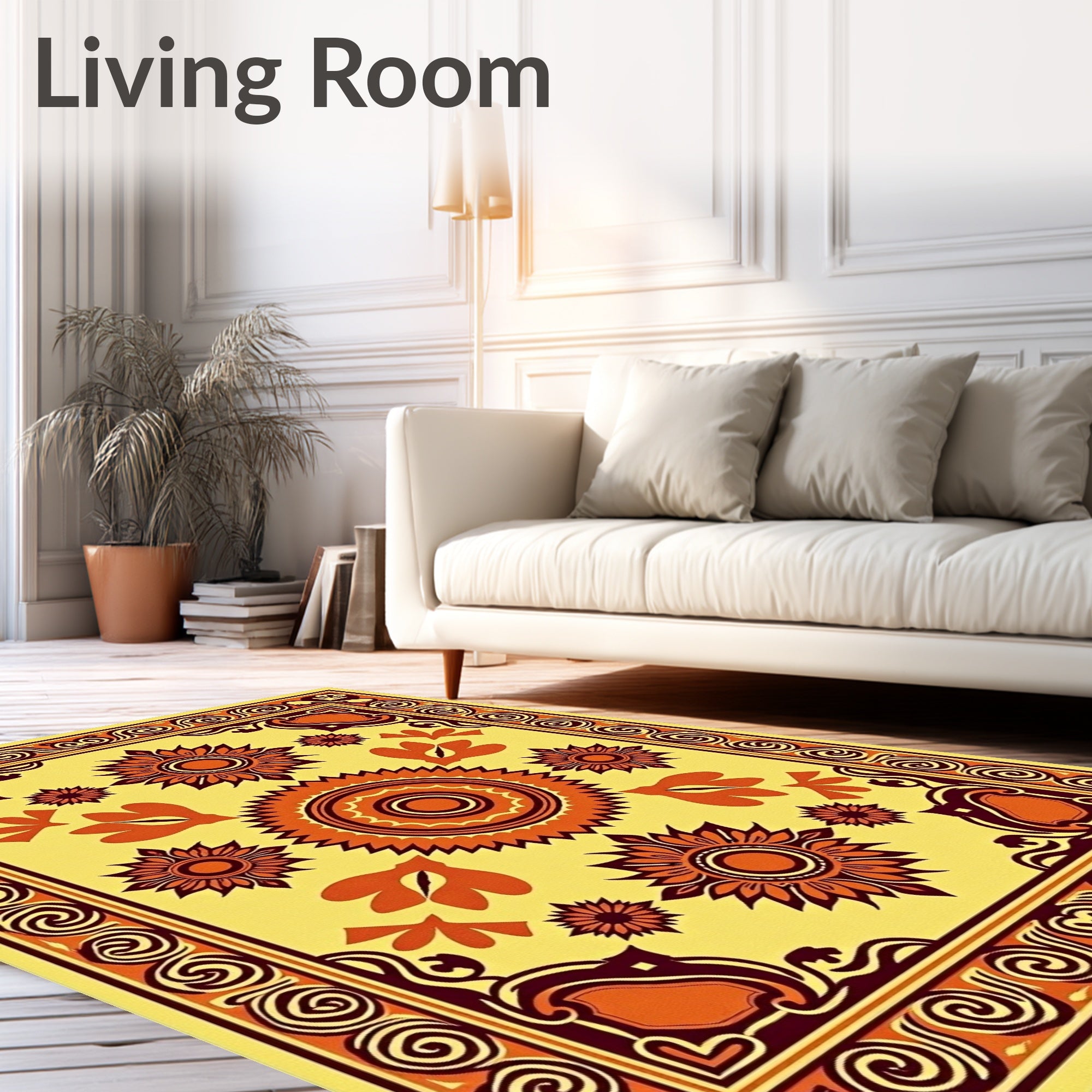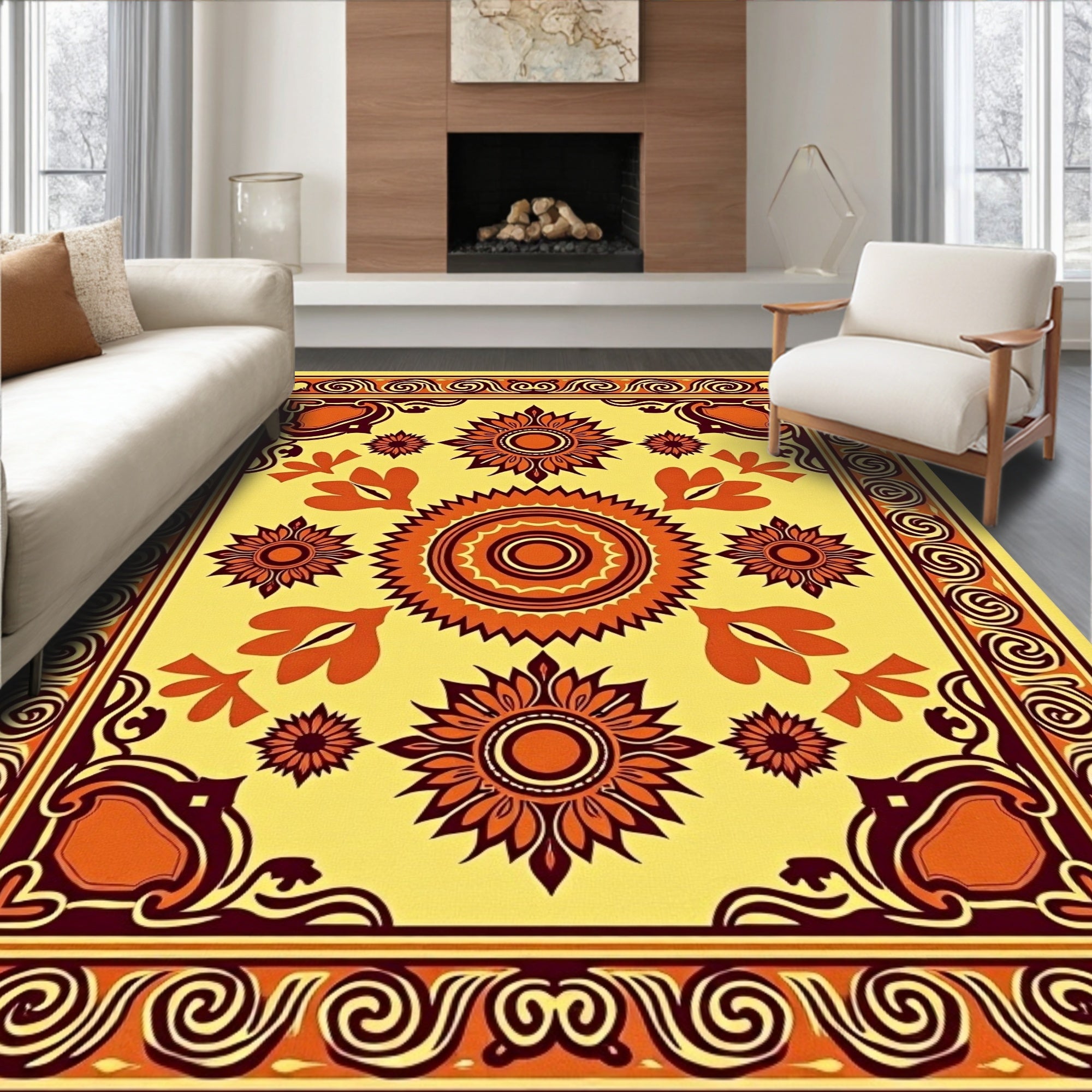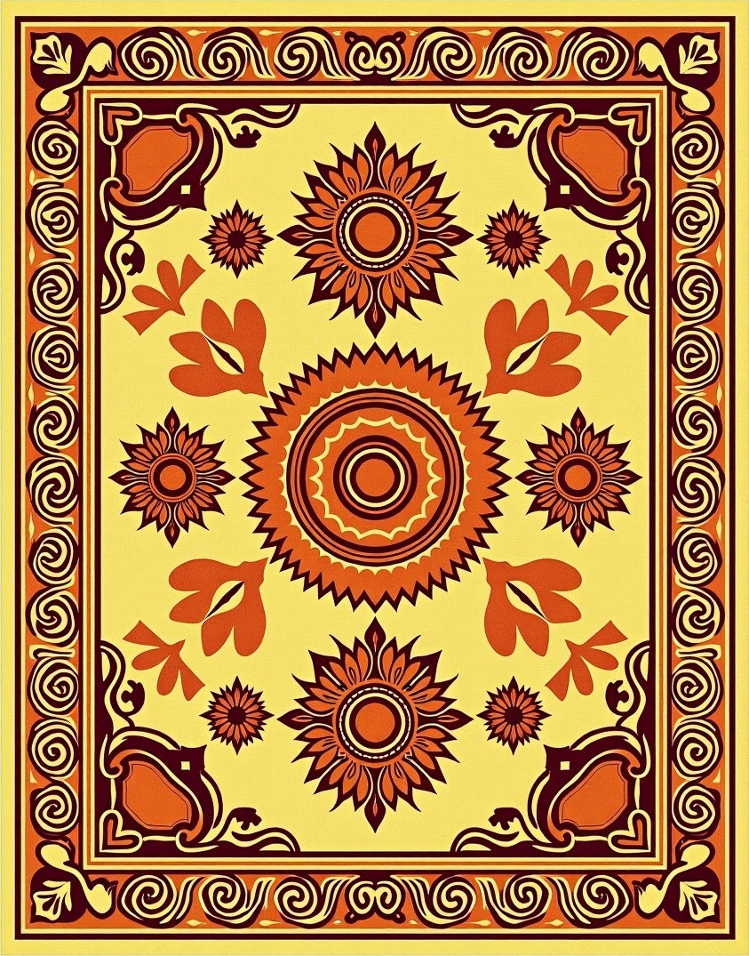 Ultra Soft Area Rug, Non Slip, Stain Resistant, Washable Area Rugs for Living Room, Bedroom, Autumn Harvest Medallion with Tasseled Edges(Yellow) Overview: