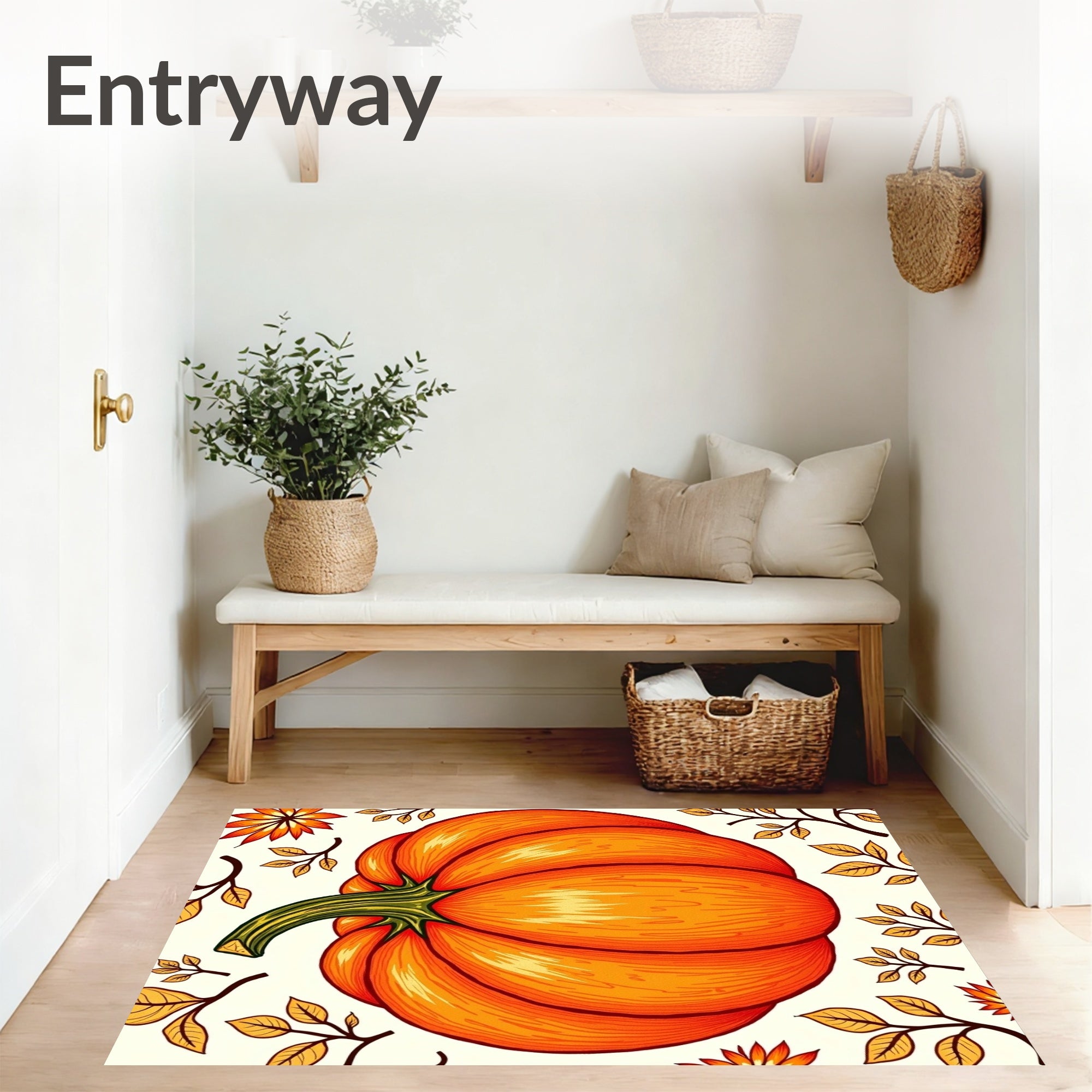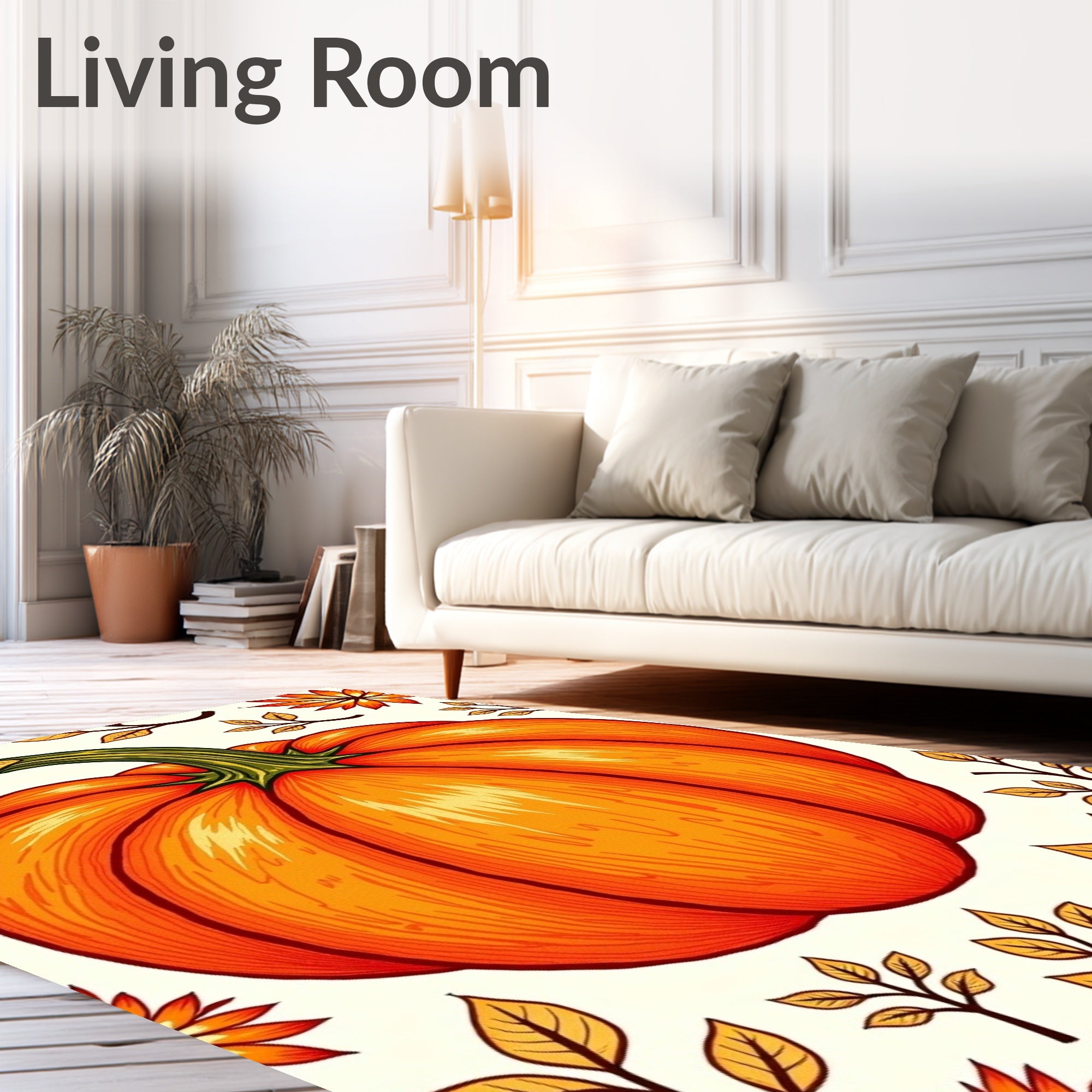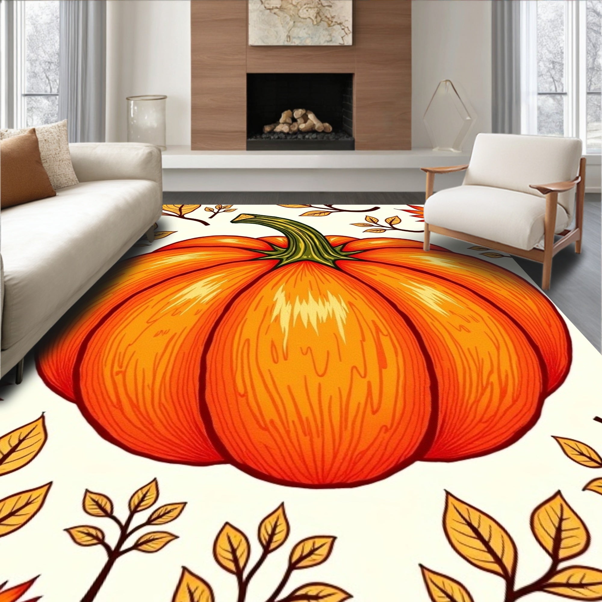 Ultra Soft Area Rug, Non Slip, Stain Resistant, Washable Area Rugs for Living Room, Bedroom, Autumn Harvest Pumpkin Decorative Accent(Orange) Overview: