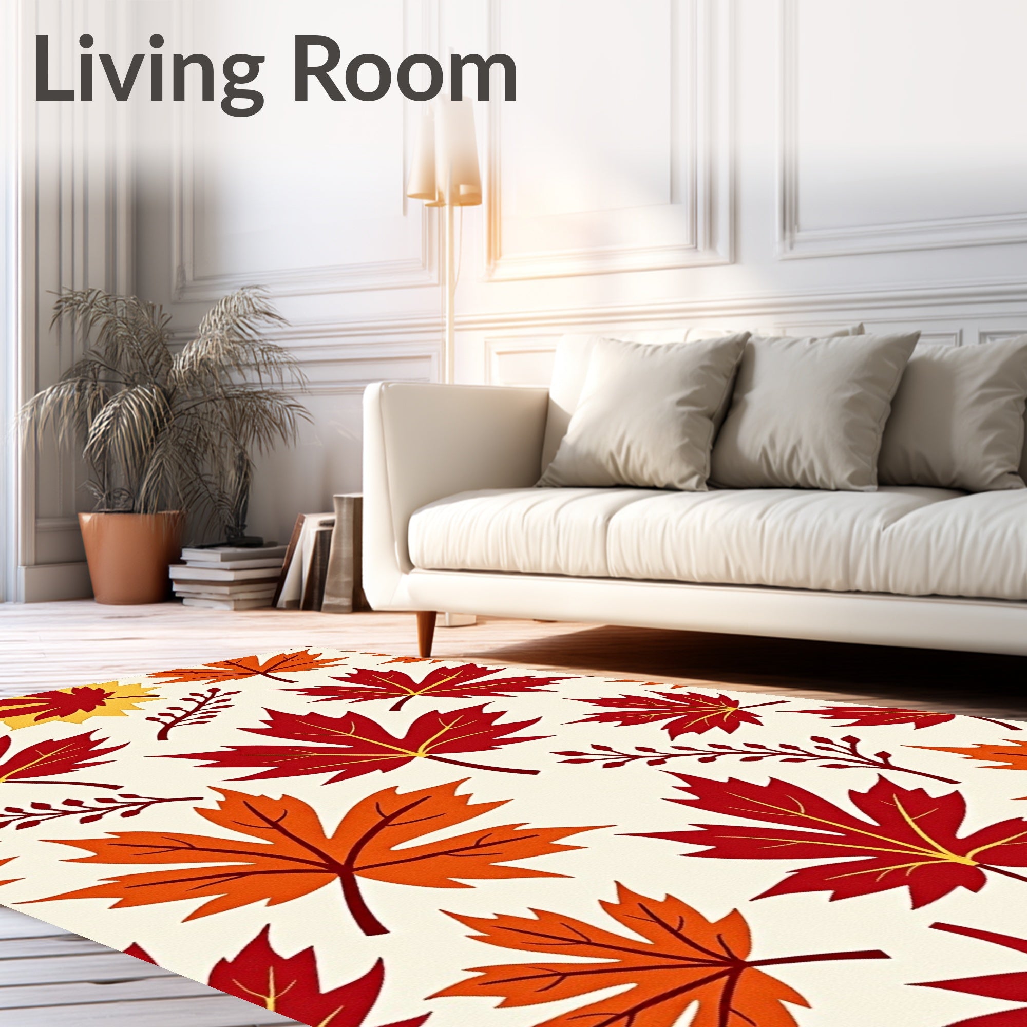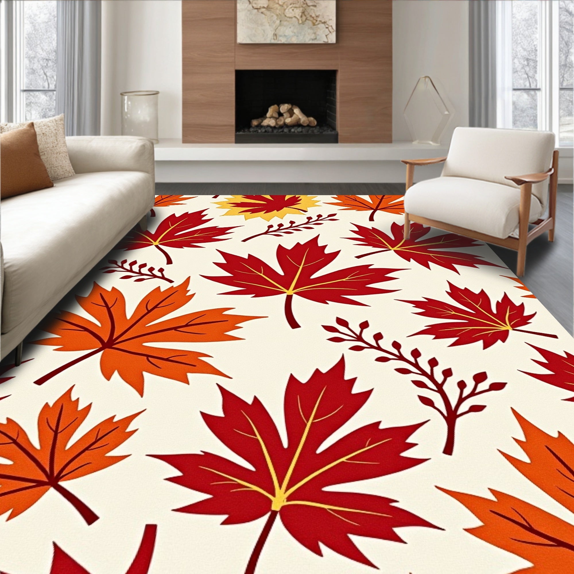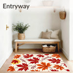 Ultra Soft Area Rug, Non Slip, Stain Resistant, Washable Area Rugs for Living Room, Bedroom, Autumn Harvest Semicircle Doormat with Golden Maple Leaves Branch Design(Red) Overview:
