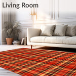 Ultra Soft Area Rug, Non Slip, Stain Resistant, Washable Area Rugs for Living Room, Bedroom, Autumn Harvest Tartan Cross Hatch Grid Decorative(Red) Overview: