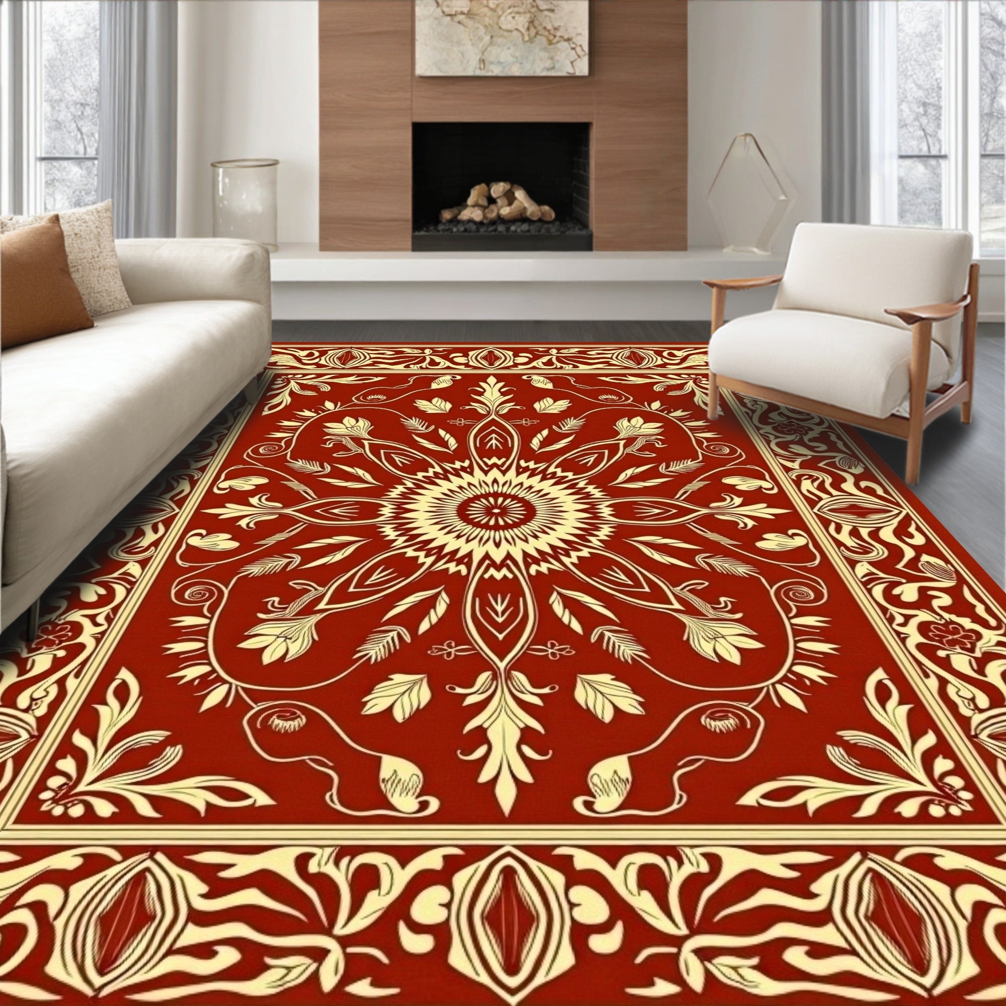 Ultra Soft Area Rug, Non Slip, Stain Resistant, Washable Area Rugs for Living Room, Bedroom, Autumn Harvest with Tassels Boho Farmhouse(Red) Overview: