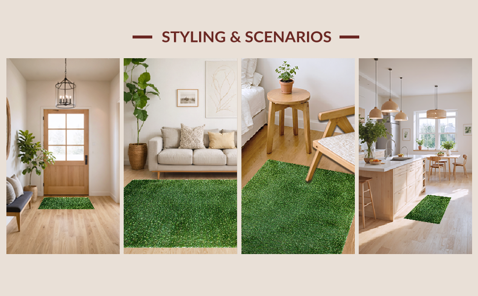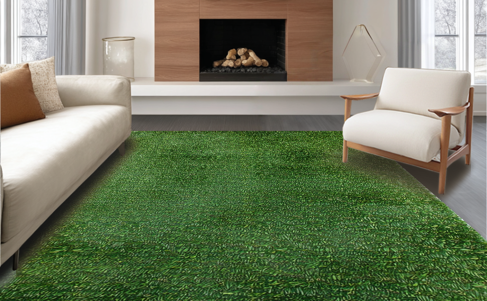 Ultra Soft Area Rug, Non Slip, Stain Resistant, Washable Area Rugs for Living Room, Bedroom, Autumn-Inspired Rustic Grass Aesthetic(Green) Overview: