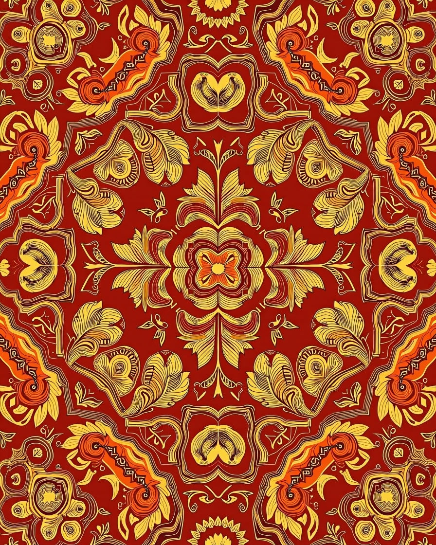 Autumn Medley Interlocking Leaf Motif with Folk Art Accents(Red)