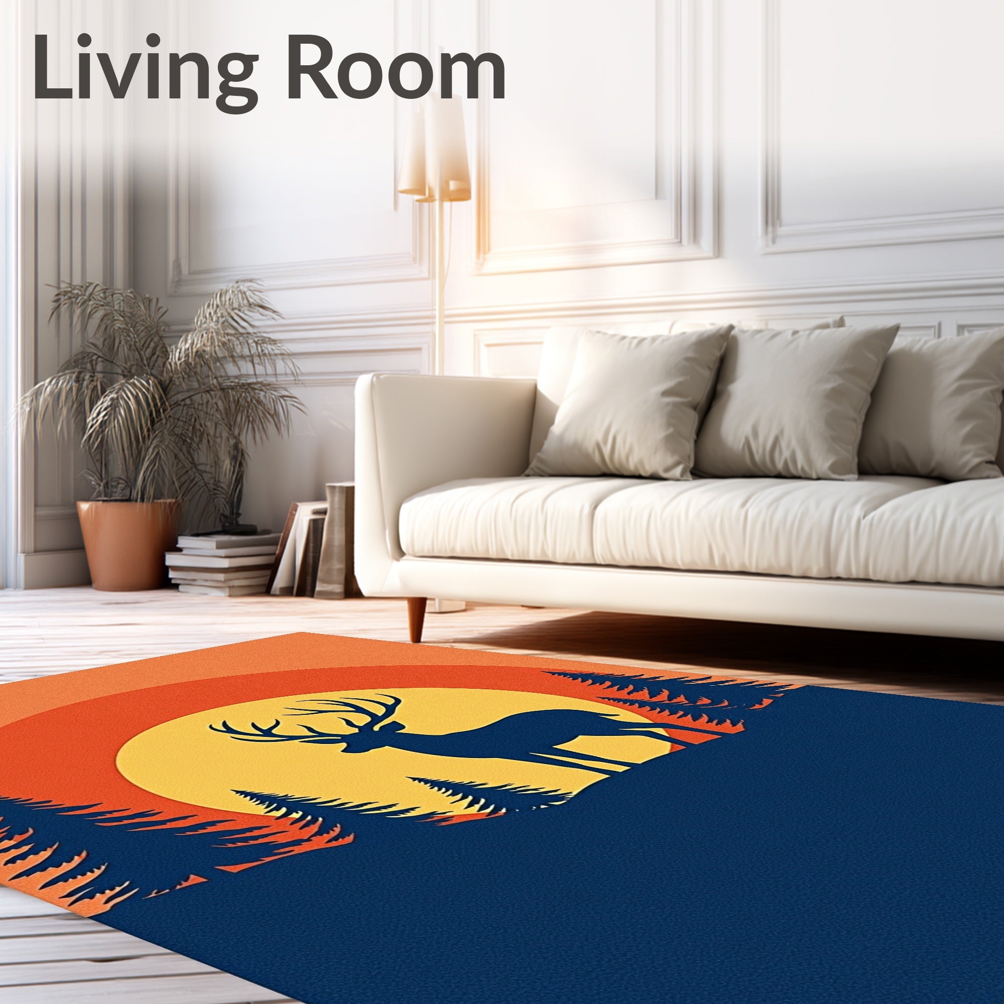Ultra Soft Area Rug, Non Slip, Stain Resistant, Washable Area Rugs for Living Room, Bedroom, Autumn Woodland Deer Semi Circle Entrance(Orange) Overview: