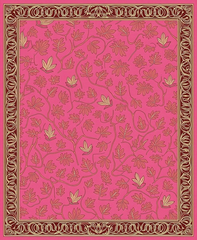 Autumnal Foliage Interlocking Floral with Elegant Vinework(Pink)