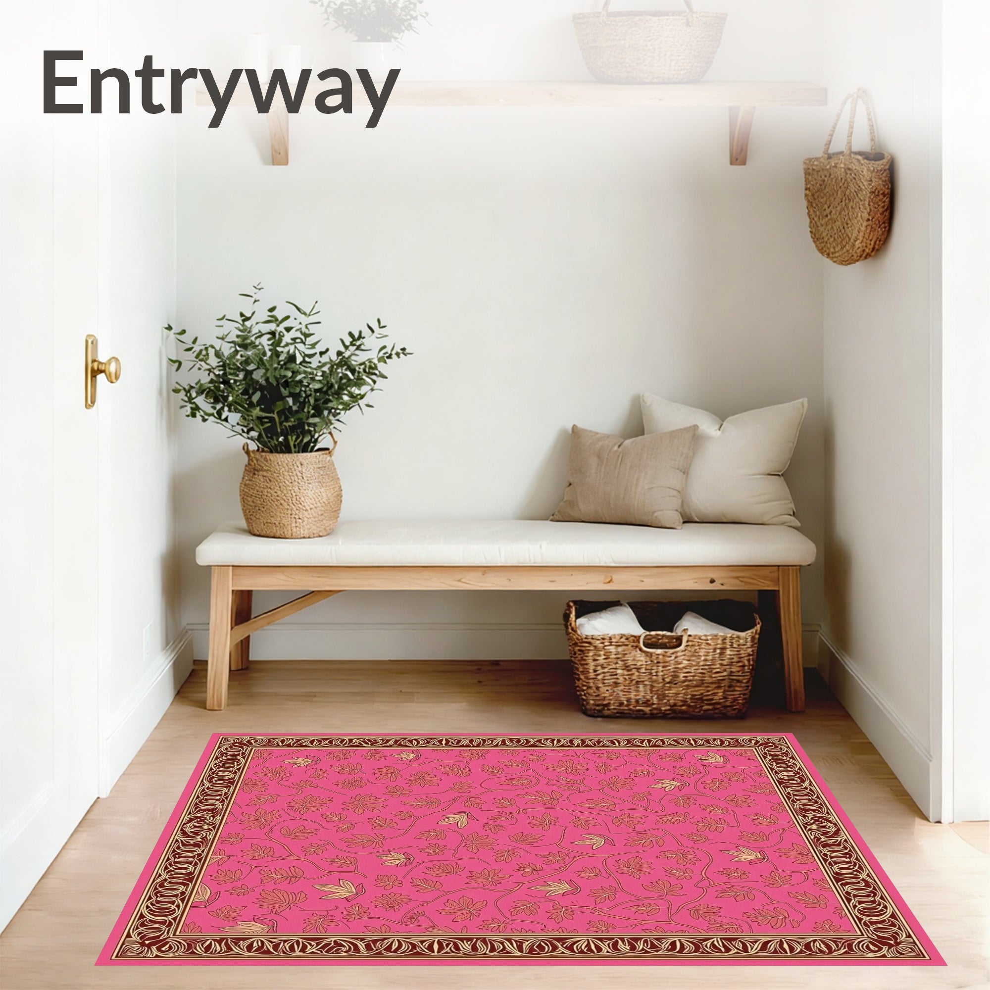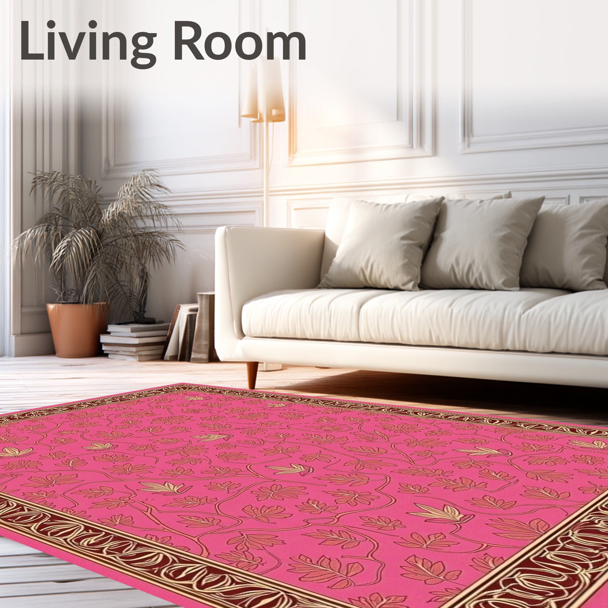 Ultra Soft Area Rug, Non Slip, Stain Resistant, Washable Area Rugs for Living Room, Bedroom, Autumnal Foliage Interlocking Floral with Elegant Vinework(Pink) Overview: