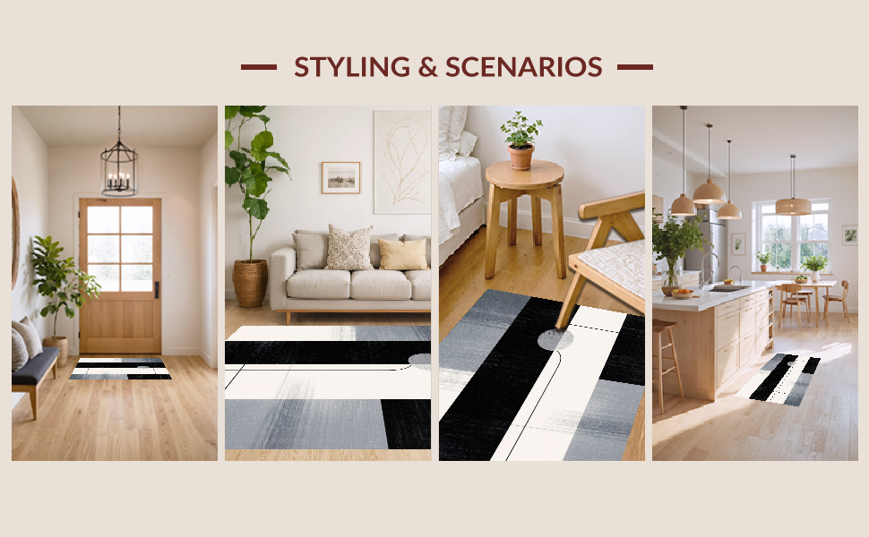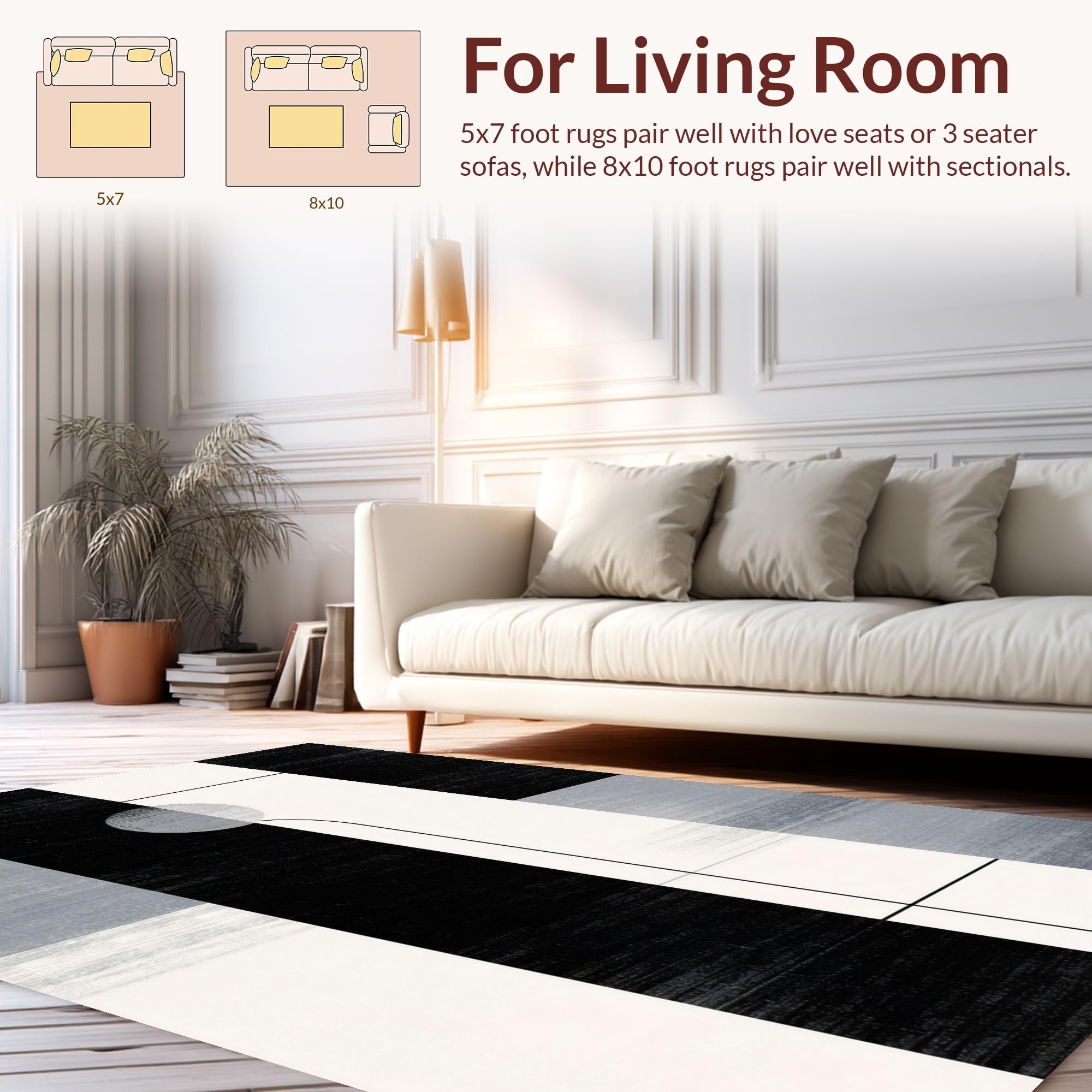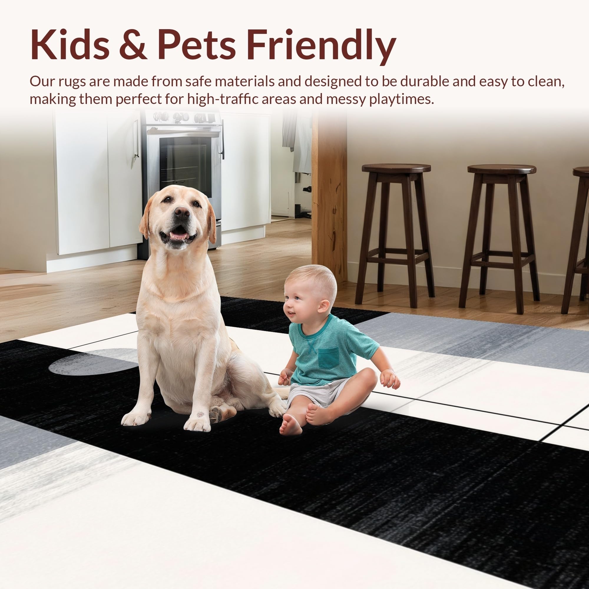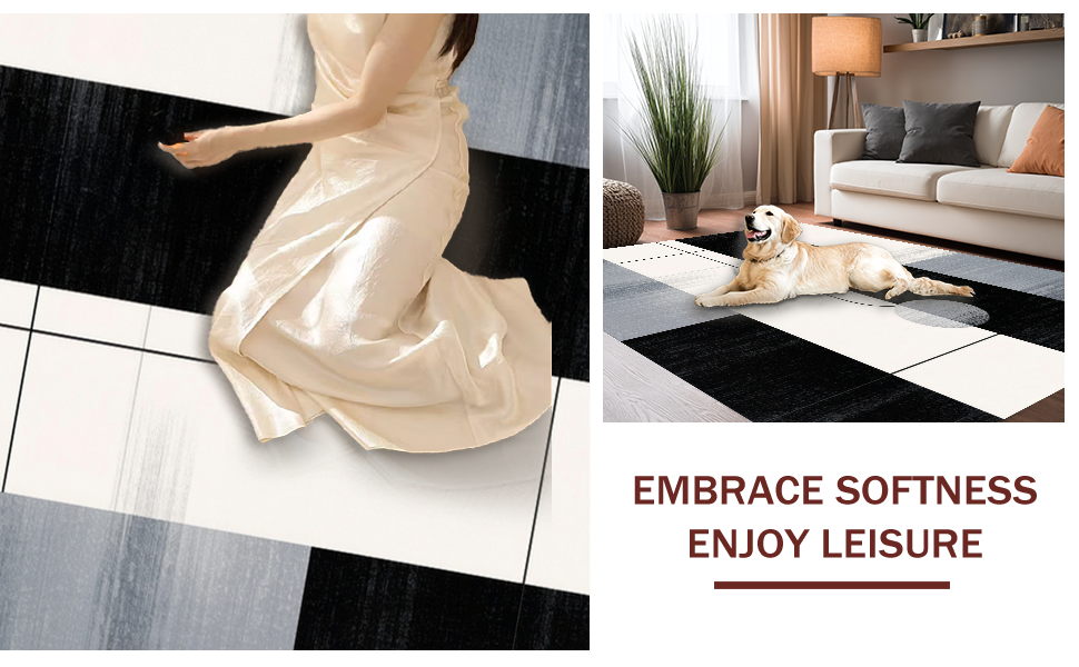 Ultra Soft Area Rug, Non Slip, Stain Resistant, Washable Area Rugs for Living Room, Bedroom, Avant-Garde Modern Tiled Motif(Gray) Overview:
