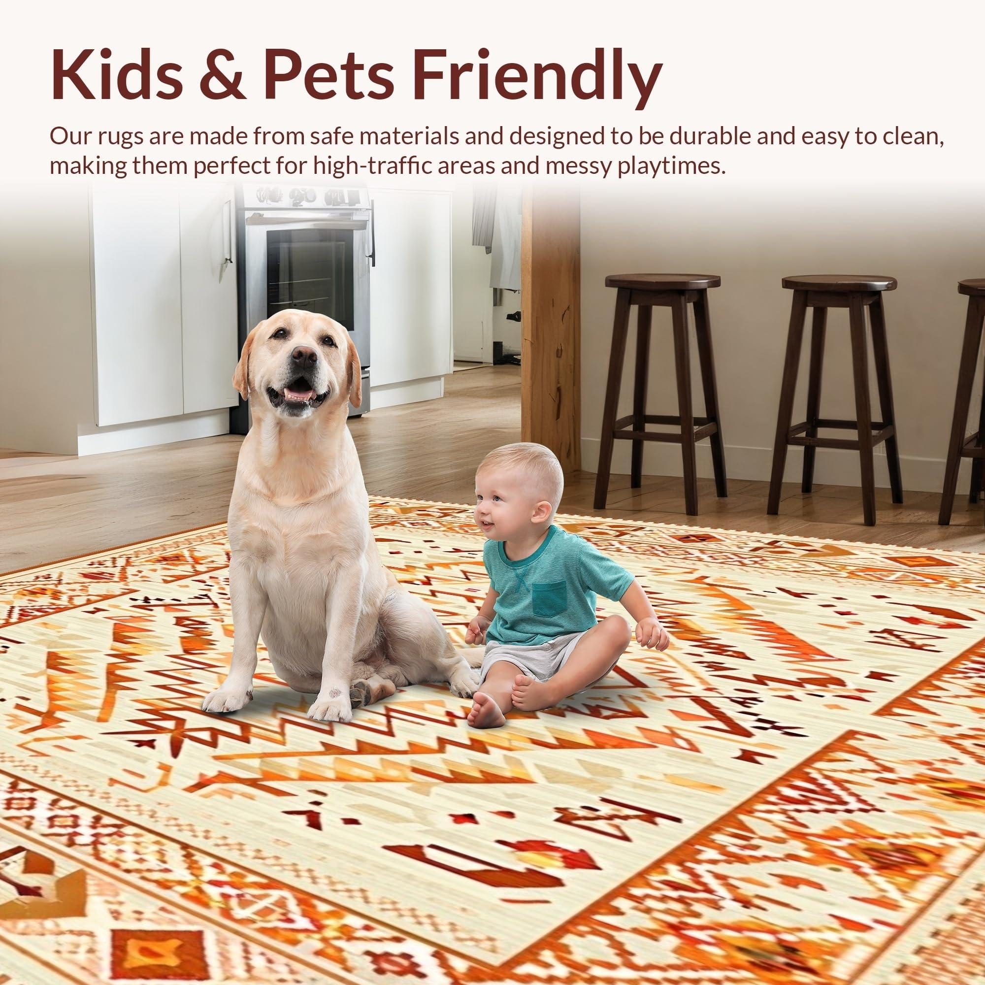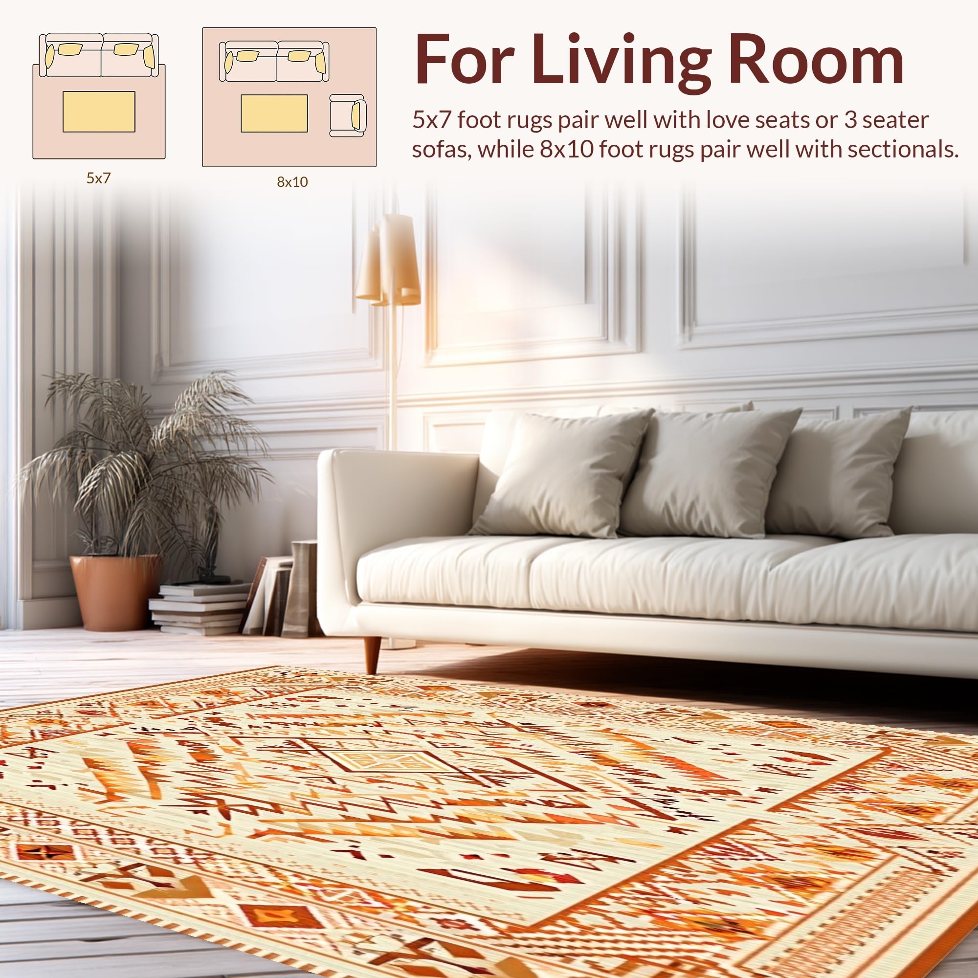 Ultra Soft Area Rug, Non Slip, Stain Resistant, Washable Area Rugs for Living Room, Bedroom, Aztec Inspired Area with Warm Hues Geometric(Beige) Overview: