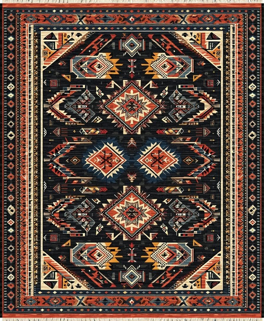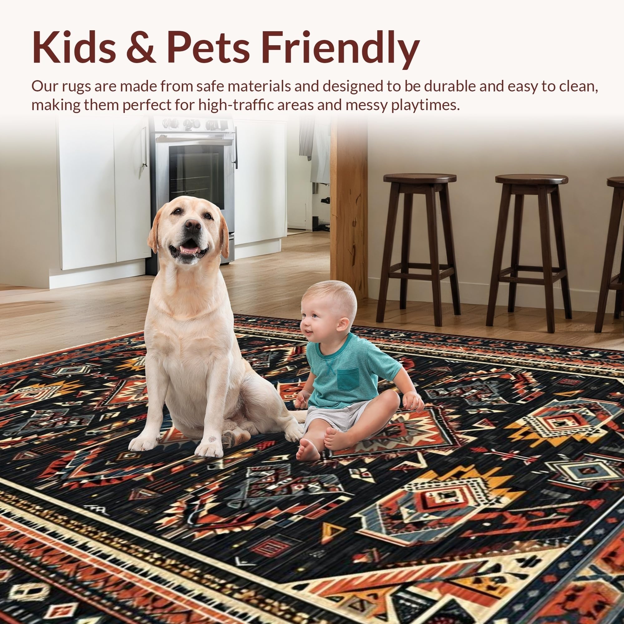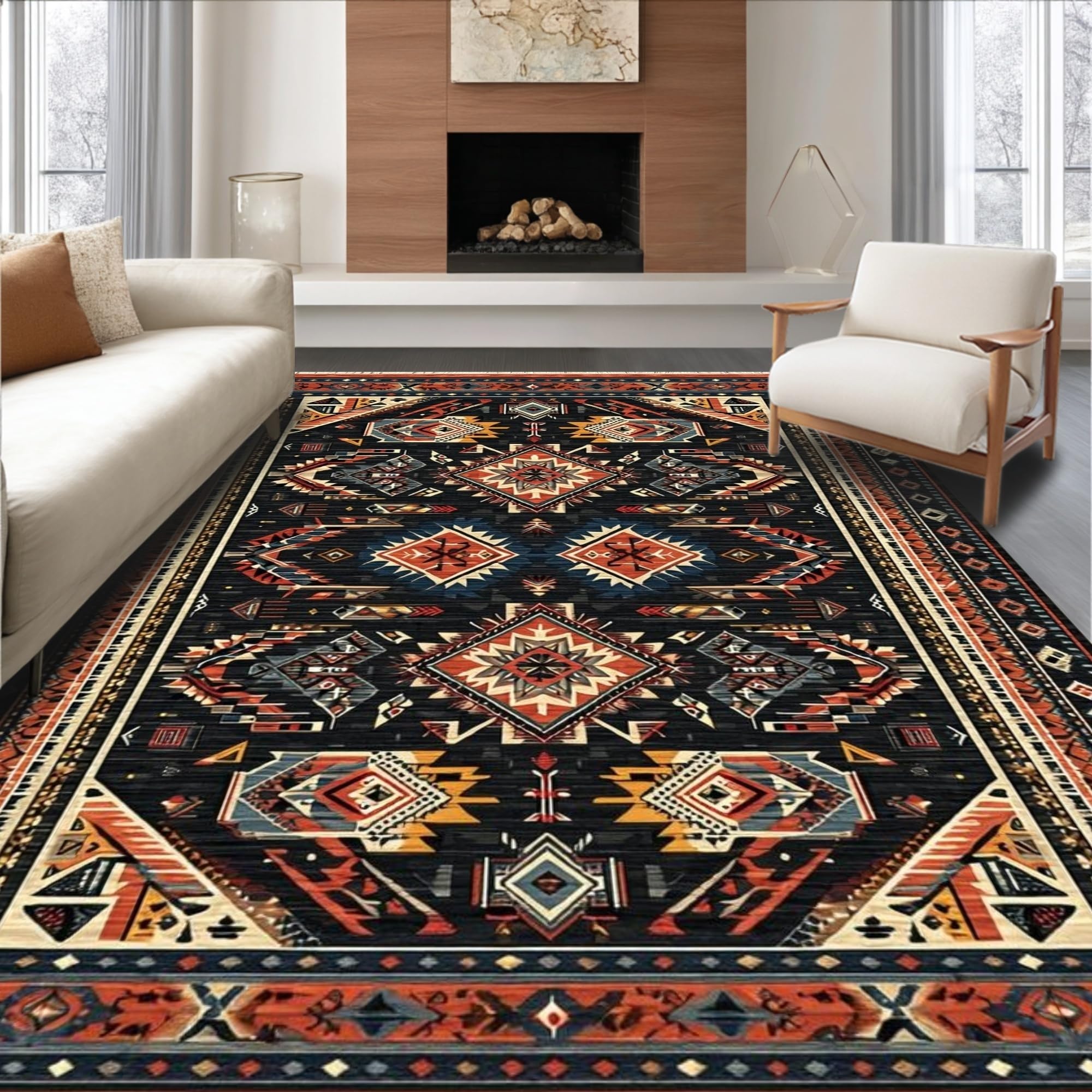 Ultra Soft Area Rug, Non Slip, Stain Resistant, Washable Area Rugs for Living Room, Bedroom, Aztec Inspired Earthy Aesthetic(Black) Overview: