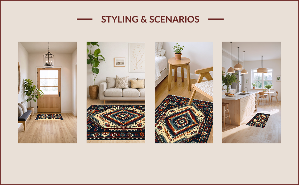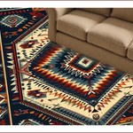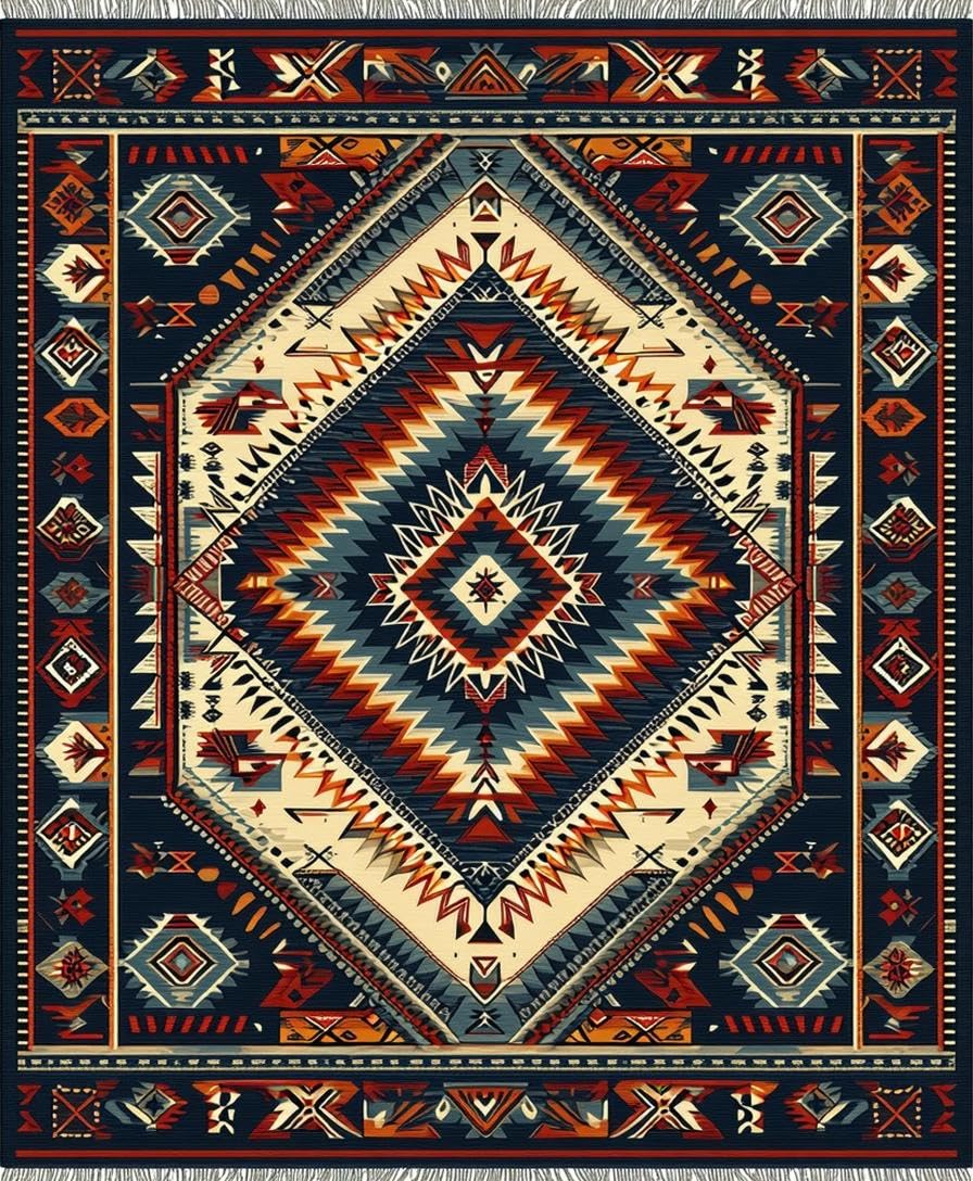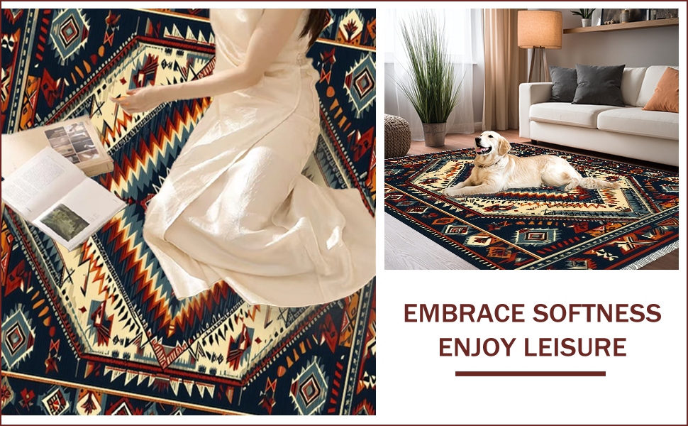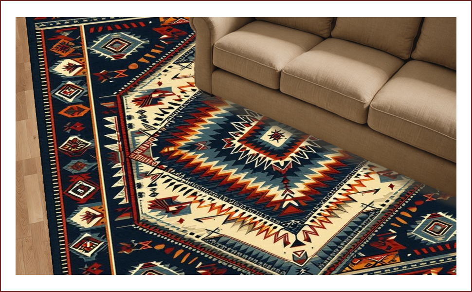 Ultra Soft Area Rug, Non Slip, Stain Resistant, Washable Area Rugs for Living Room, Bedroom, Aztec Inspired Monochrome Aesthetic(Blue) Overview: