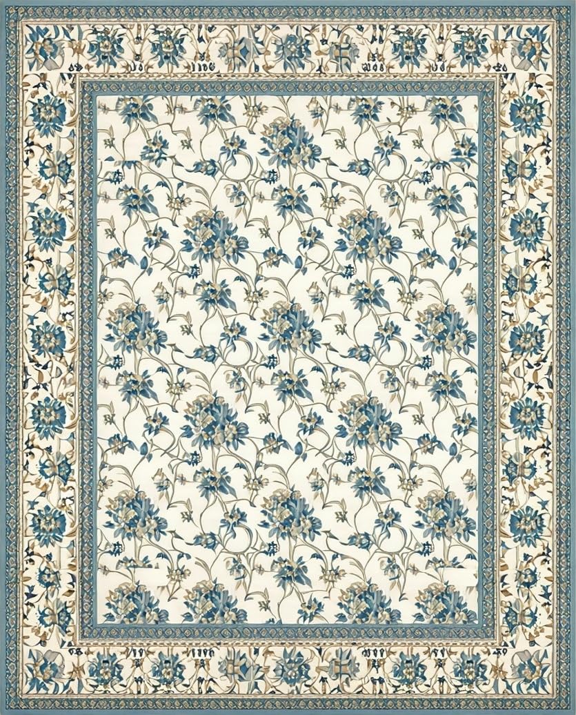 Azure Echoes Area Beige Accents Elegant Floor Art(Beige)