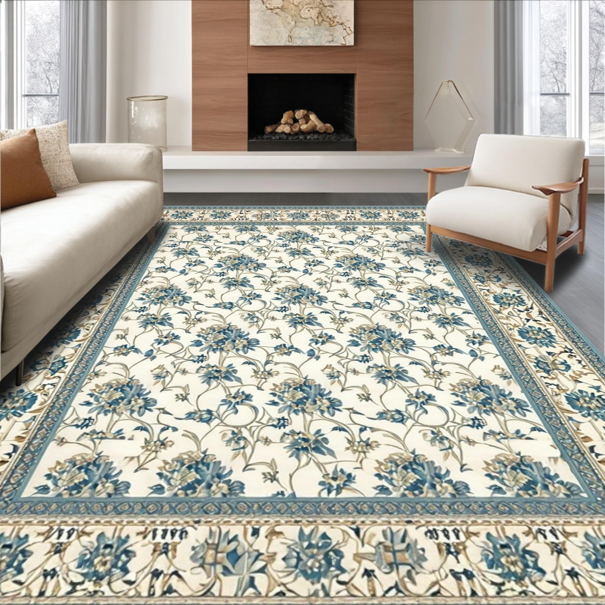Ultra Soft Area Rug, Non Slip, Stain Resistant, Washable Area Rugs for Living Room, Bedroom, Azure Echoes Area Beige Accents Elegant Floor Art(Beige) Overview: