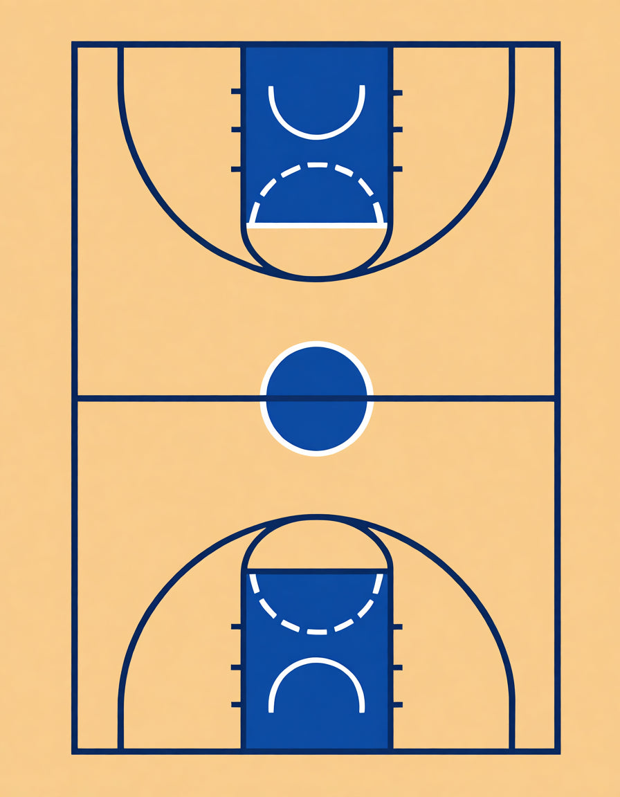 Basketball Court Beige Floor Blue Key Dark Blue Lines(Beige)