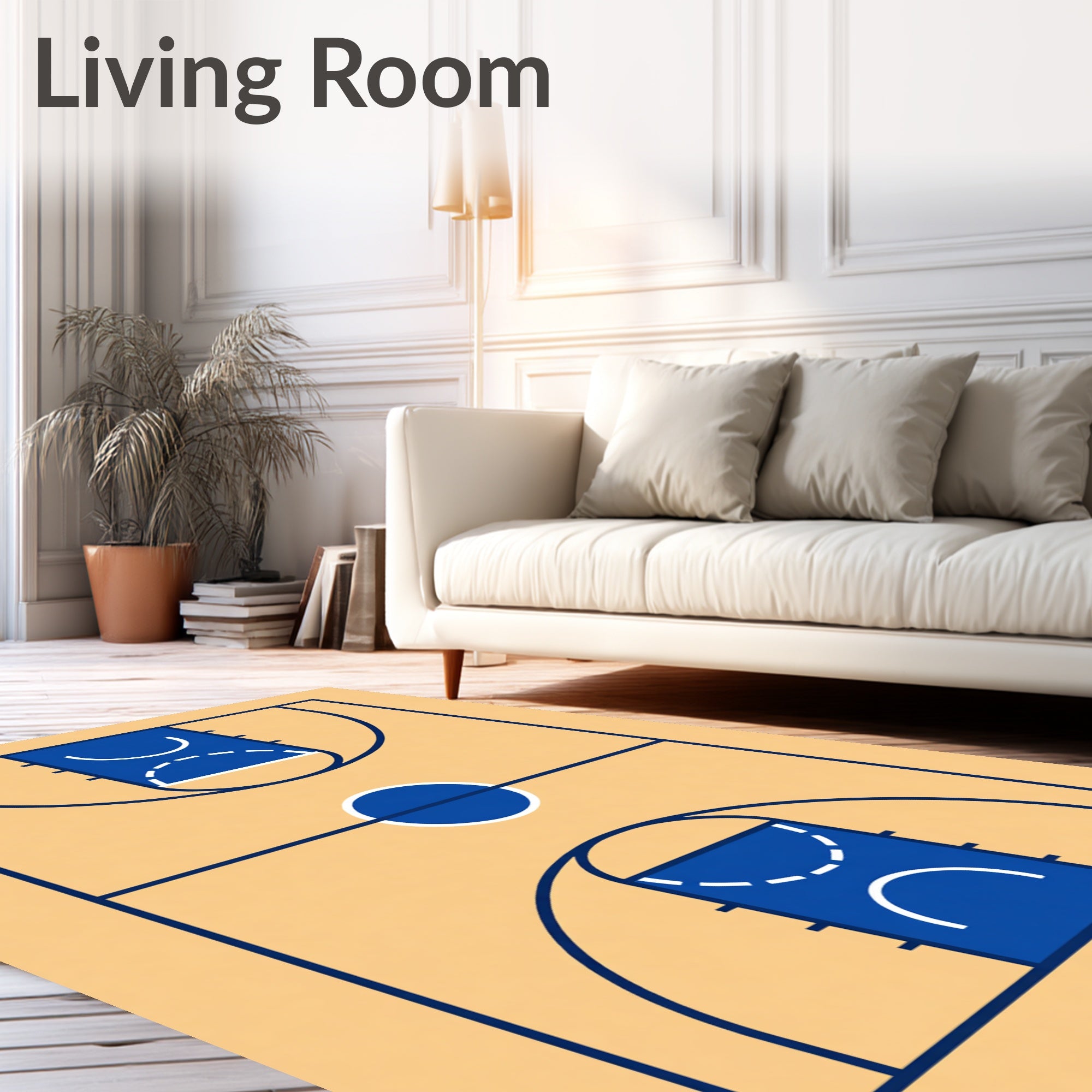 Ultra Soft Area Rug, Non Slip, Stain Resistant, Washable Area Rugs for Living Room, Bedroom, Basketball Court Beige Floor Blue Key Dark Blue Lines(beige) Overview: