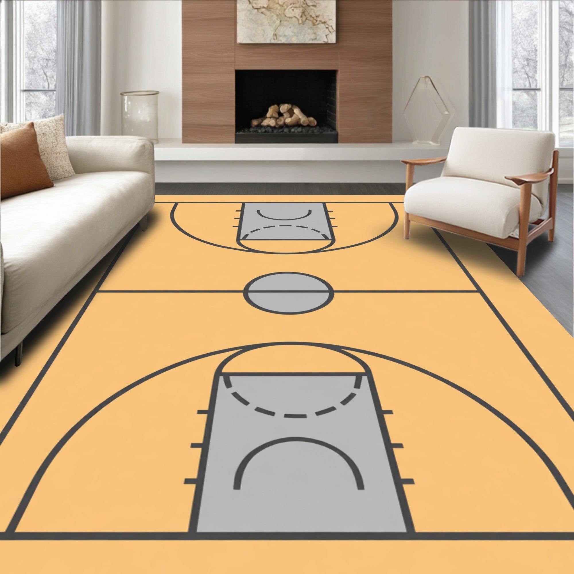 Ultra Soft Area Rug, Non Slip, Stain Resistant, Washable Area Rugs for Living Room, Bedroom, Basketball Court Beige Floor Gray Key Dark Gray Lines(beige) Overview: