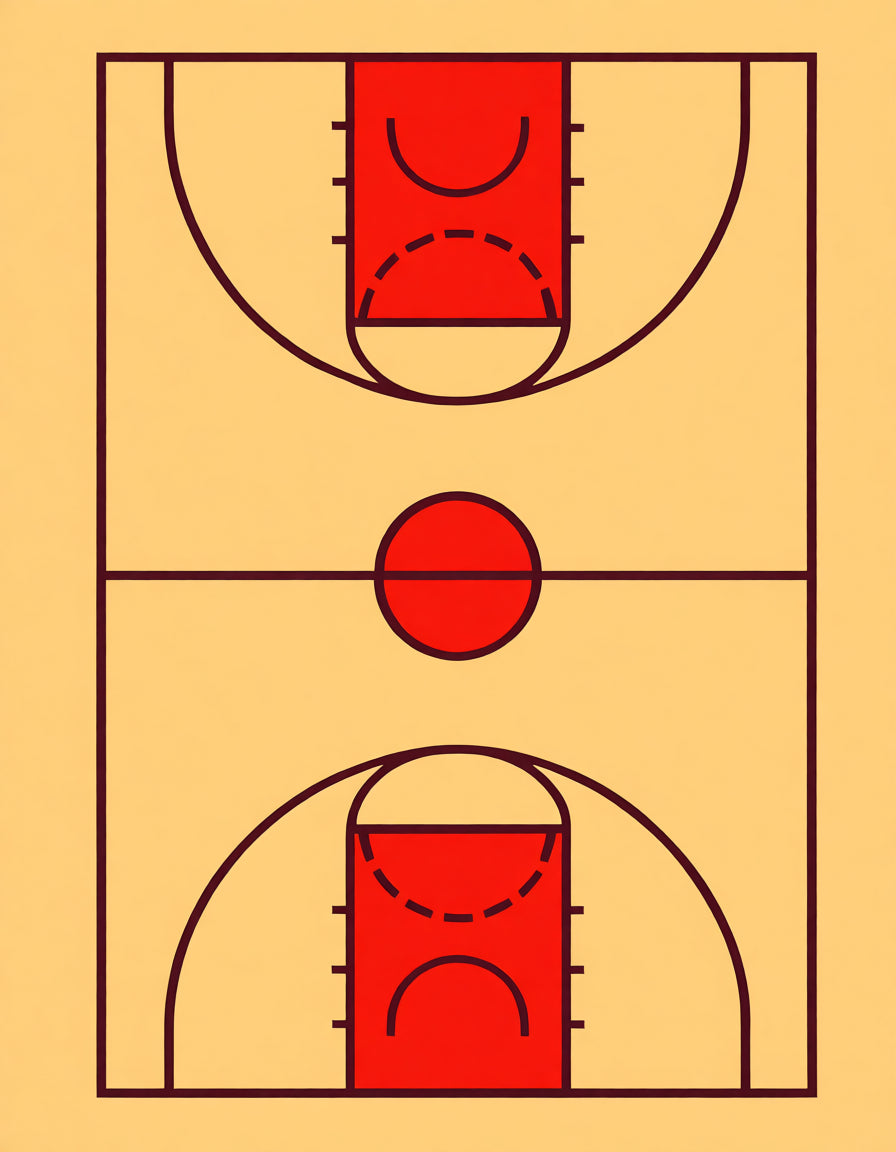Basketball Court Beige Floor Red Key Brown Lines(Beige)