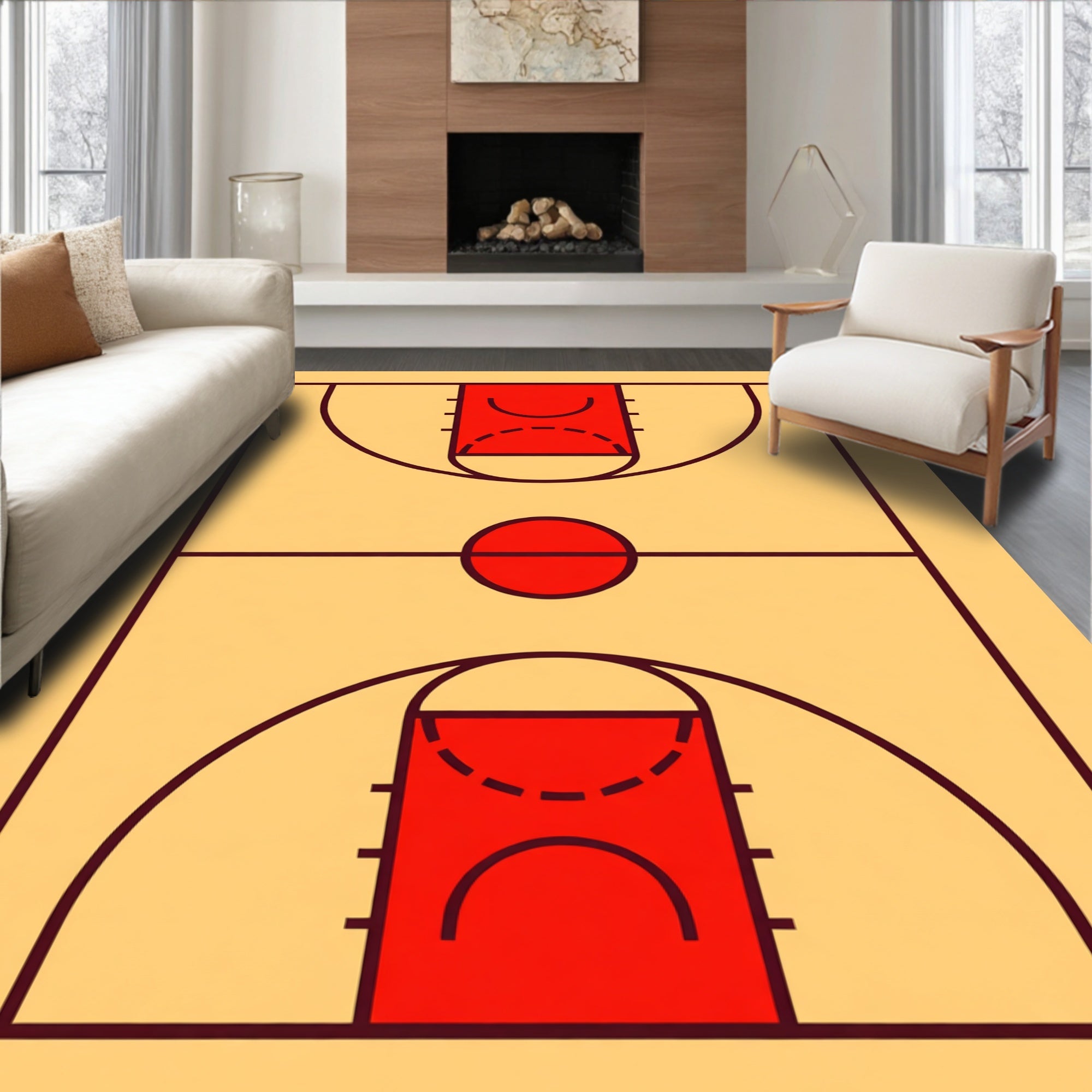 Ultra Soft Area Rug, Non Slip, Stain Resistant, Washable Area Rugs for Living Room, Bedroom, Basketball Court Beige Floor Red Key Brown Lines(beige) Overview: