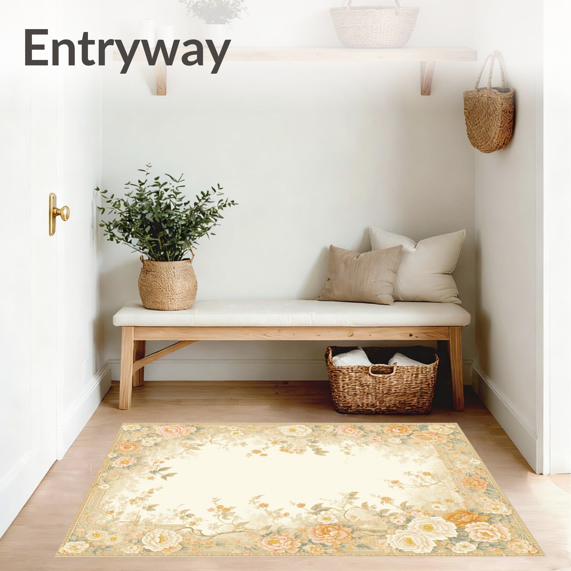 Flatwoven High Traffic Area Rug, Beautiful Lightweight Entry with Subtle Beige Floral, Non Slip, Stain Resistant, Washable Area Rugs for Living Room, Bedroom (Beige) Overview:
