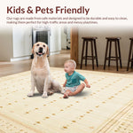 - Soft and Fluffy Comfort: This low pile rug is made from a faux cashmere texture, offering a smooth, soft touch that elevates any room. Ideal for areas where comfort matters without compromising on easy maintenance.