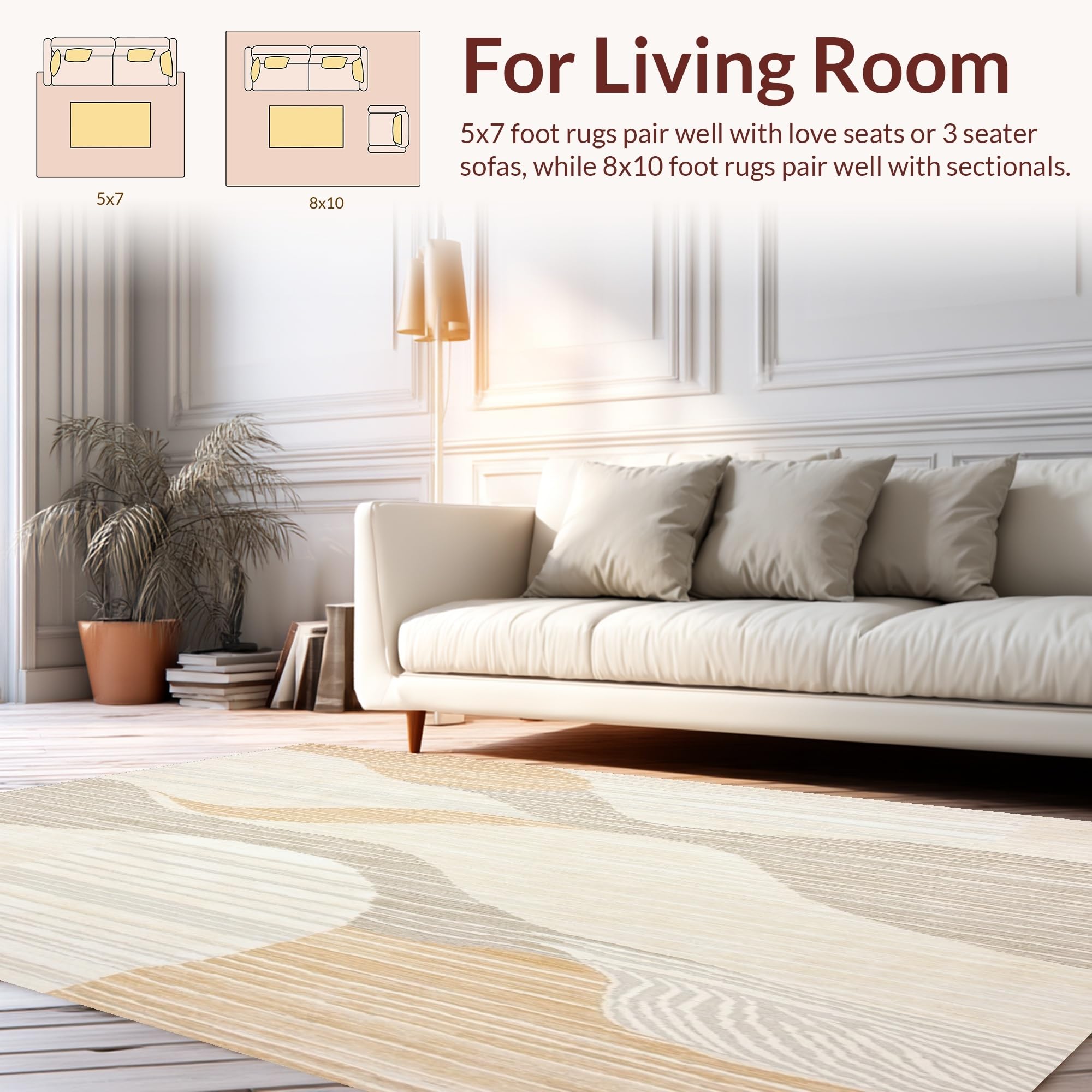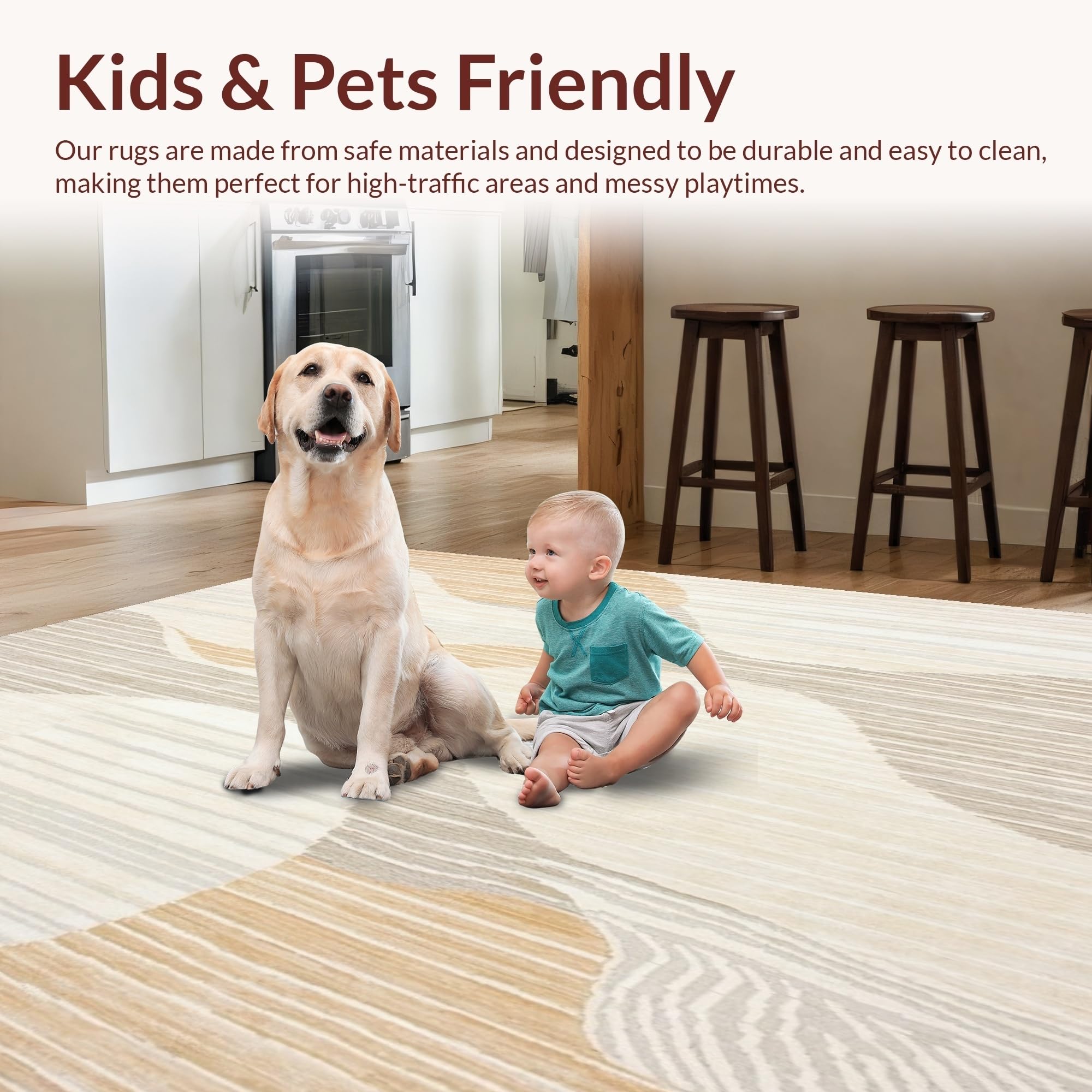 Ultra Soft Area Rug, Non Slip, Stain Resistant, Washable Area Rugs for Living Room, Bedroom, Beige Abstract Area(Beige) Overview: