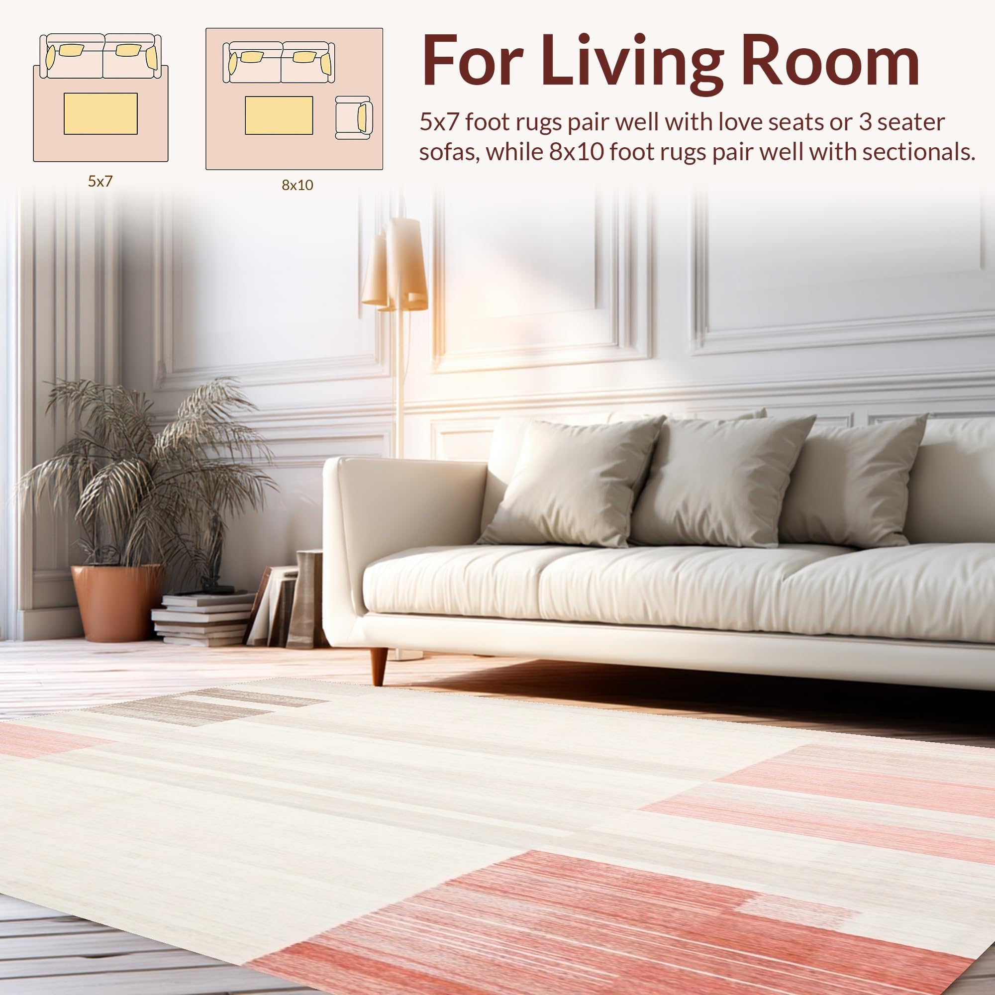 Ultra Soft Area Rug, Non Slip, Stain Resistant, Washable Area Rugs for Living Room, Bedroom, Beige Accent Area Pink Echoes Contemporary Style(Beige) Overview: