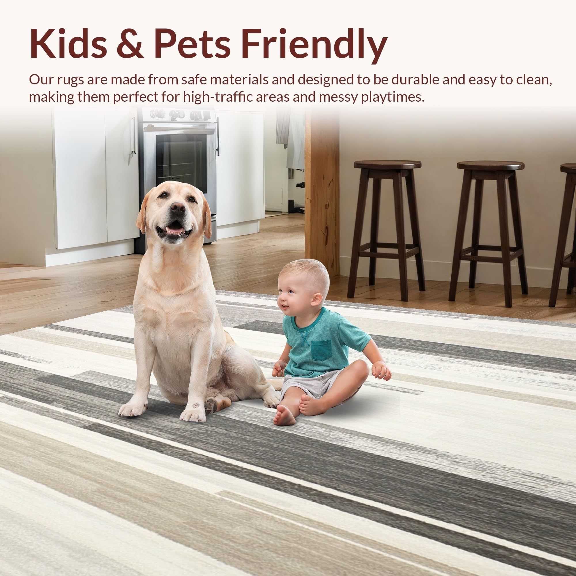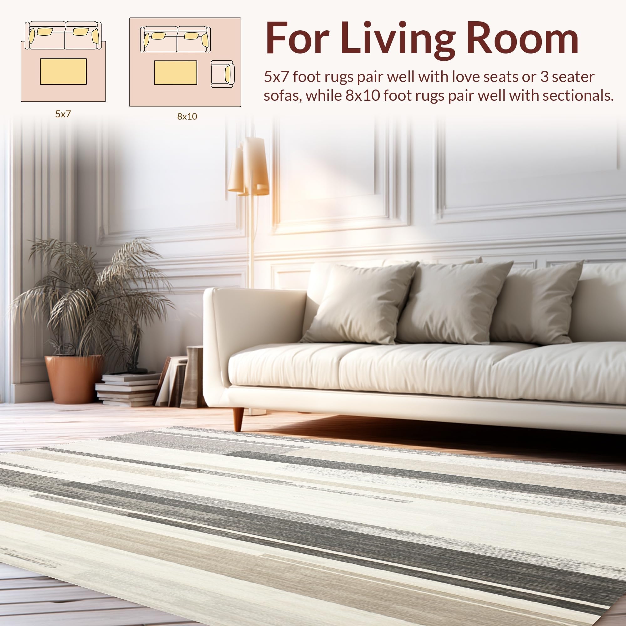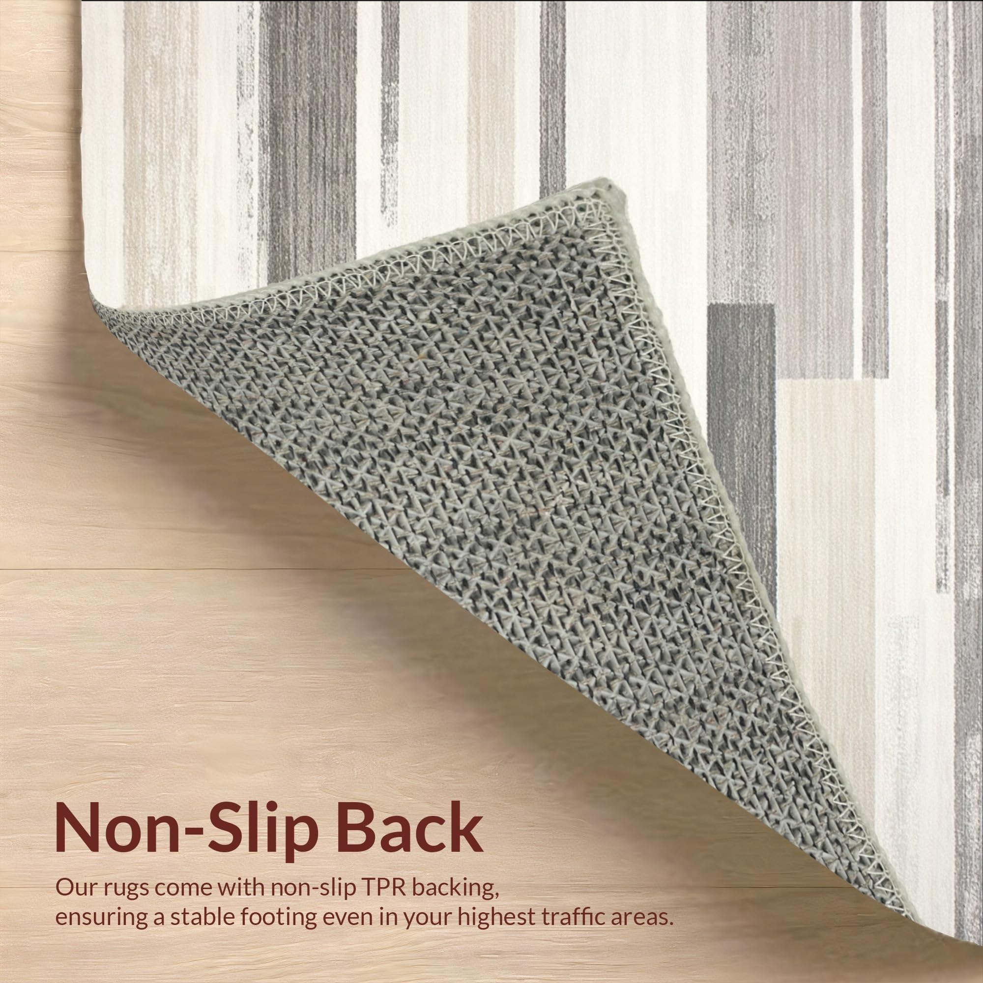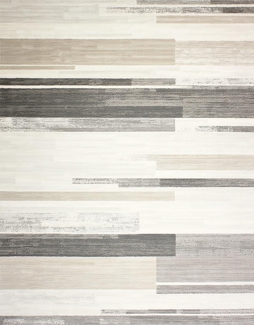 Ultra Soft Area Rug, Non Slip, Stain Resistant, Washable Area Rugs for Living Room, Bedroom, Beige and Slate Abstract Linear Runner With Subtle Distressed Stripes(Beige) Overview: