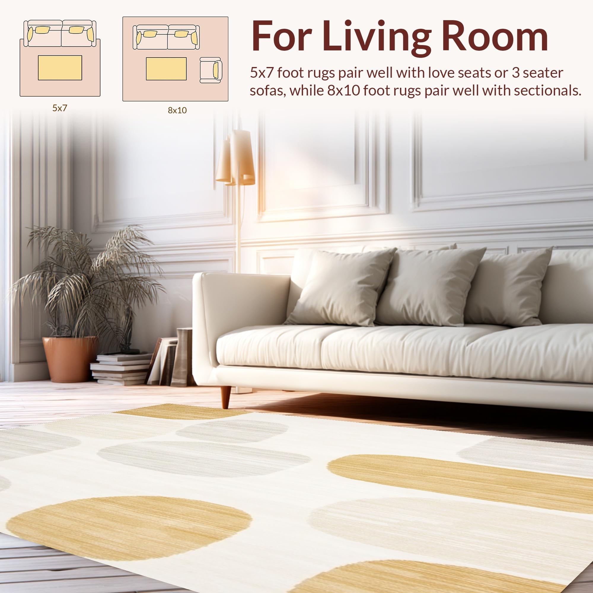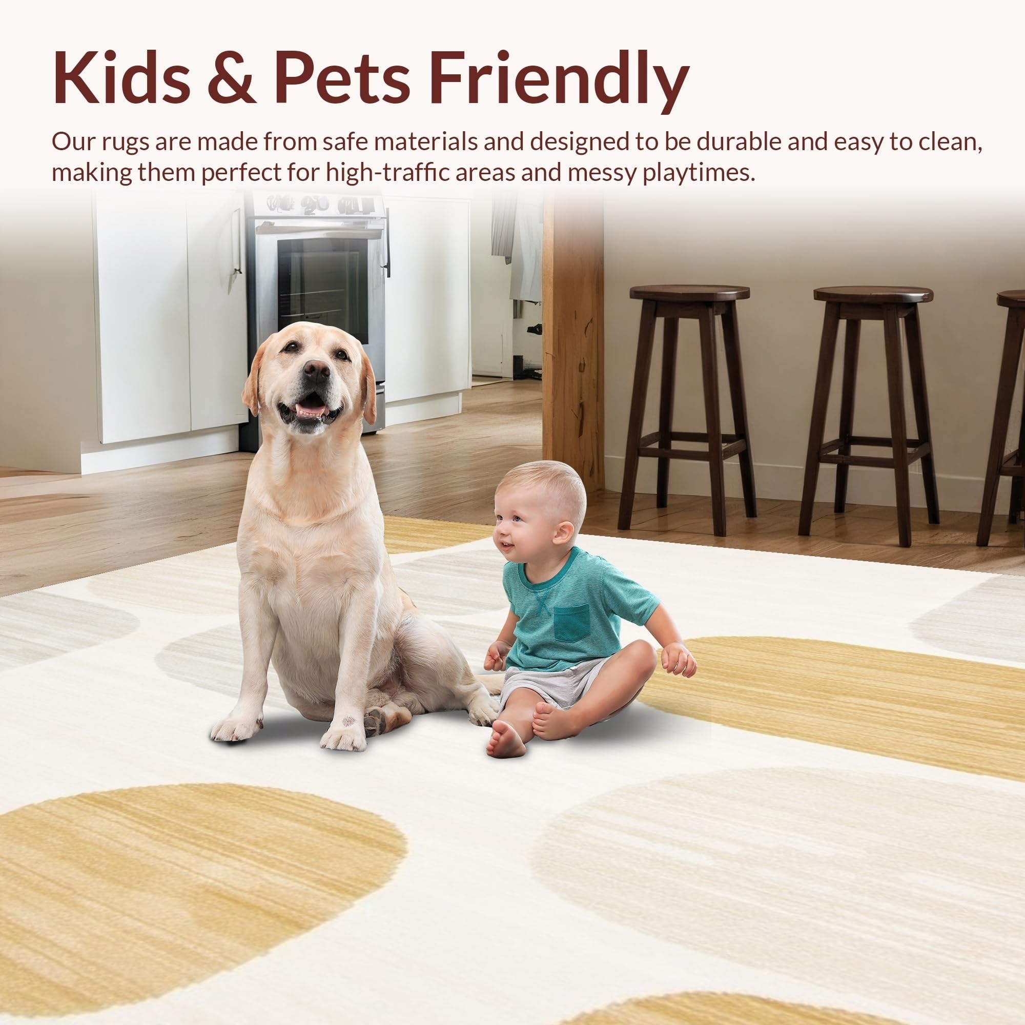 Ultra Soft Area Rug, Non Slip, Stain Resistant, Washable Area Rugs for Living Room, Bedroom, Beige and White Geometric Spotted(Beige) Overview: