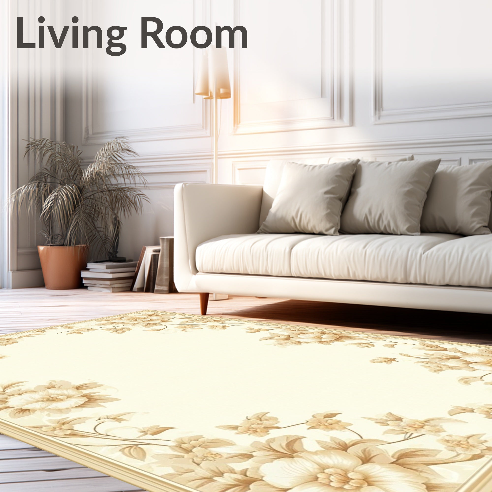 Flatwoven High Traffic Area Rug, Beige Floral Design Throw, Non Slip, Stain Resistant, Washable Area Rugs for Living Room, Bedroom (Beige) Overview: