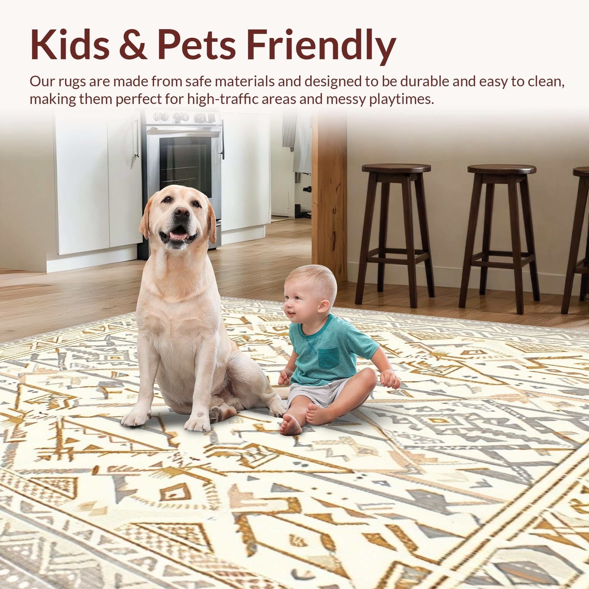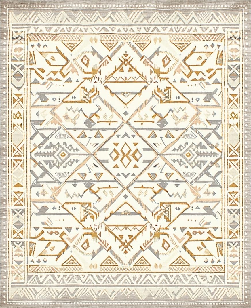 Ultra Soft Area Rug, Non Slip, Stain Resistant, Washable Area Rugs for Living Room, Bedroom, Beige Area Geo Cream Accents Farmhouse Vibes Tribal Art(Beige) Overview: