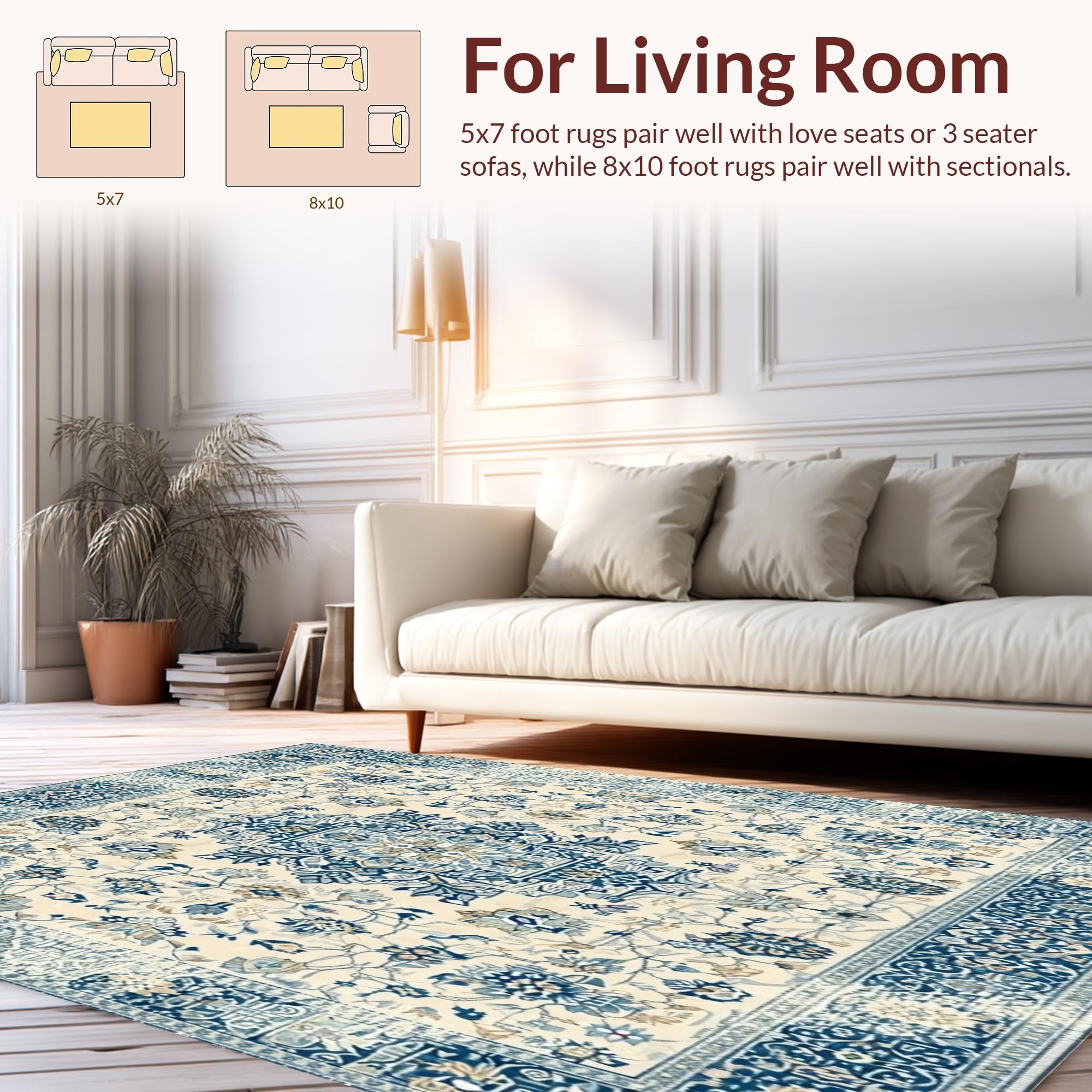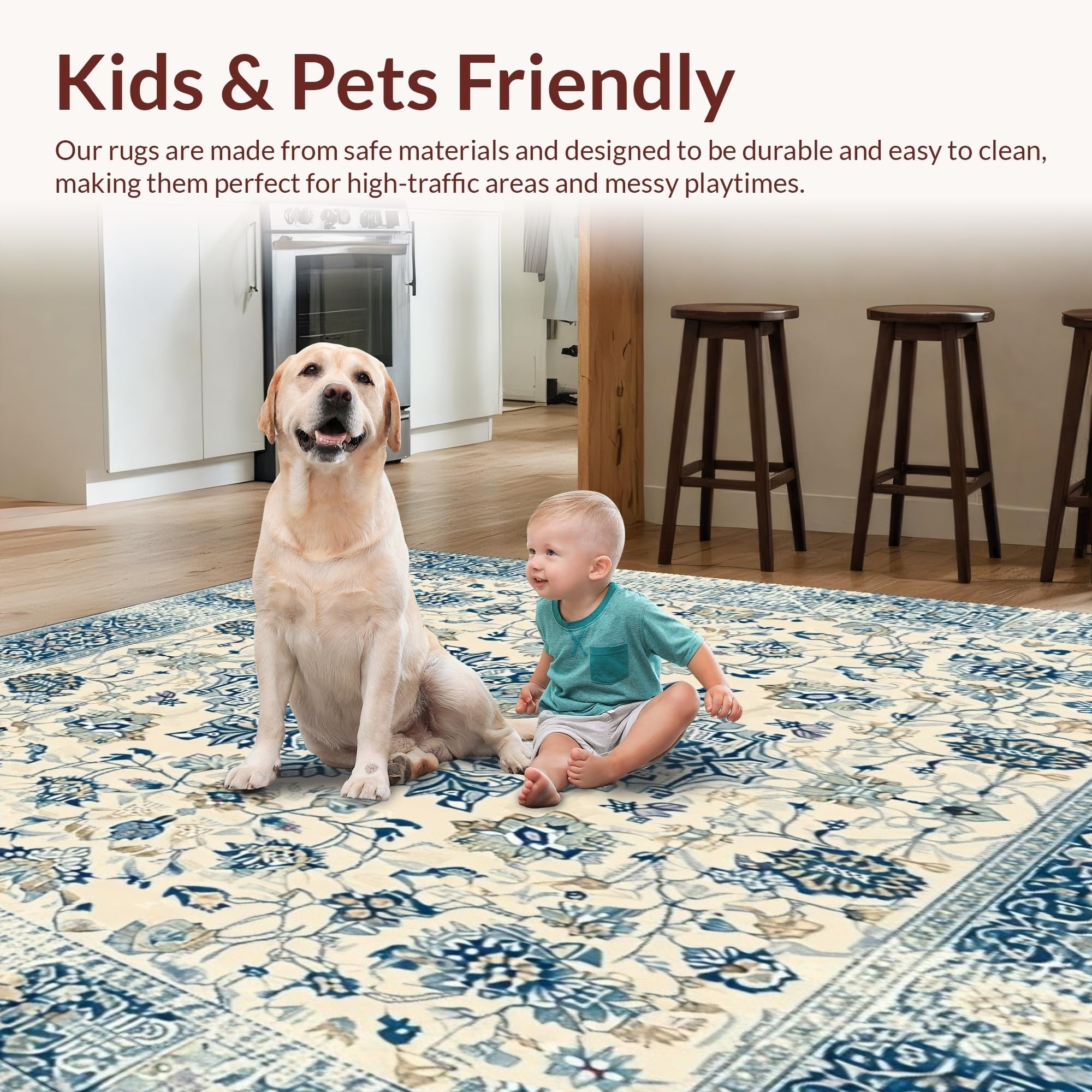 Ultra Soft Area Rug, Non Slip, Stain Resistant, Washable Area Rugs for Living Room, Bedroom, Beige Blue Area Vintage Farmhouse(Beige) Overview: