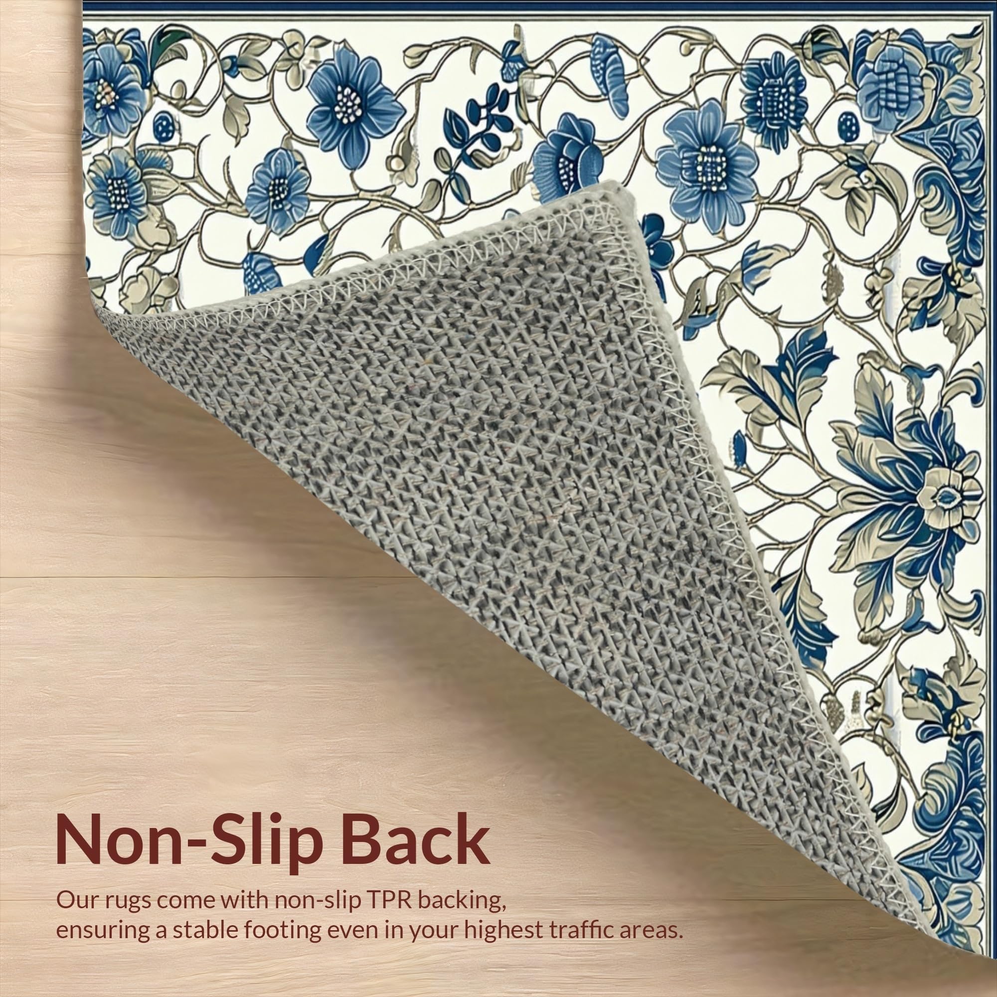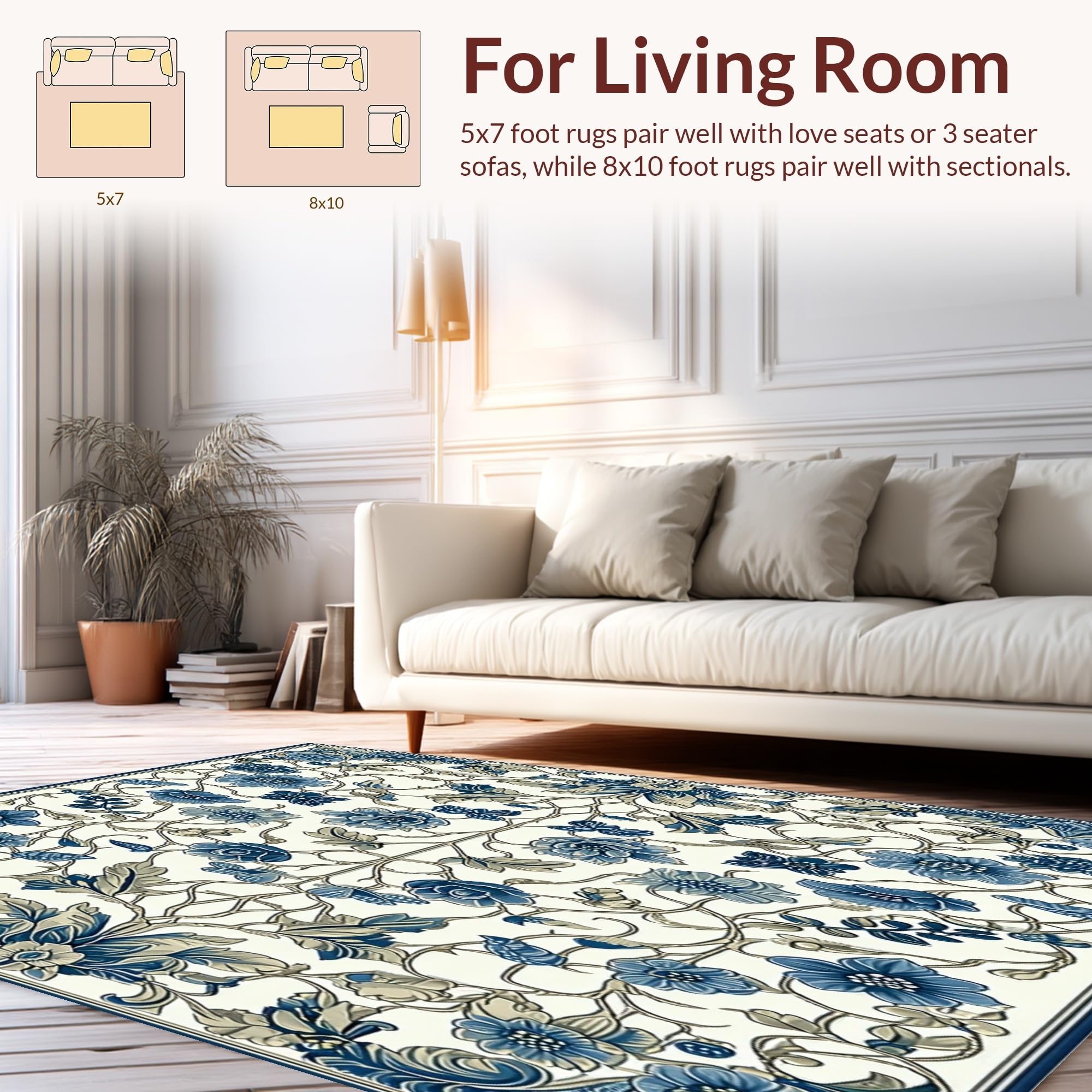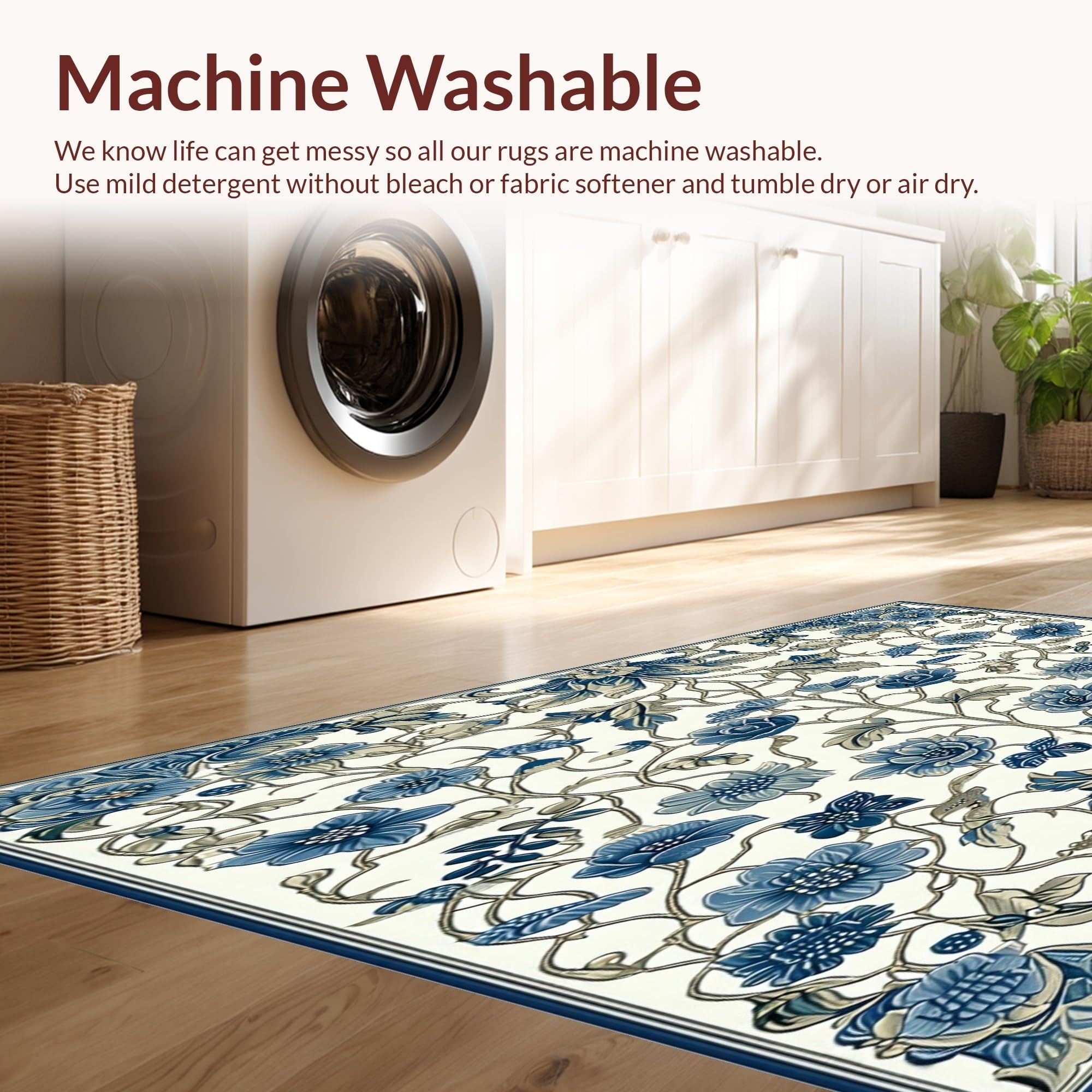 Ultra Soft Area Rug, Non Slip, Stain Resistant, Washable Area Rugs for Living Room, Bedroom, Beige & Blue Eden Crafted Botanical Area(White) Overview: