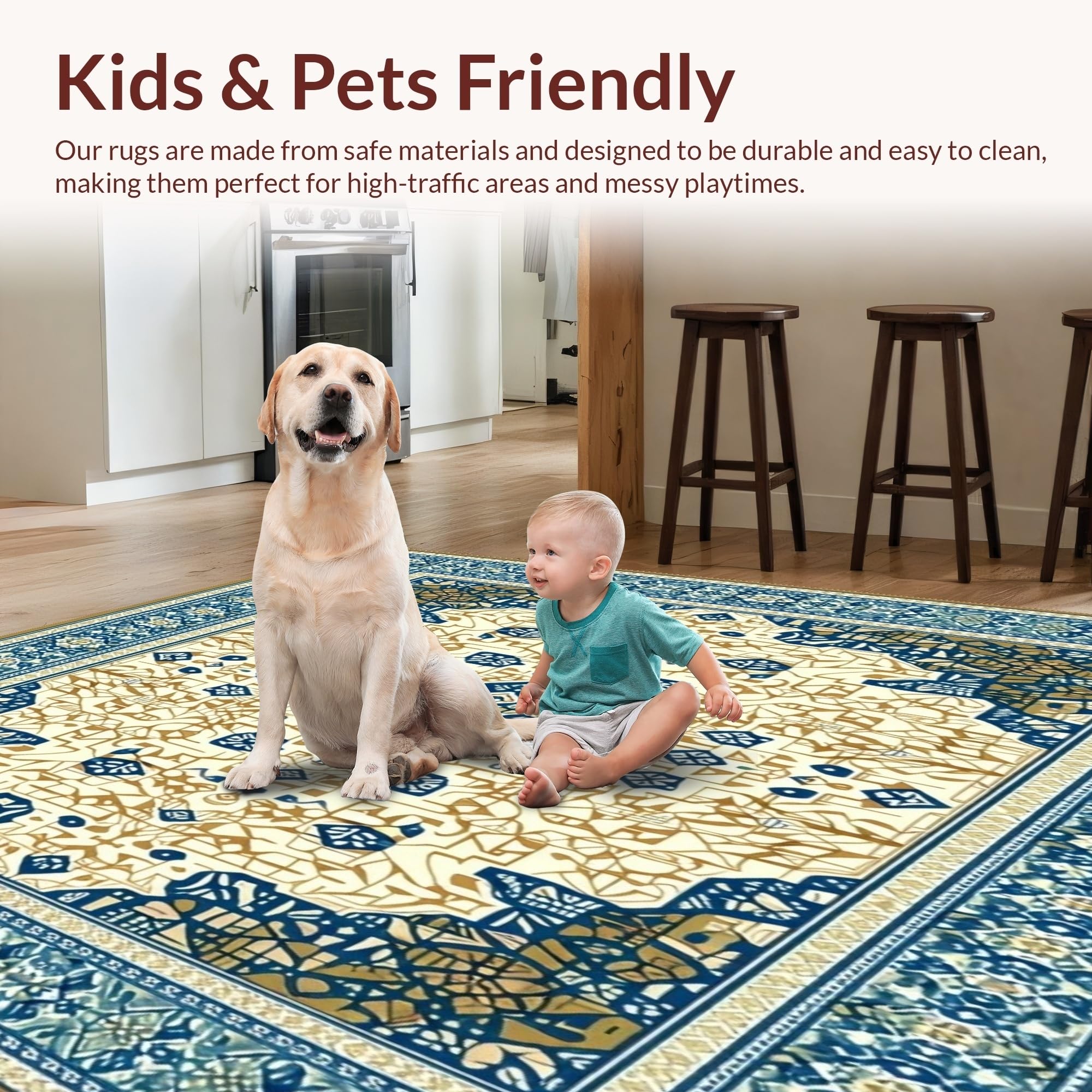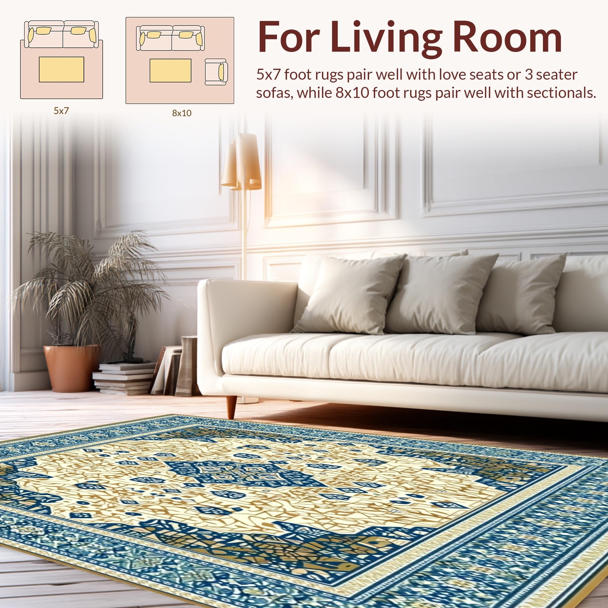 Ultra Soft Area Rug, Non Slip, Stain Resistant, Washable Area Rugs for Living Room, Bedroom, Beige Blue Kitchen Area(Beige) Overview: