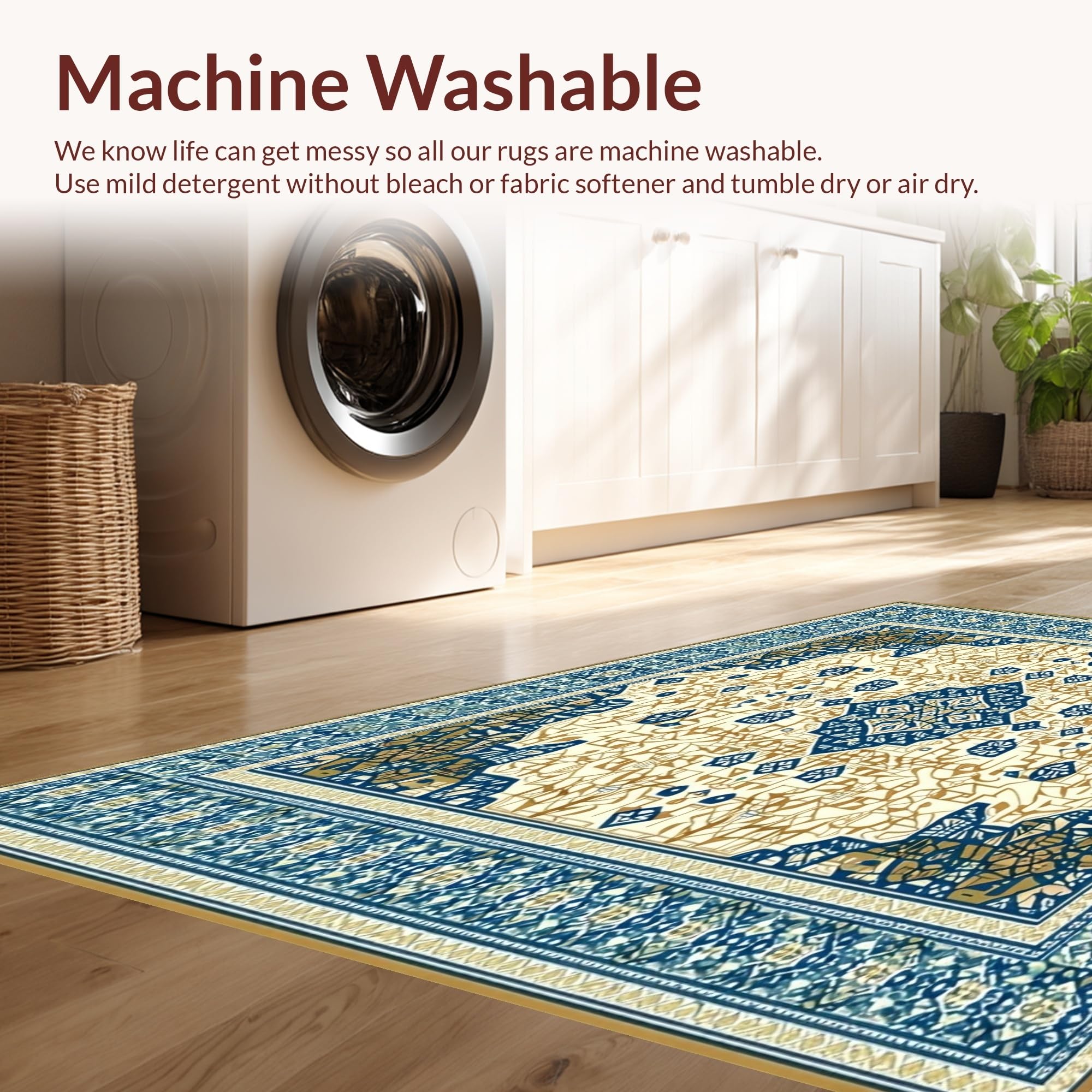- Machine Washable: Our rugs can be easily thrown in the wash machine.