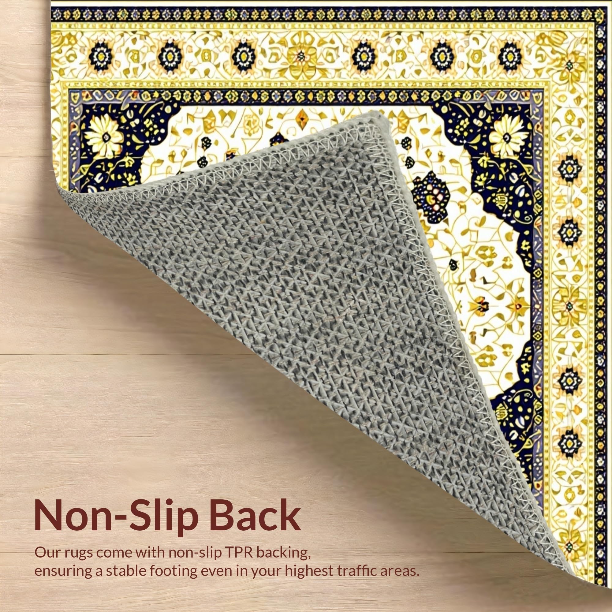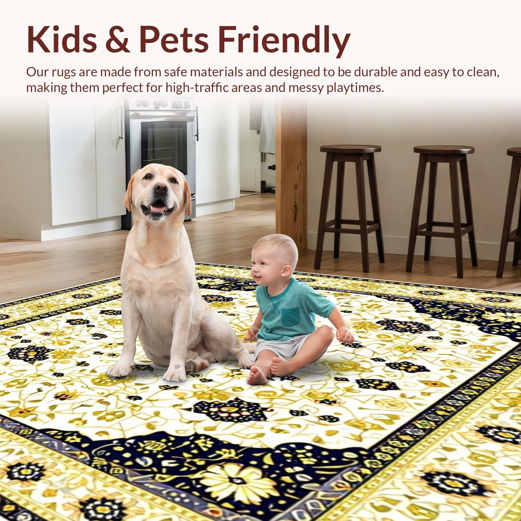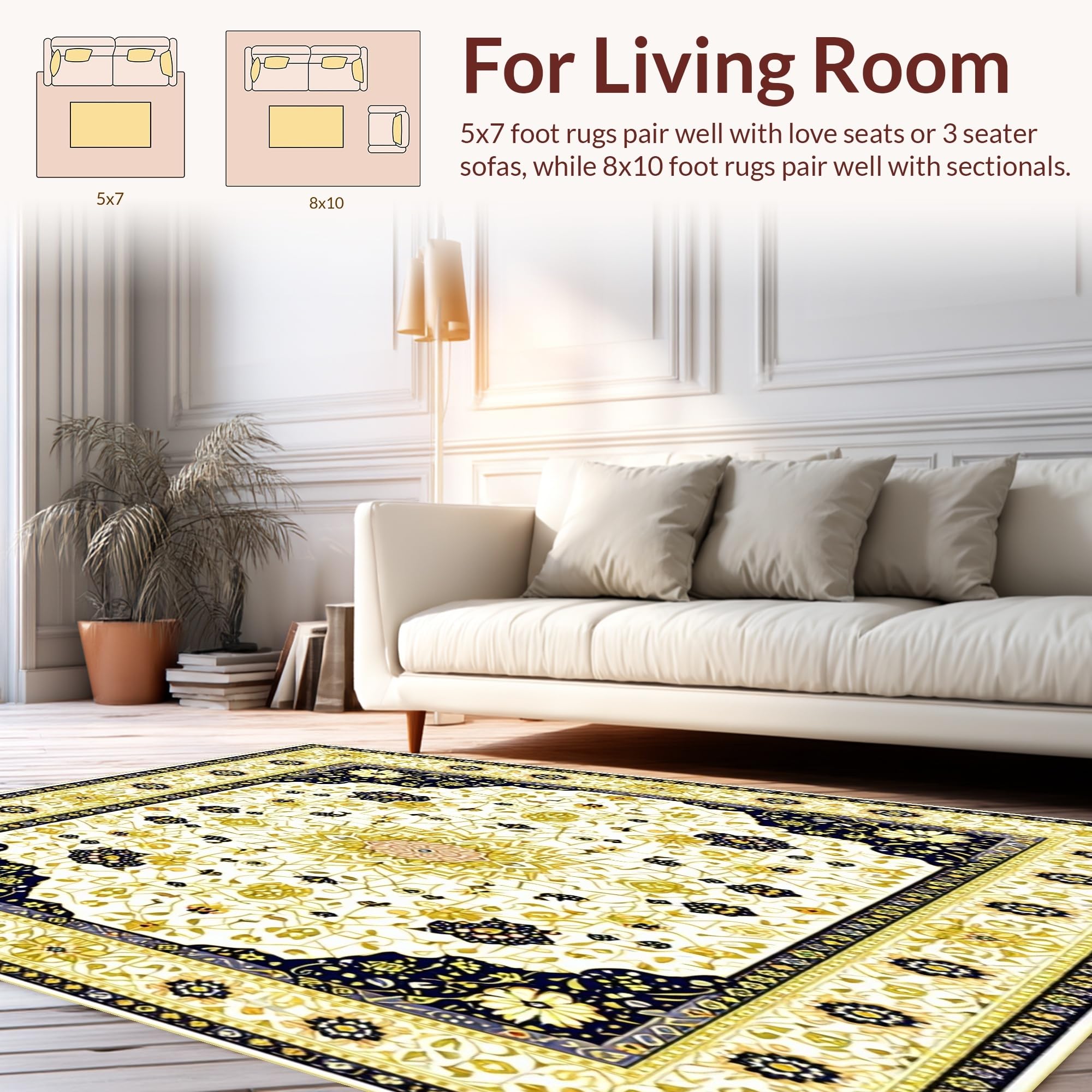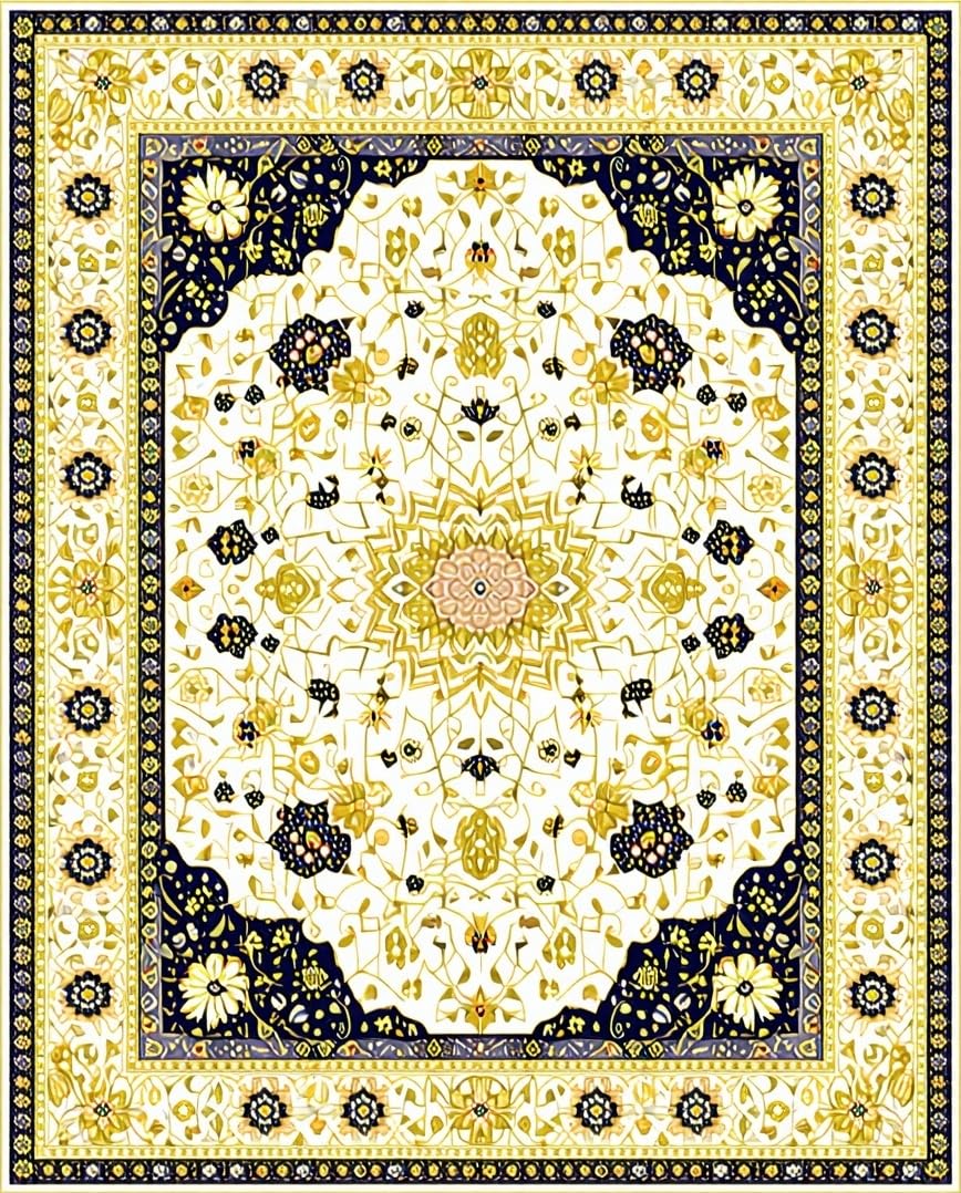 Ultra Soft Area Rug, Non Slip, Stain Resistant, Washable Area Rugs for Living Room, Bedroom, Beige Boho Area with Intricate(Gold) Overview: