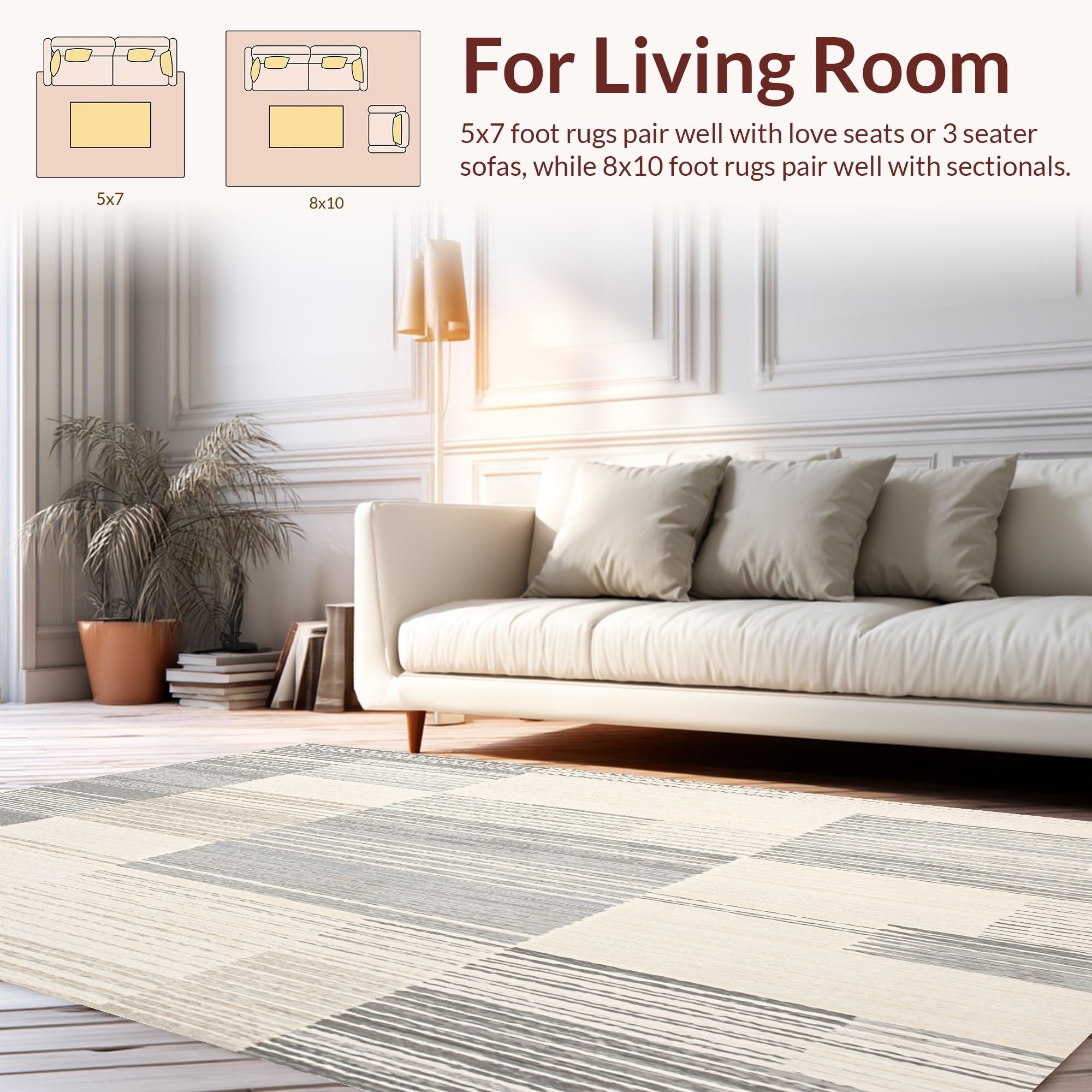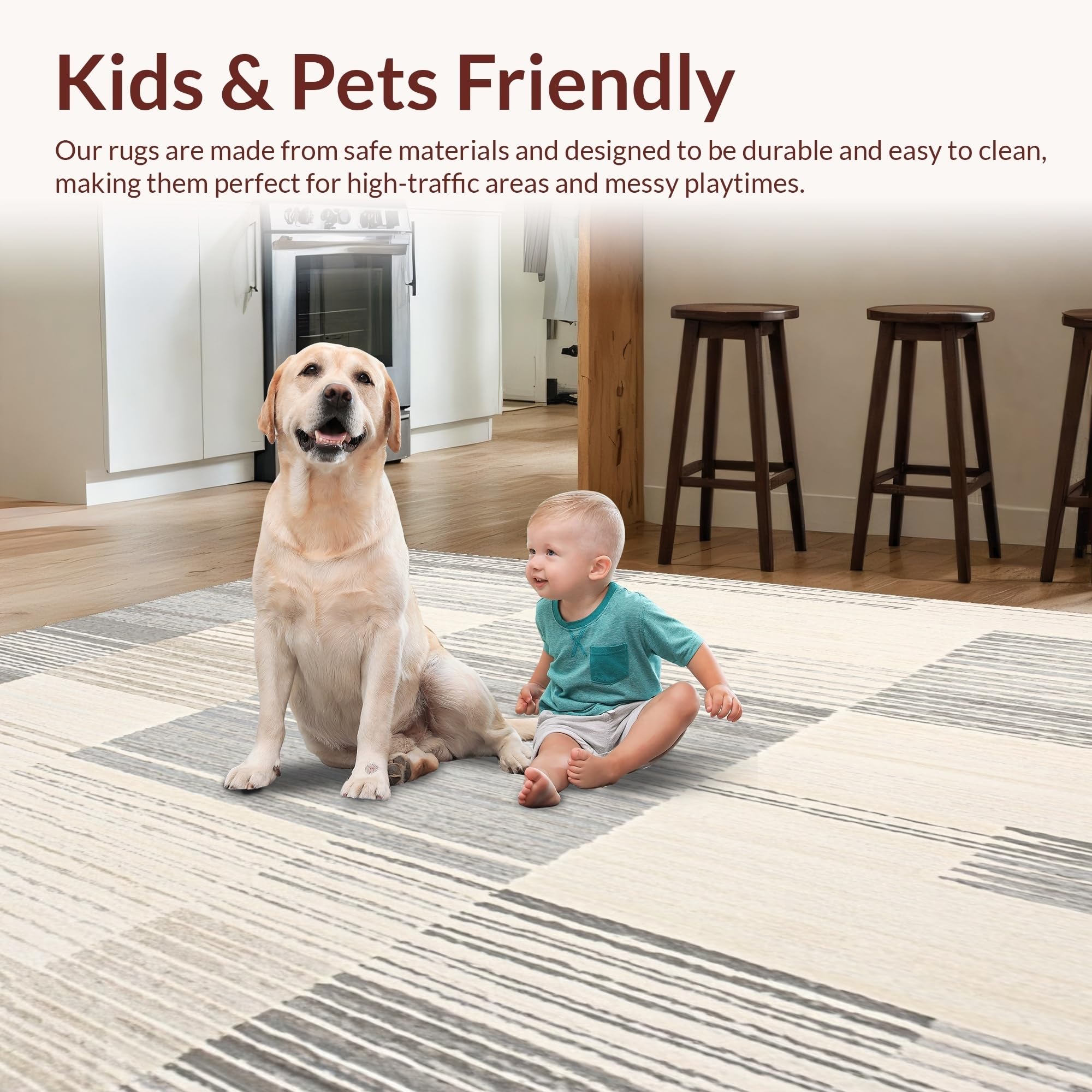 Ultra Soft Area Rug, Non Slip, Stain Resistant, Washable Area Rugs for Living Room, Bedroom, Beige Boho Geometric Runner Modern Abstract Design(Beige) Overview:
