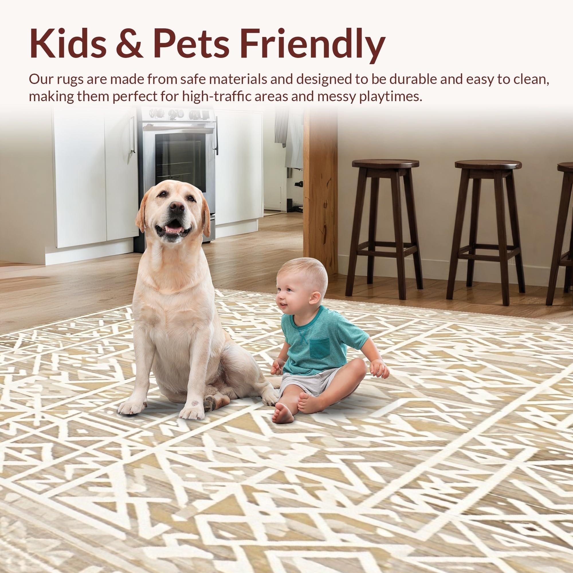 Ultra Soft Area Rug, Non Slip, Stain Resistant, Washable Area Rugs for Living Room, Bedroom, Beige Boho Inspired Area With Artisanal Woven Geometric Design(Beige) Overview: