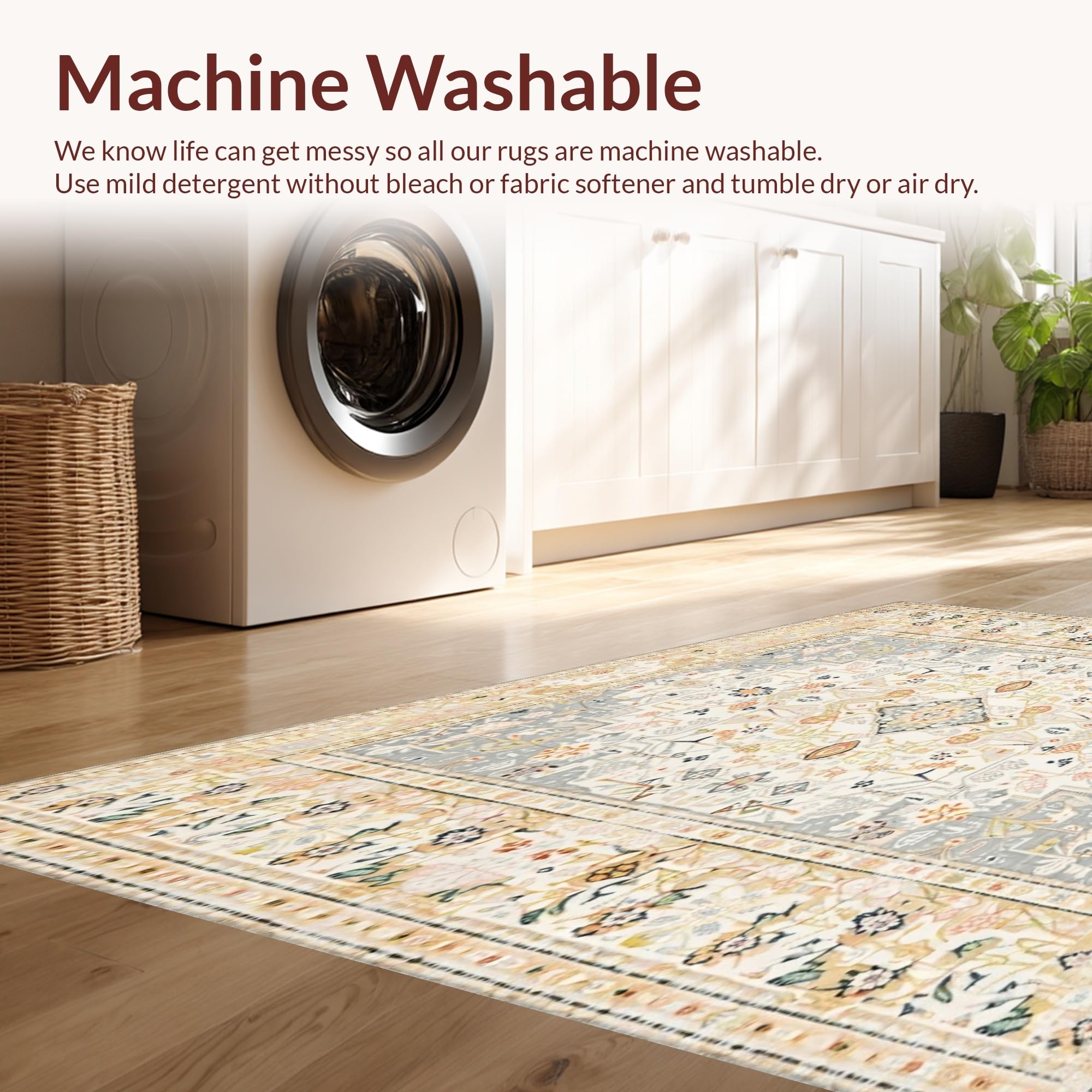 - Machine Washable: Our rugs can be easily thrown in the wash machine.